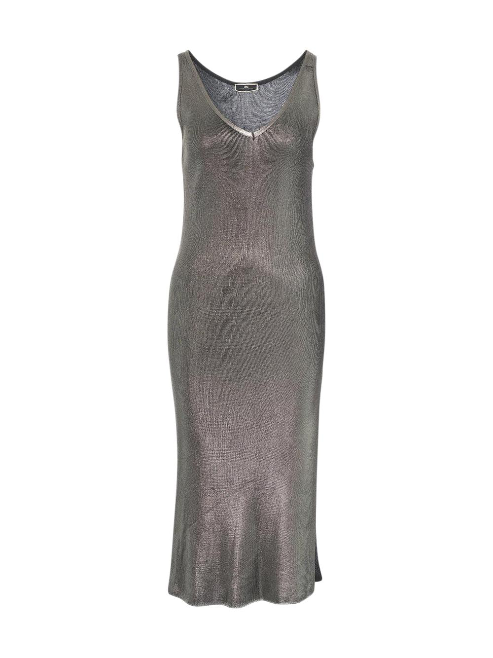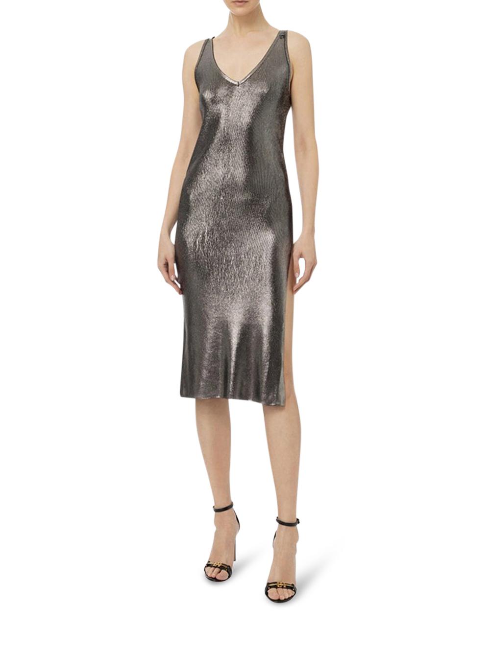 - Abito midi in viscosa laminata con scollo a V e spacco laterale.