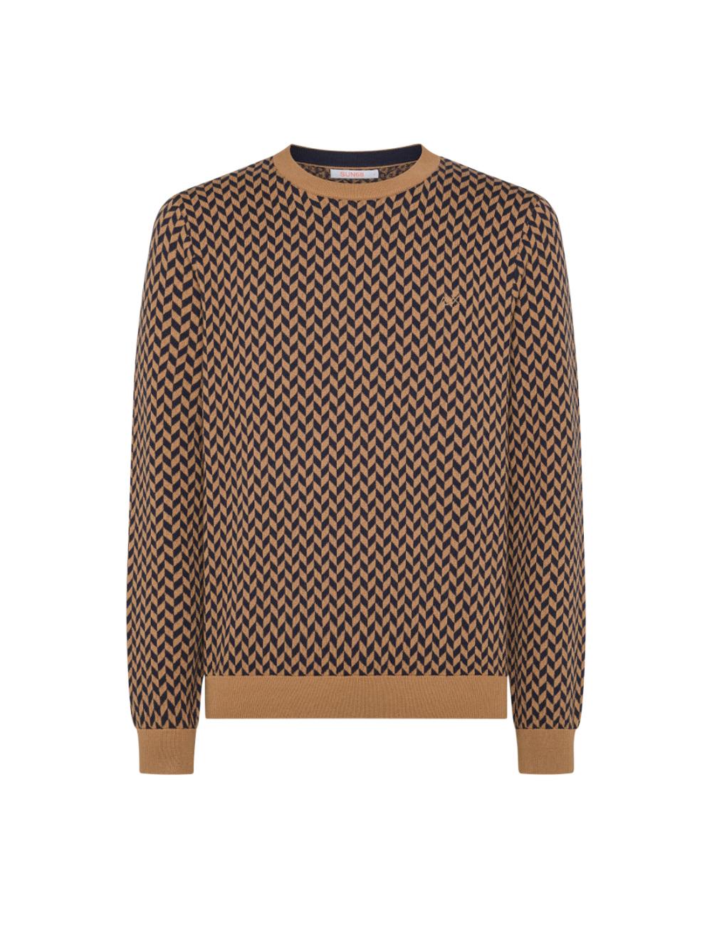 Maglia uomo girocollo stampa zig zag blu/cammello