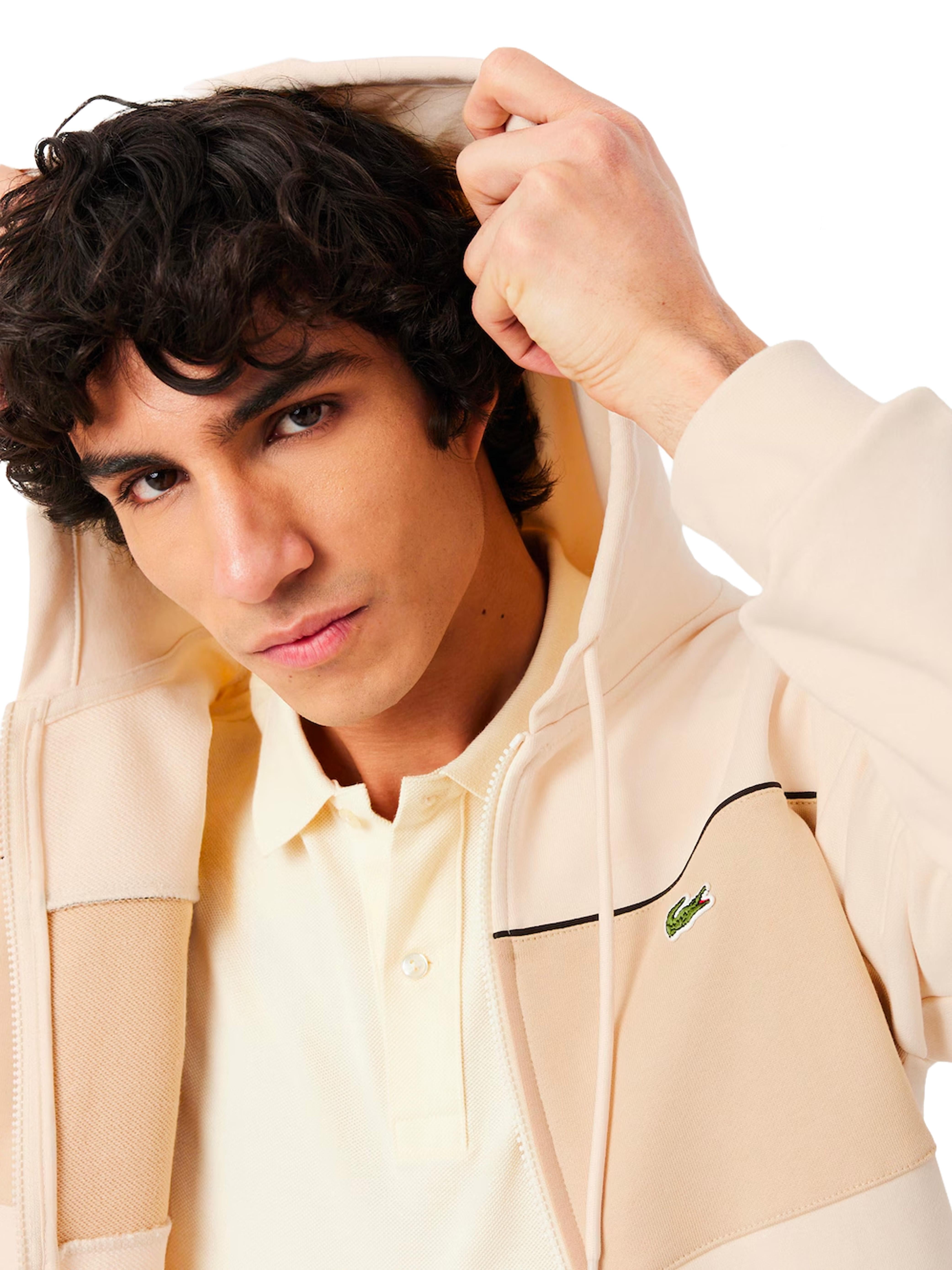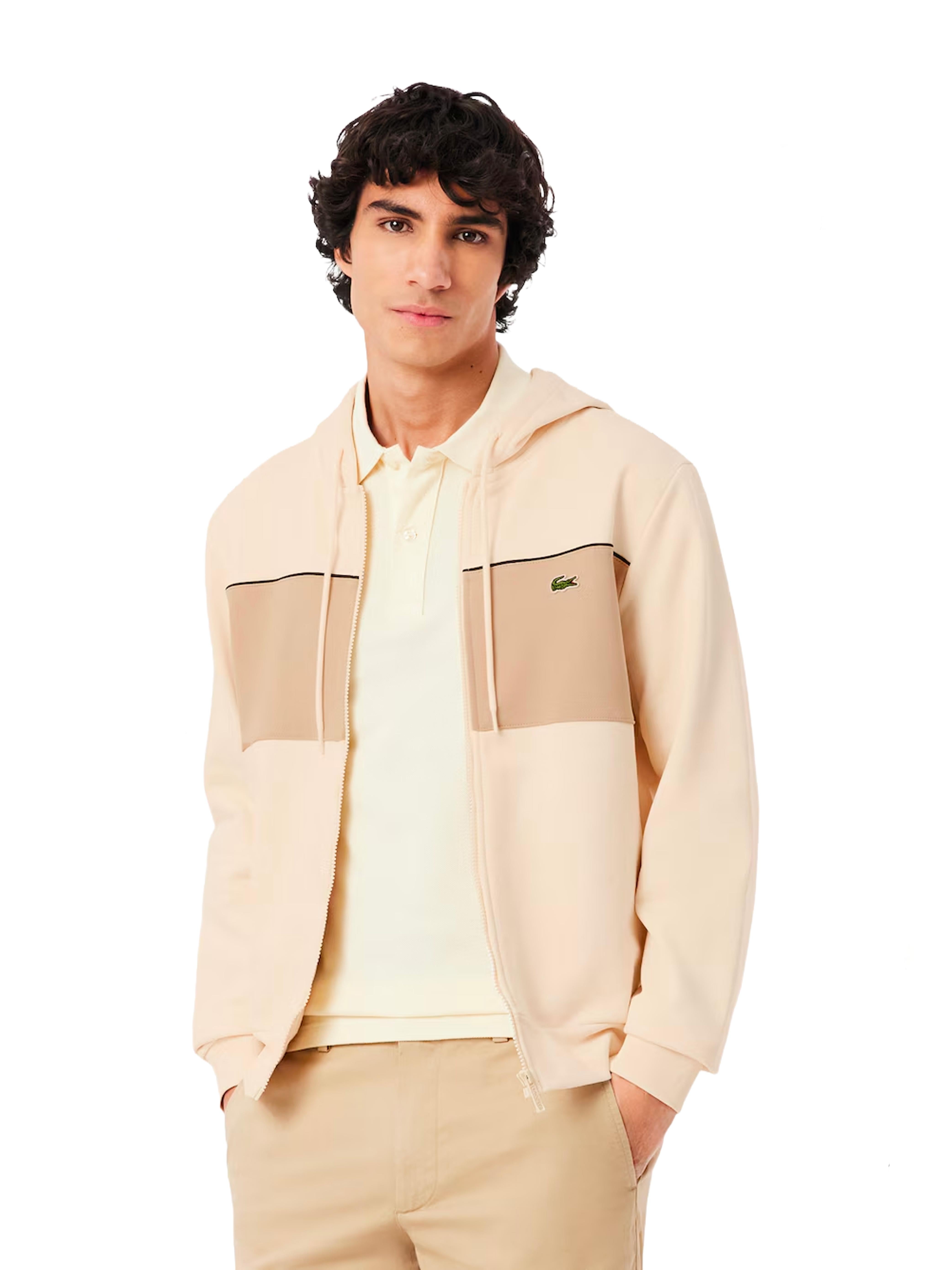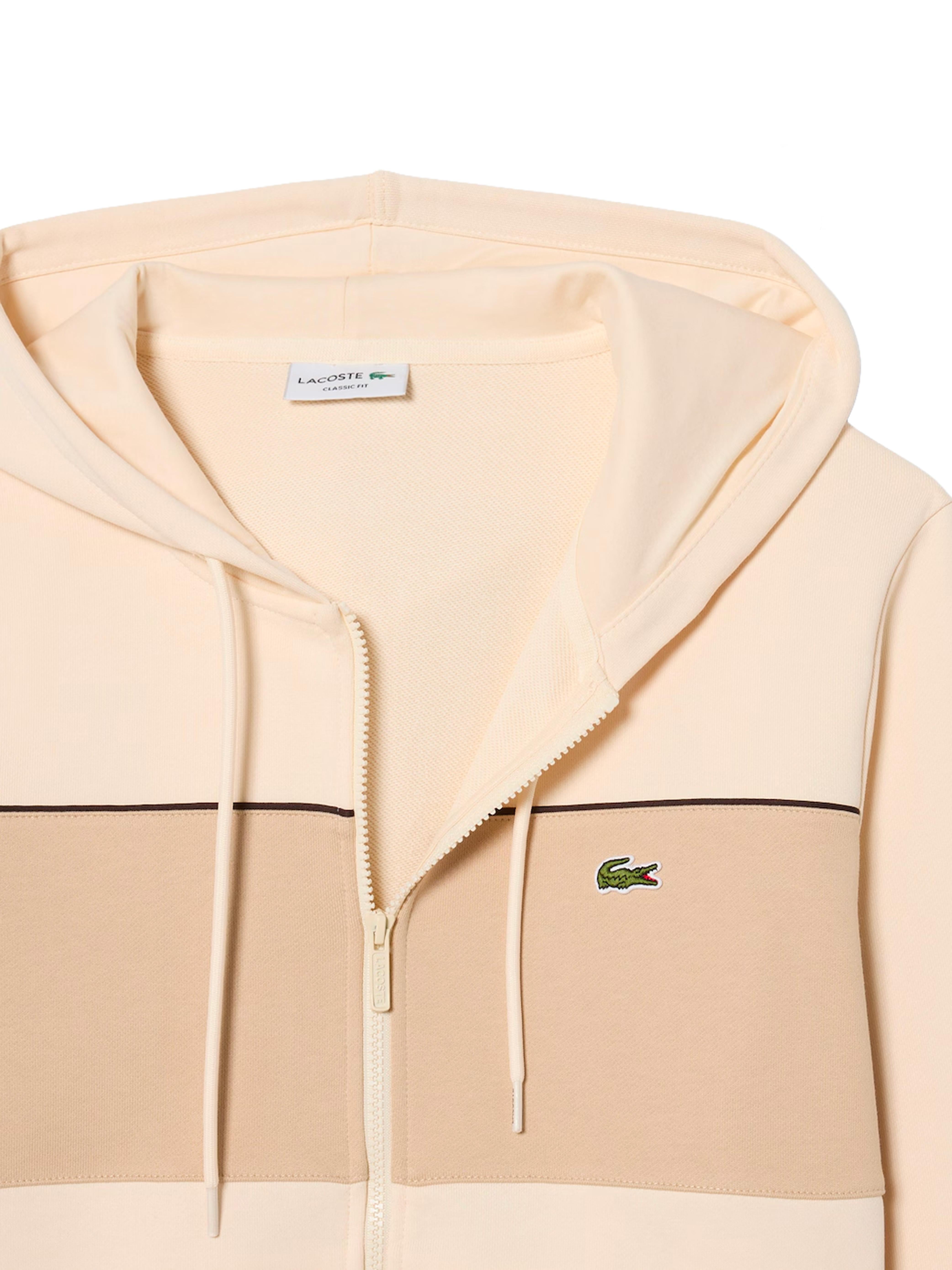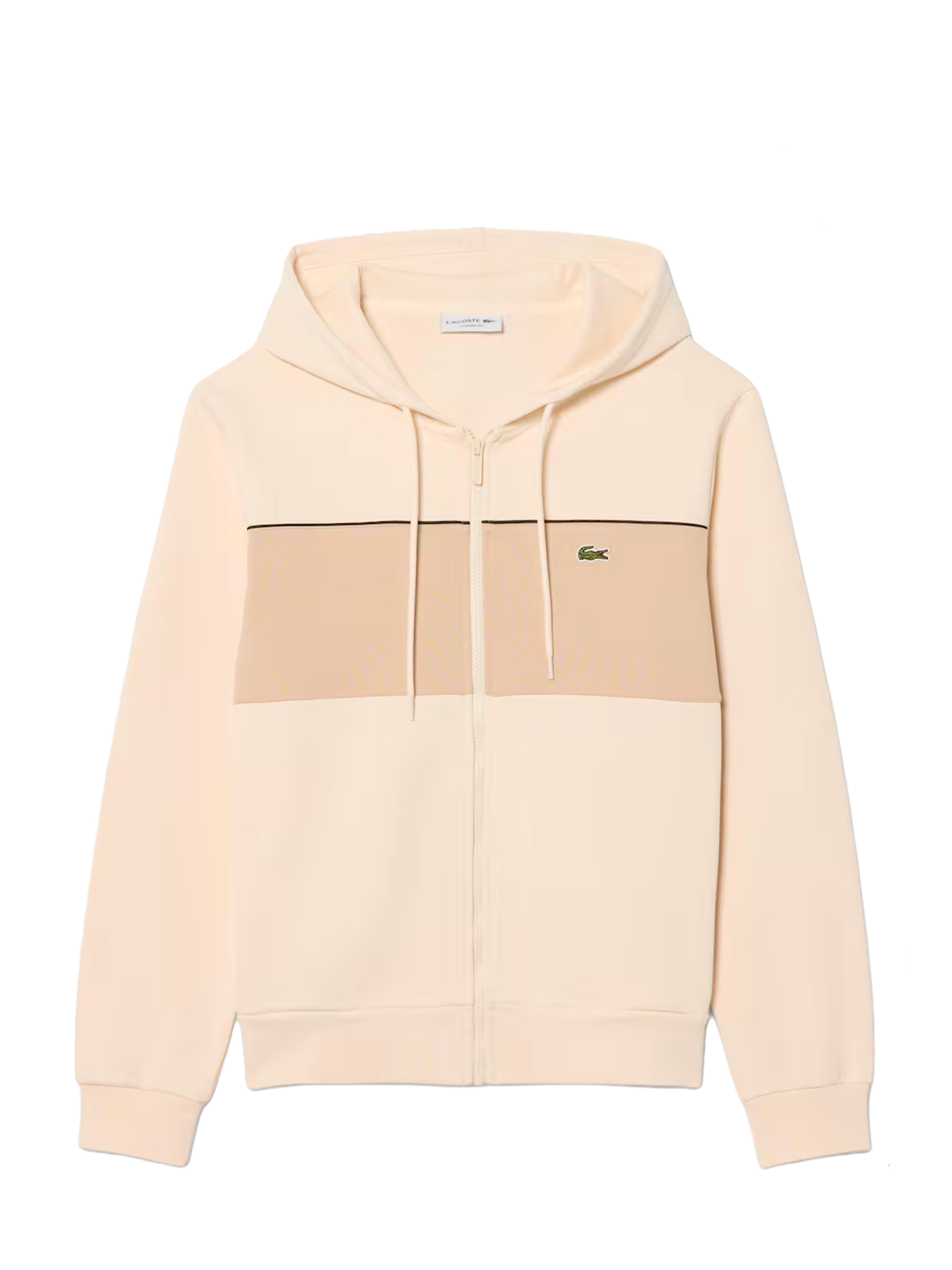 Felpa color block con cappuccio e zip panna