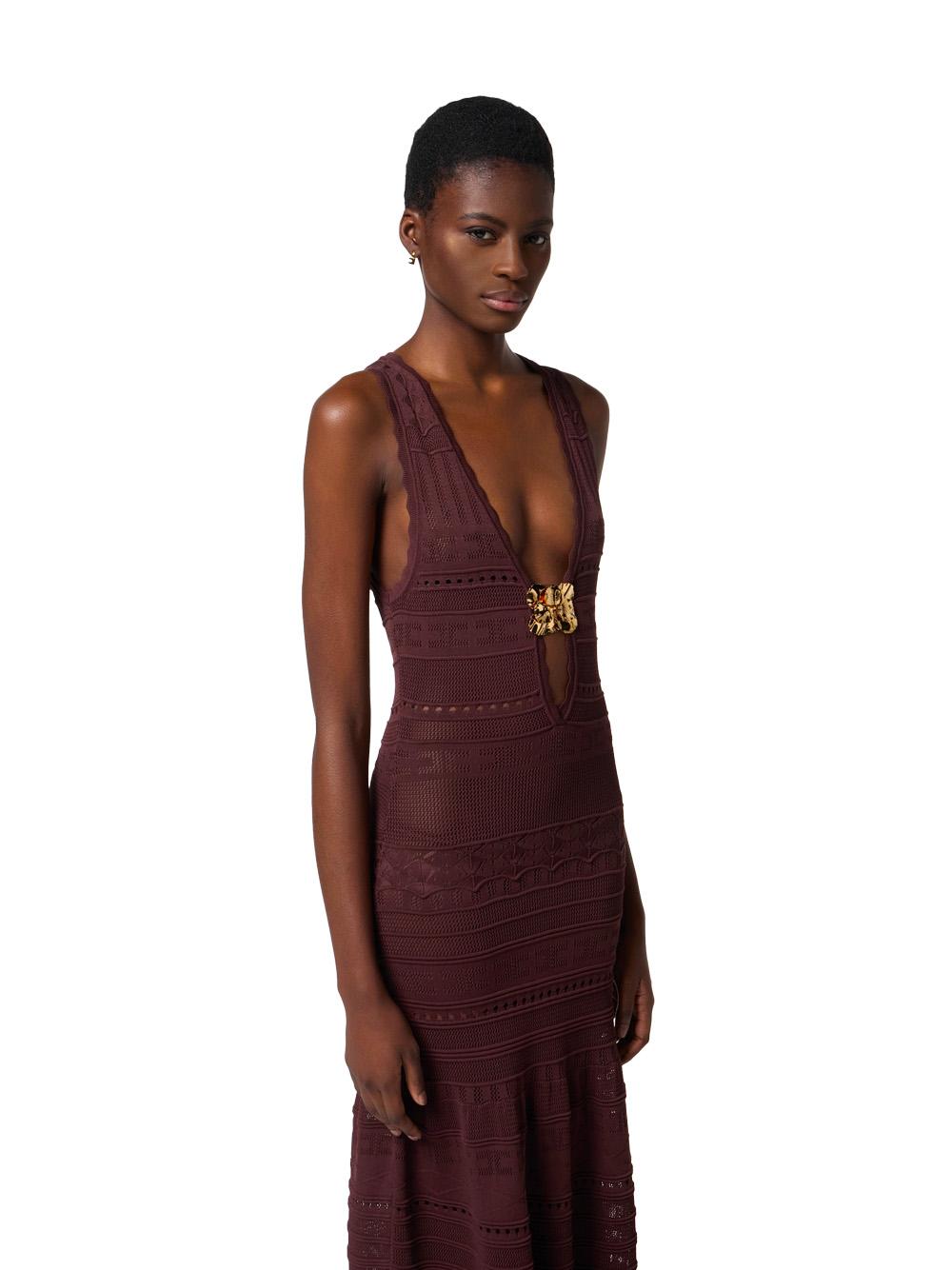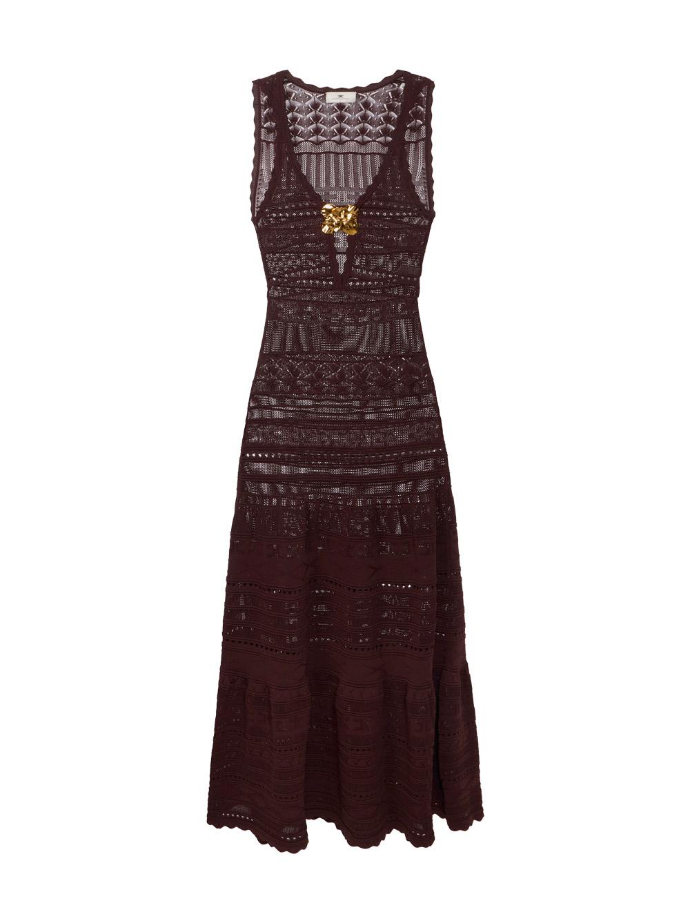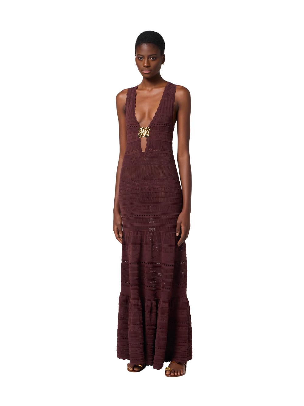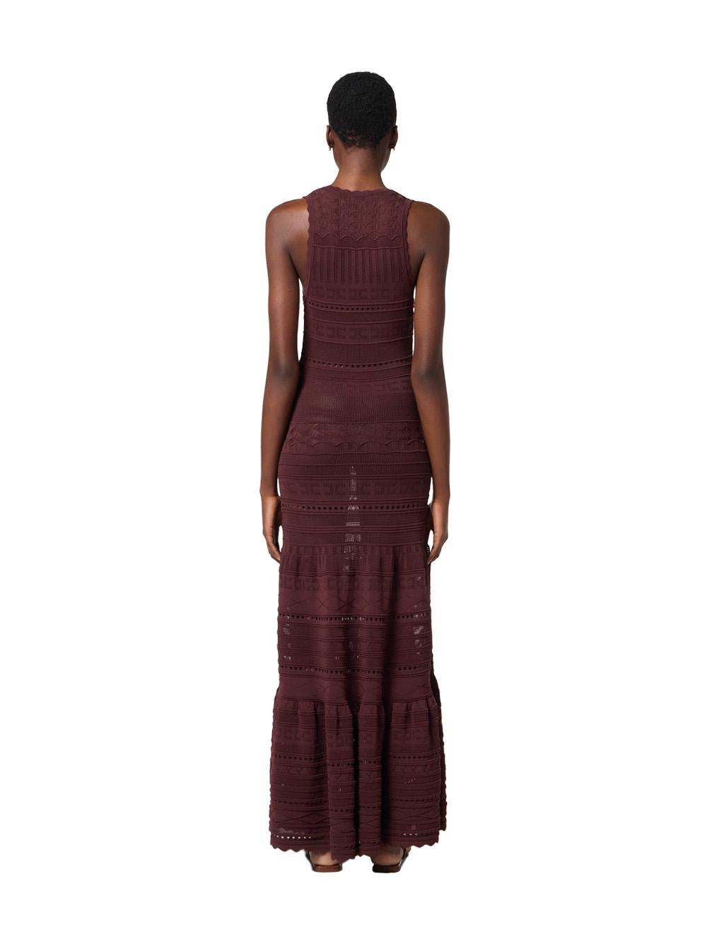 - Abito in viscosa. Il vestito è smanicato con scollo a V e ha gonna con balza al fondo.