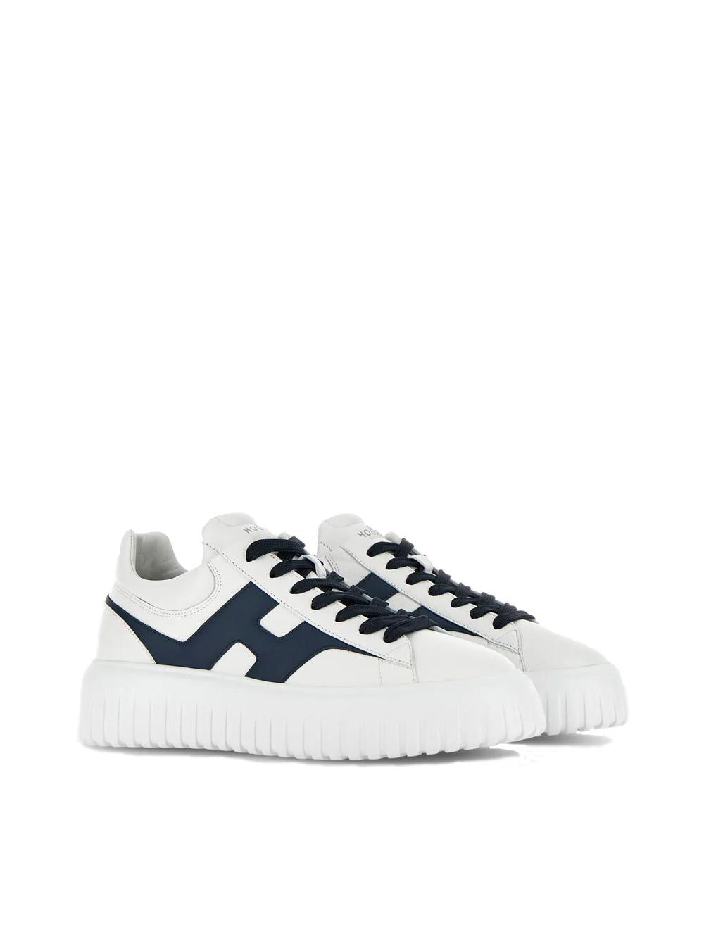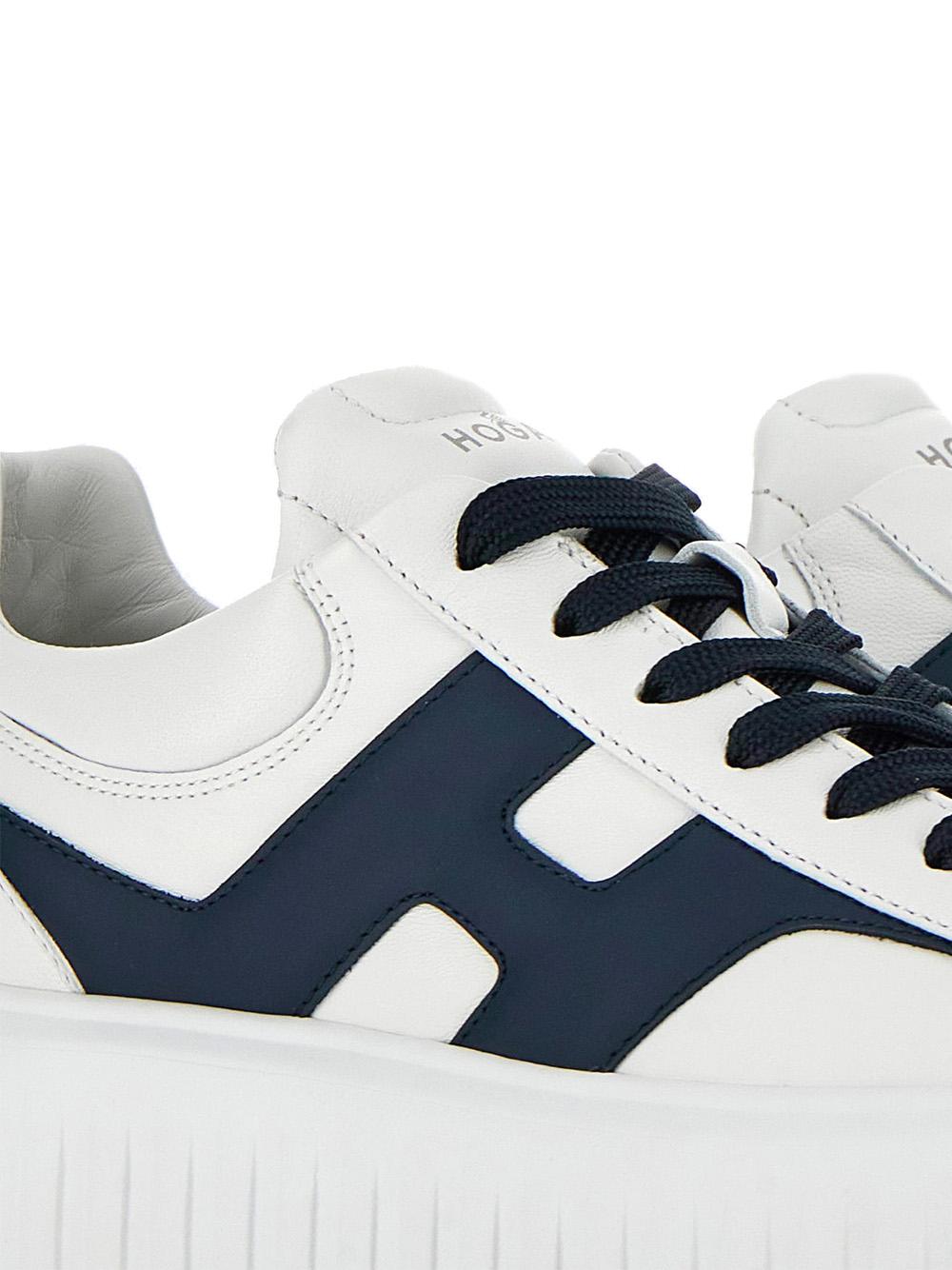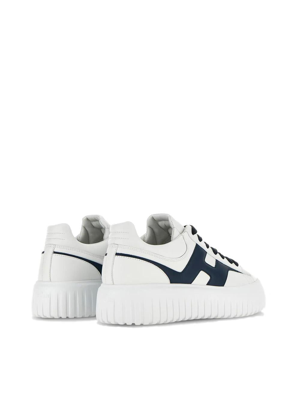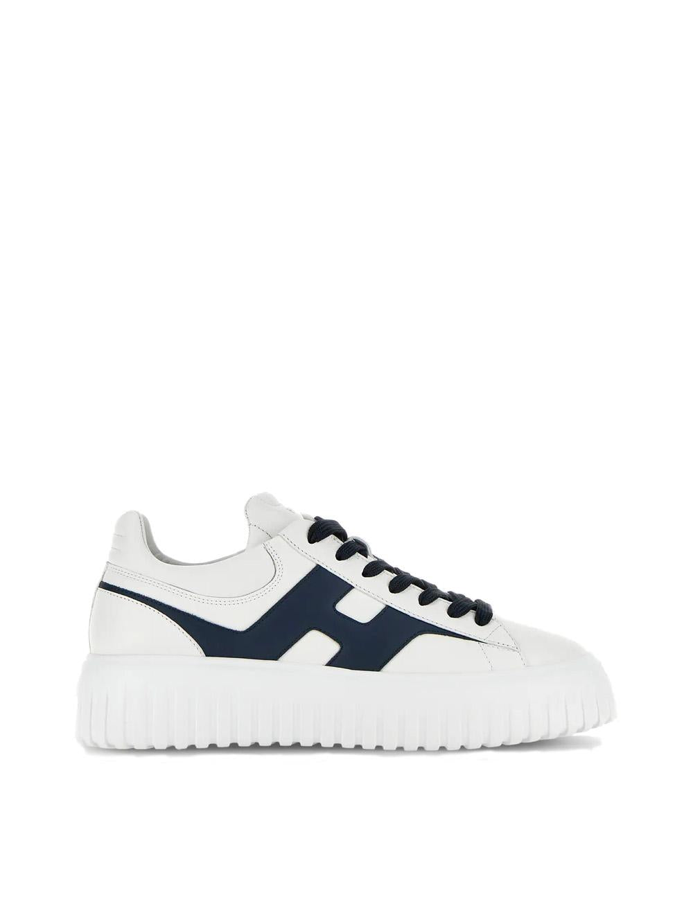 Sneakers Hogan H-Stripes in pelle bianco con h blu