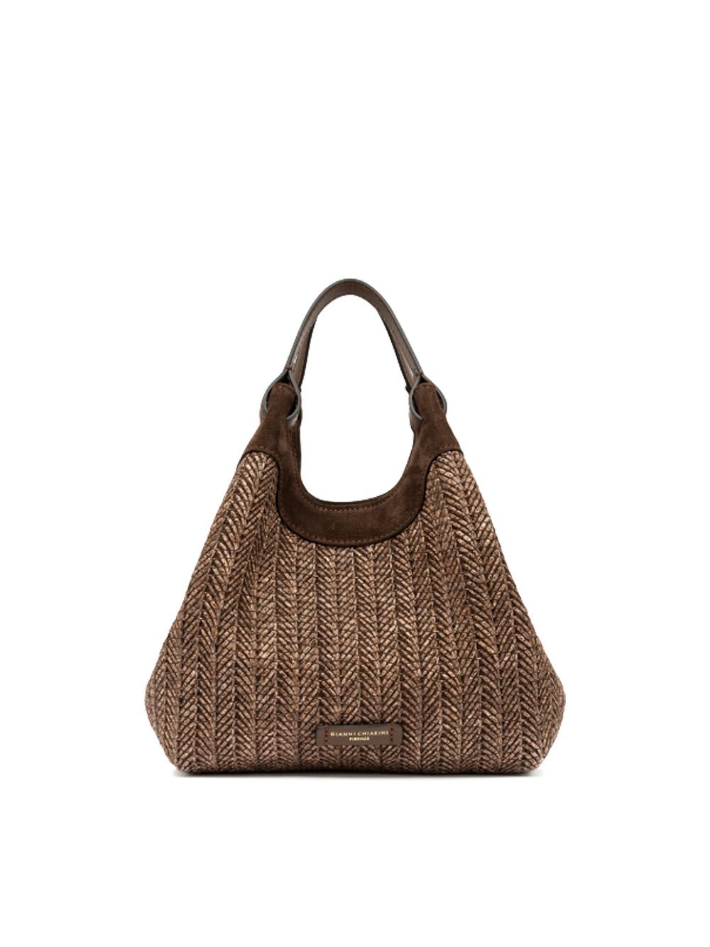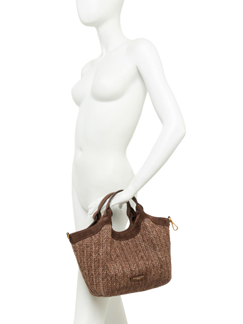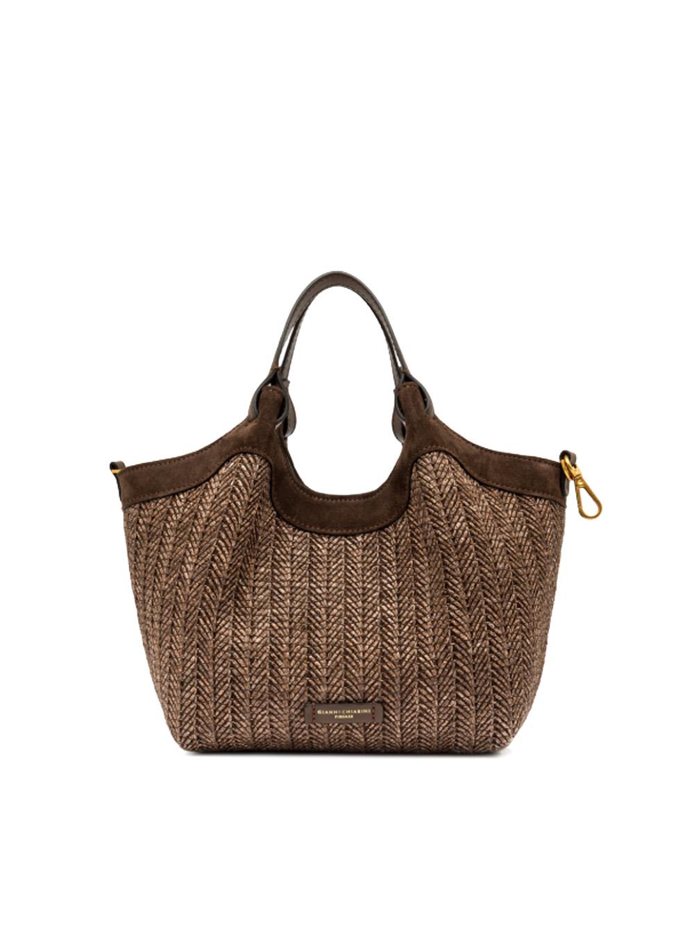 Borsa Dua media in paglia intrecciata marrone