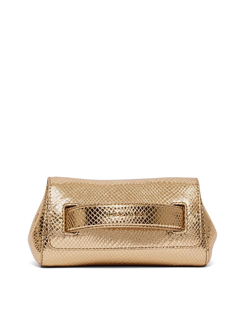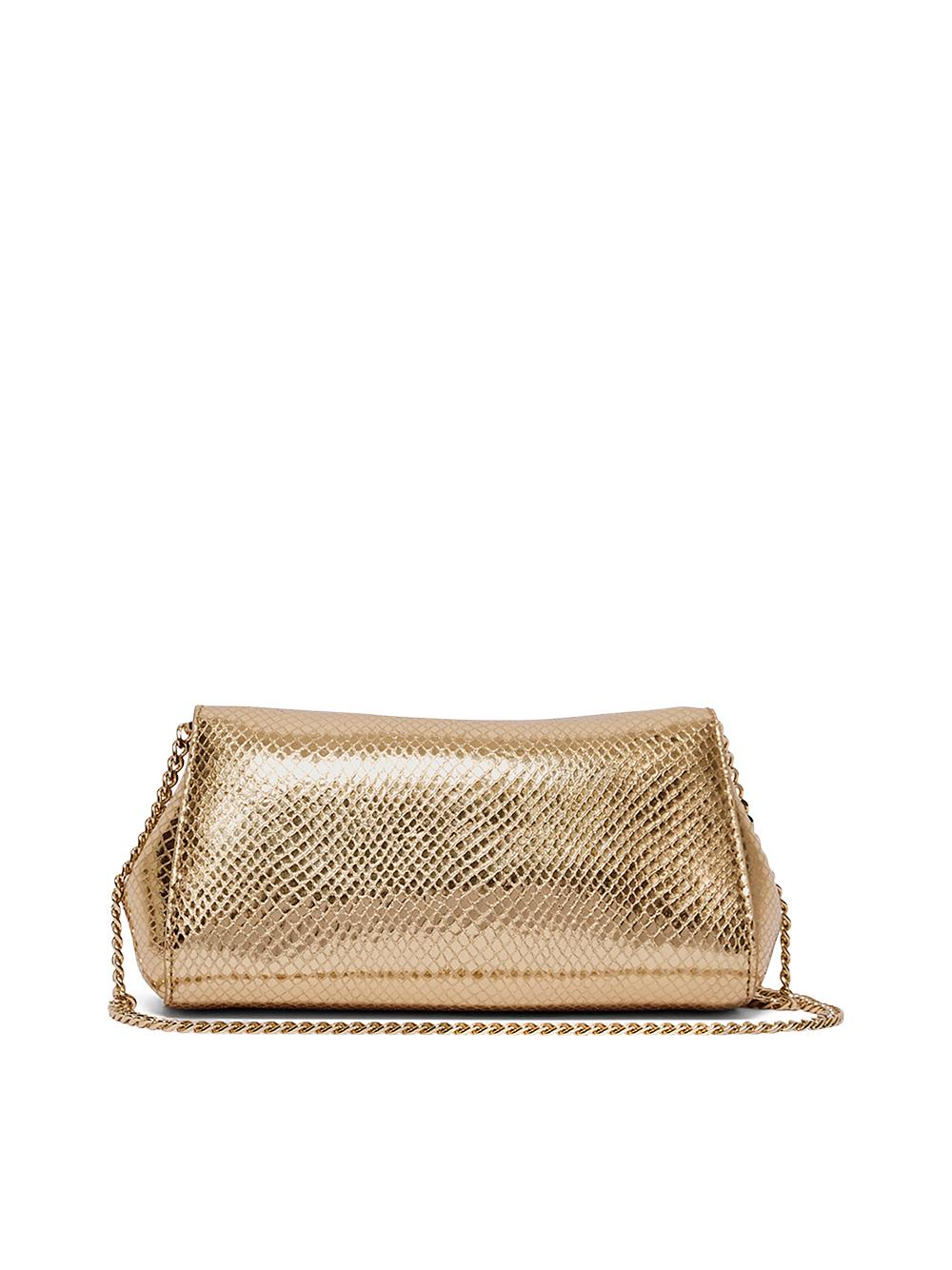 Clutch Gossip in pelle metallizzata oro effetto pitone