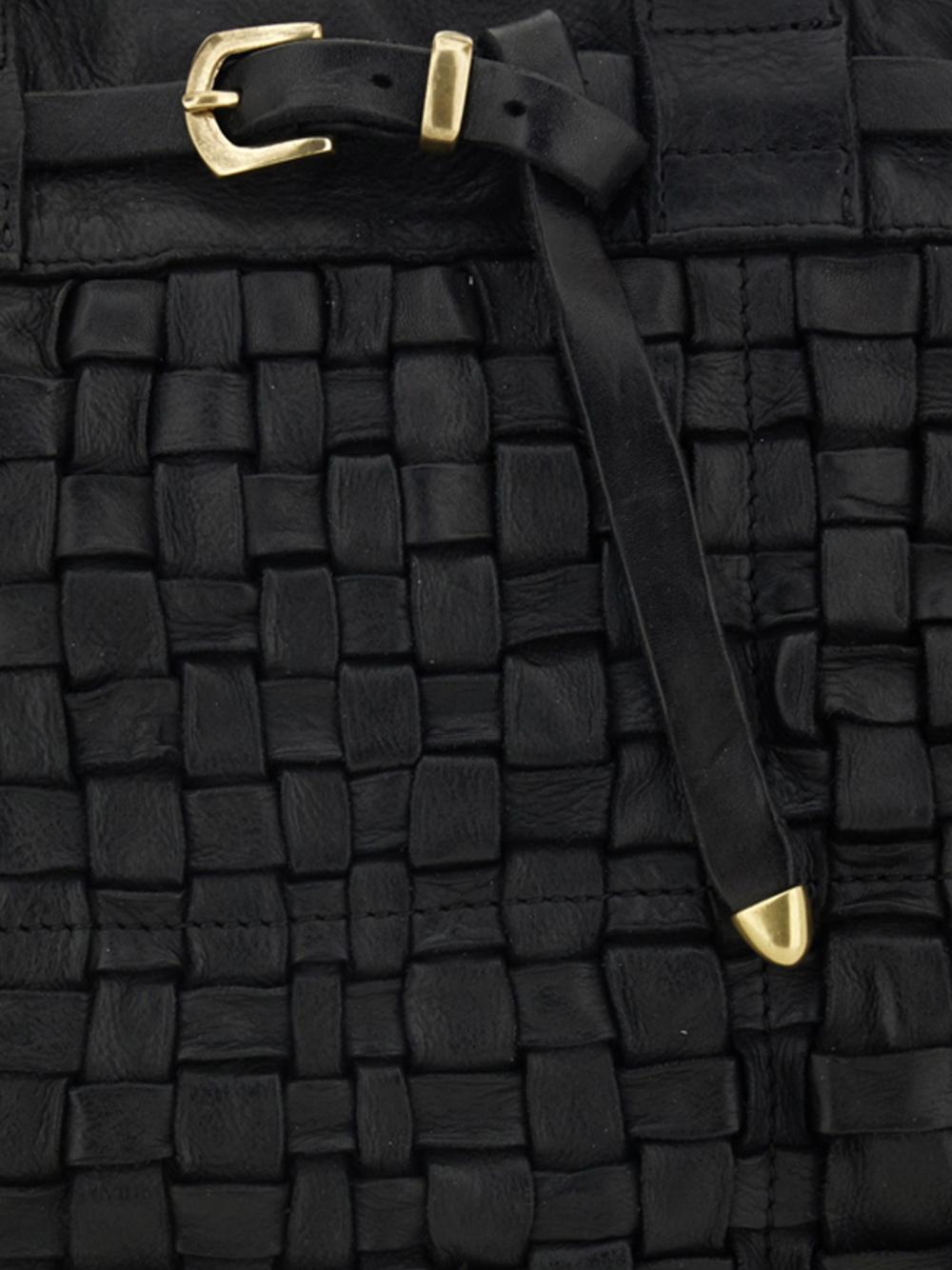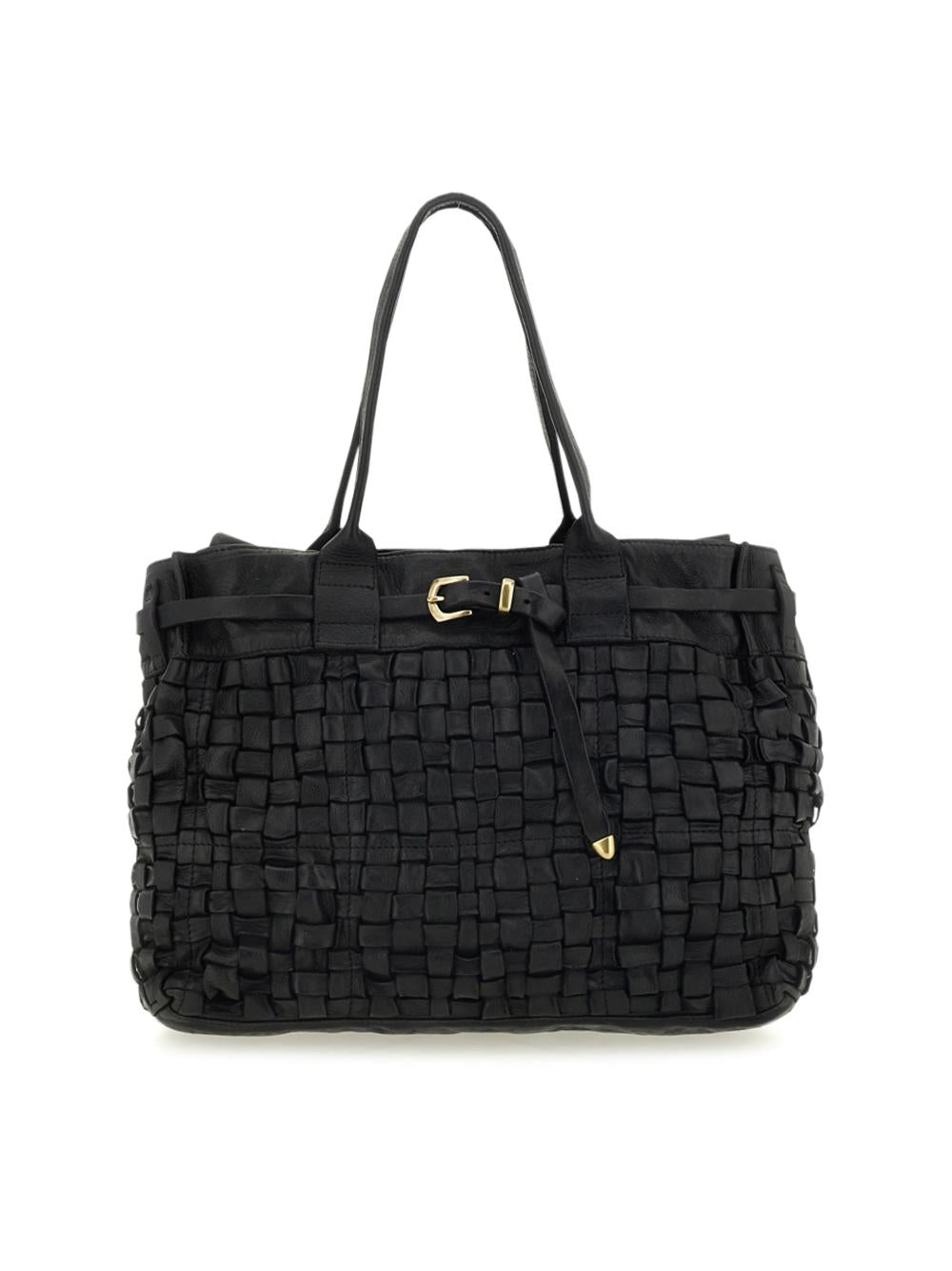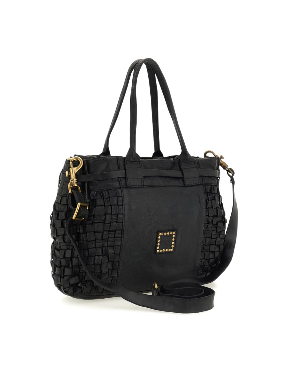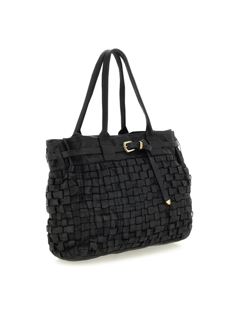 Borsa shopping "Penelope" in pelle nera intrecciata