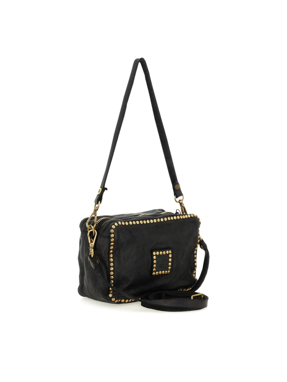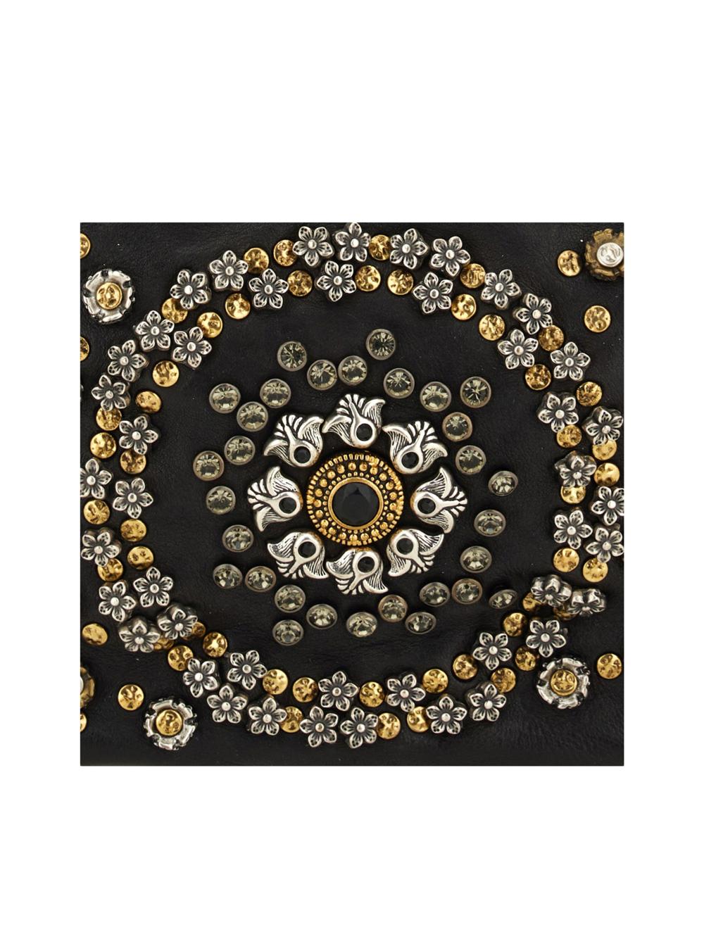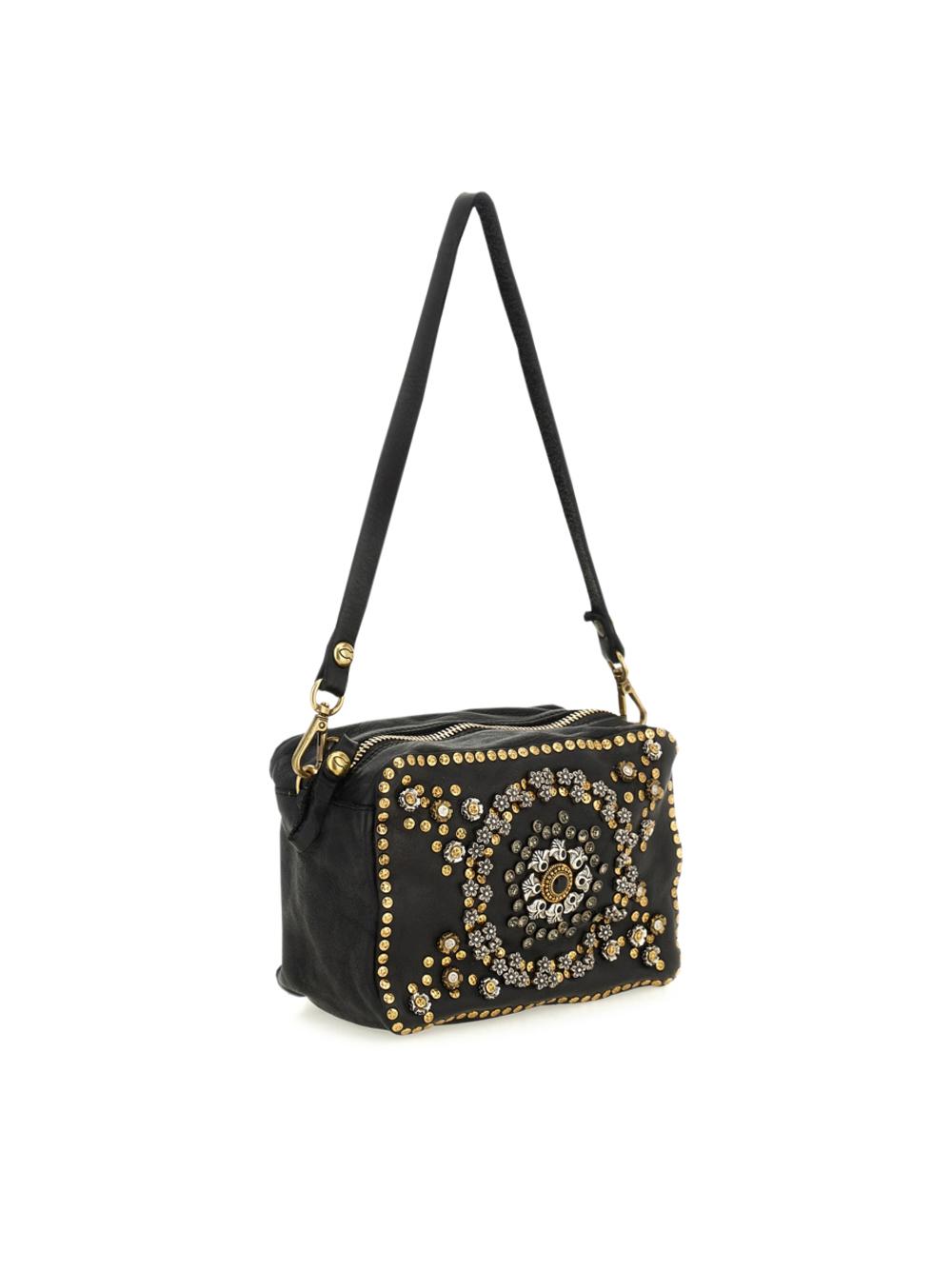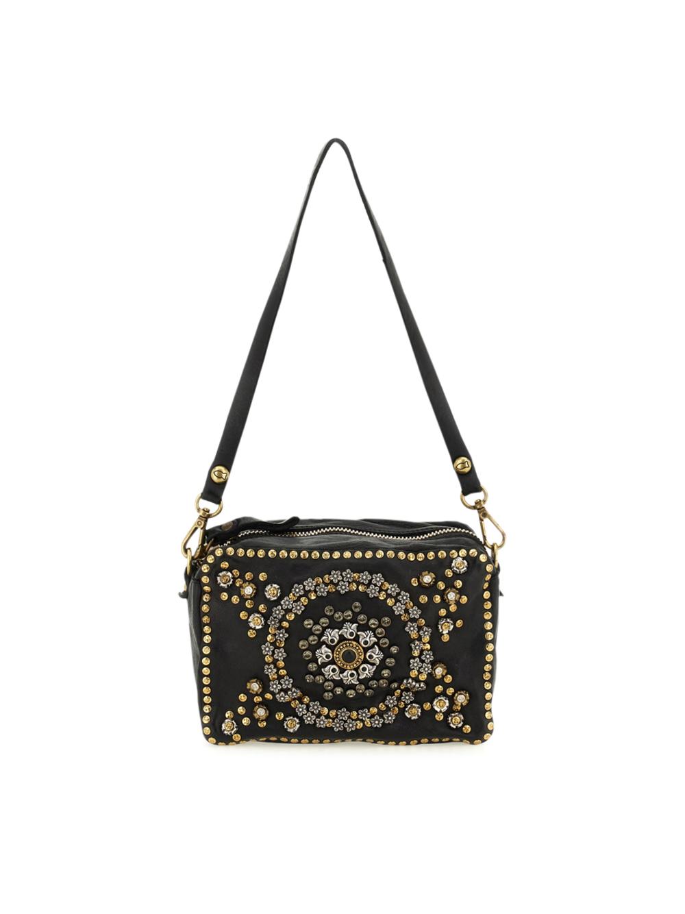 Borsa camera bag "Moira" in pelle nera con borchie e strass