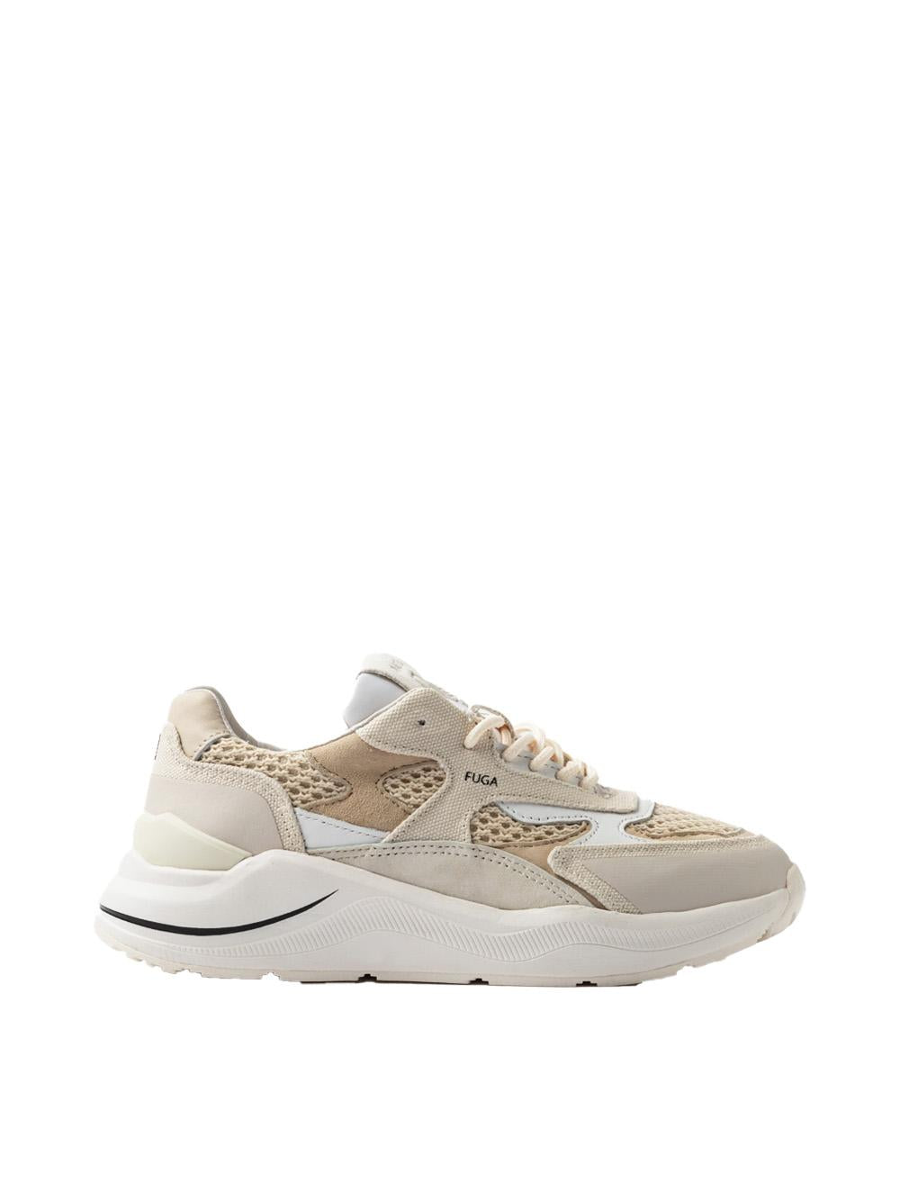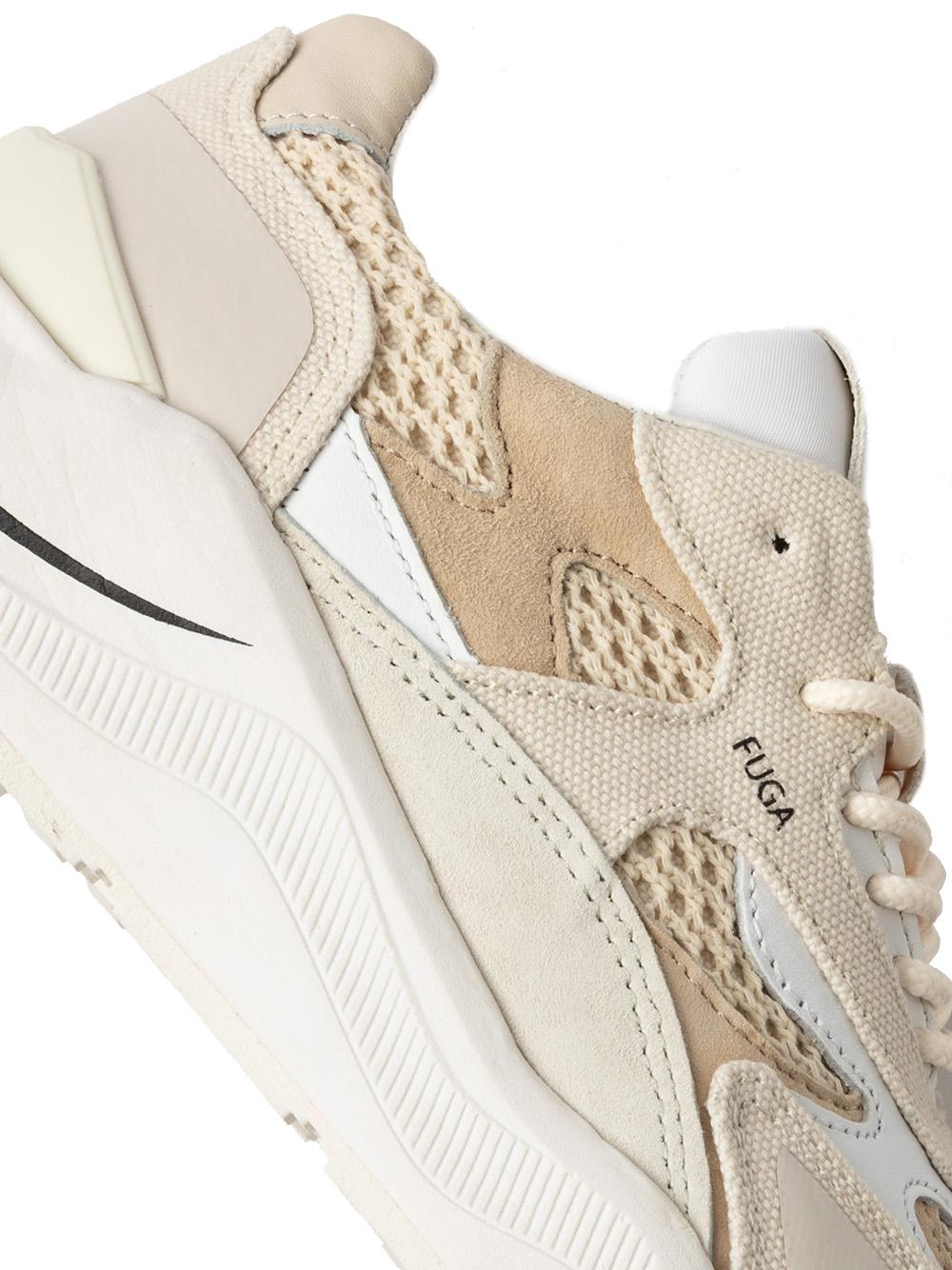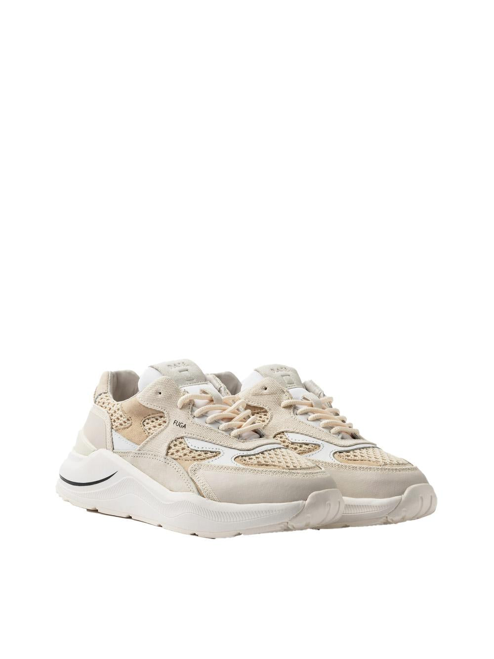 - Running sneakers in tessuto traforato colore beige con inserti in canvas e suede in tono.