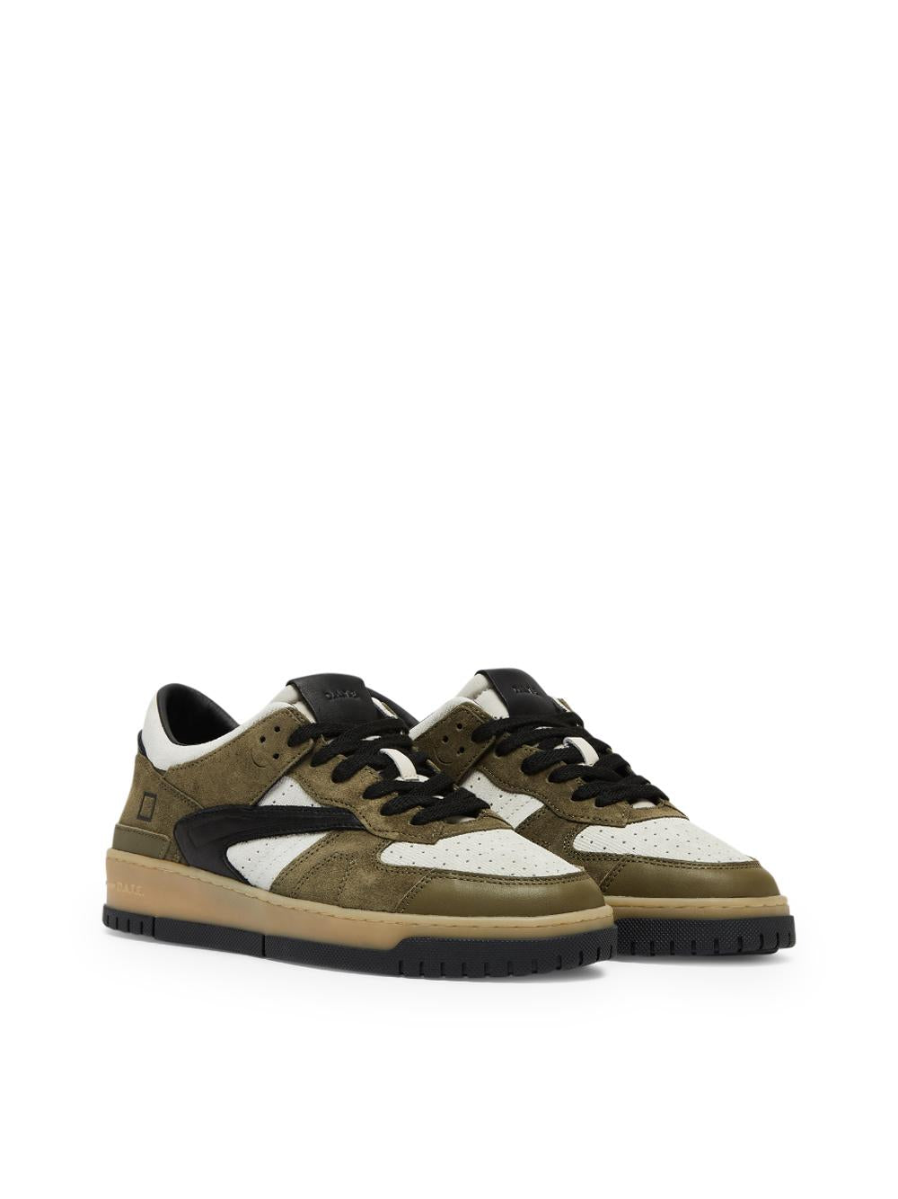 - Il patch in pelle colore nero con impressa la scritta D.A.T.E. è cucito sulla linguetta in nylon beige.