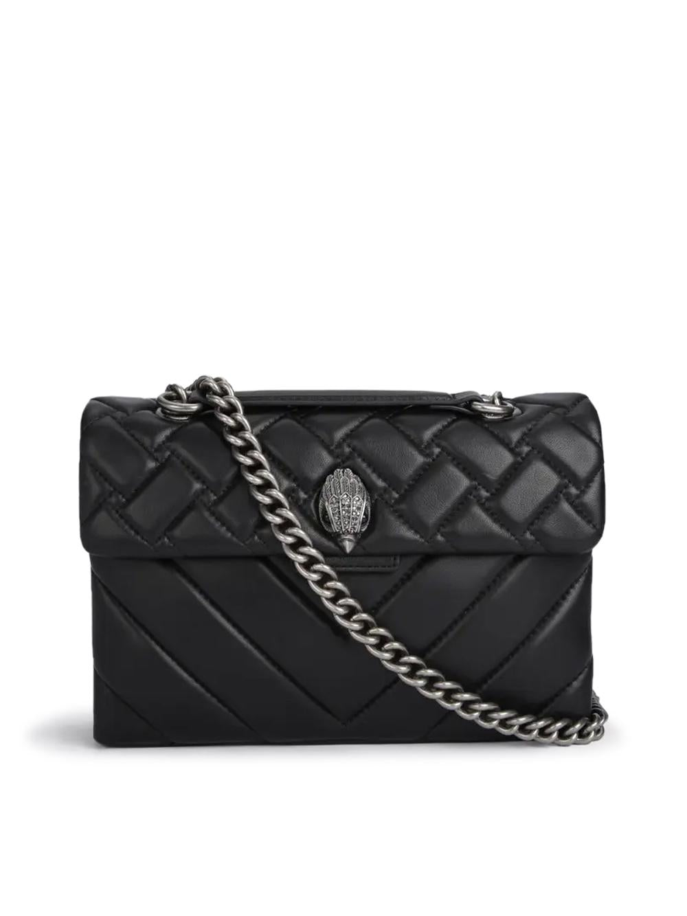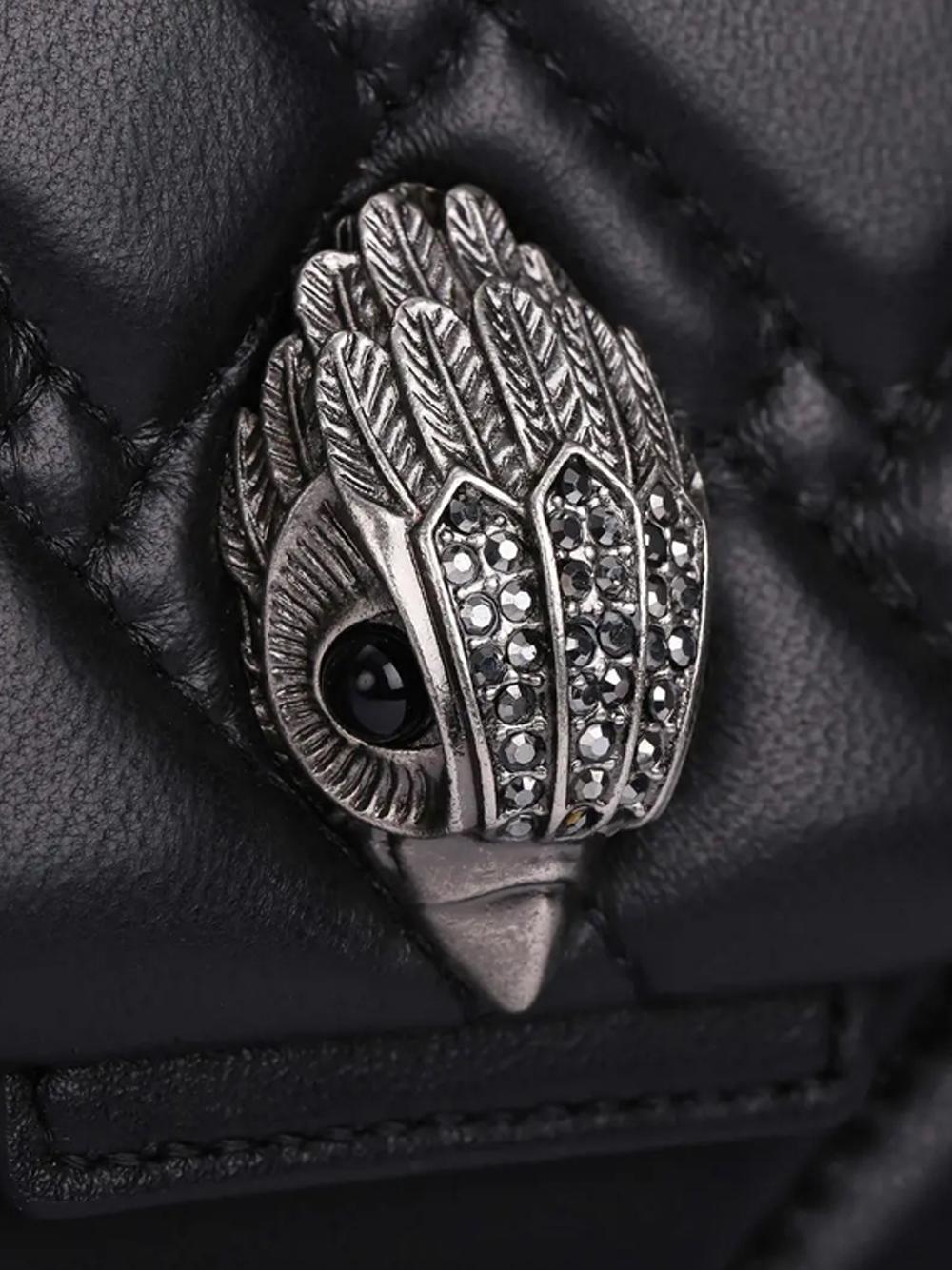 - Tracolla a catena in ottone anticato con due inserti in pelle imbottiti.