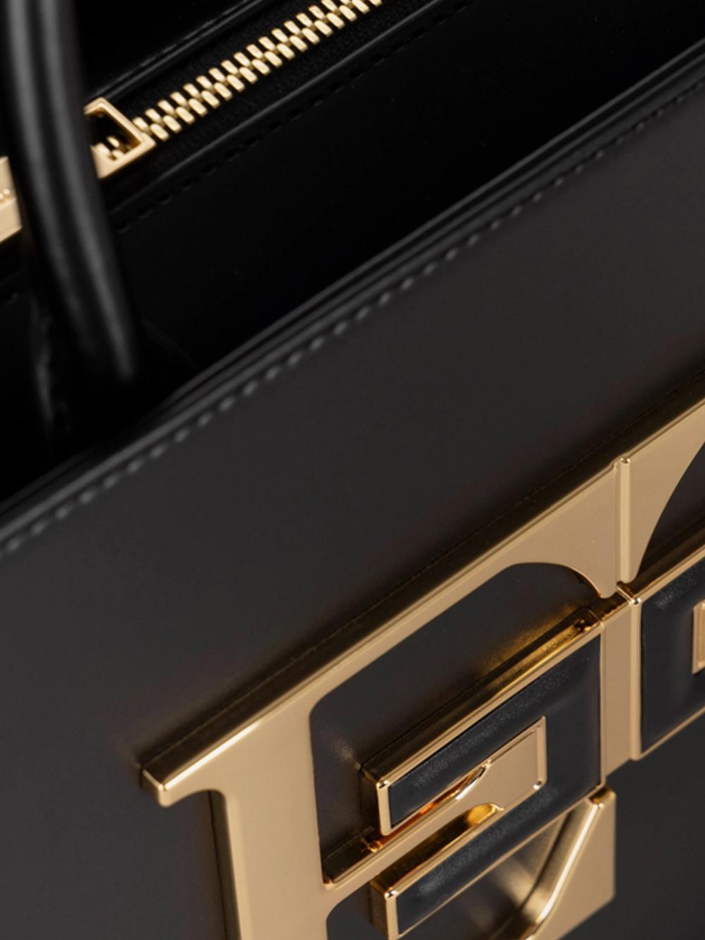 - È caratterizzata da maxi placca EF in metallo dorato e logo doppia C fasciato.