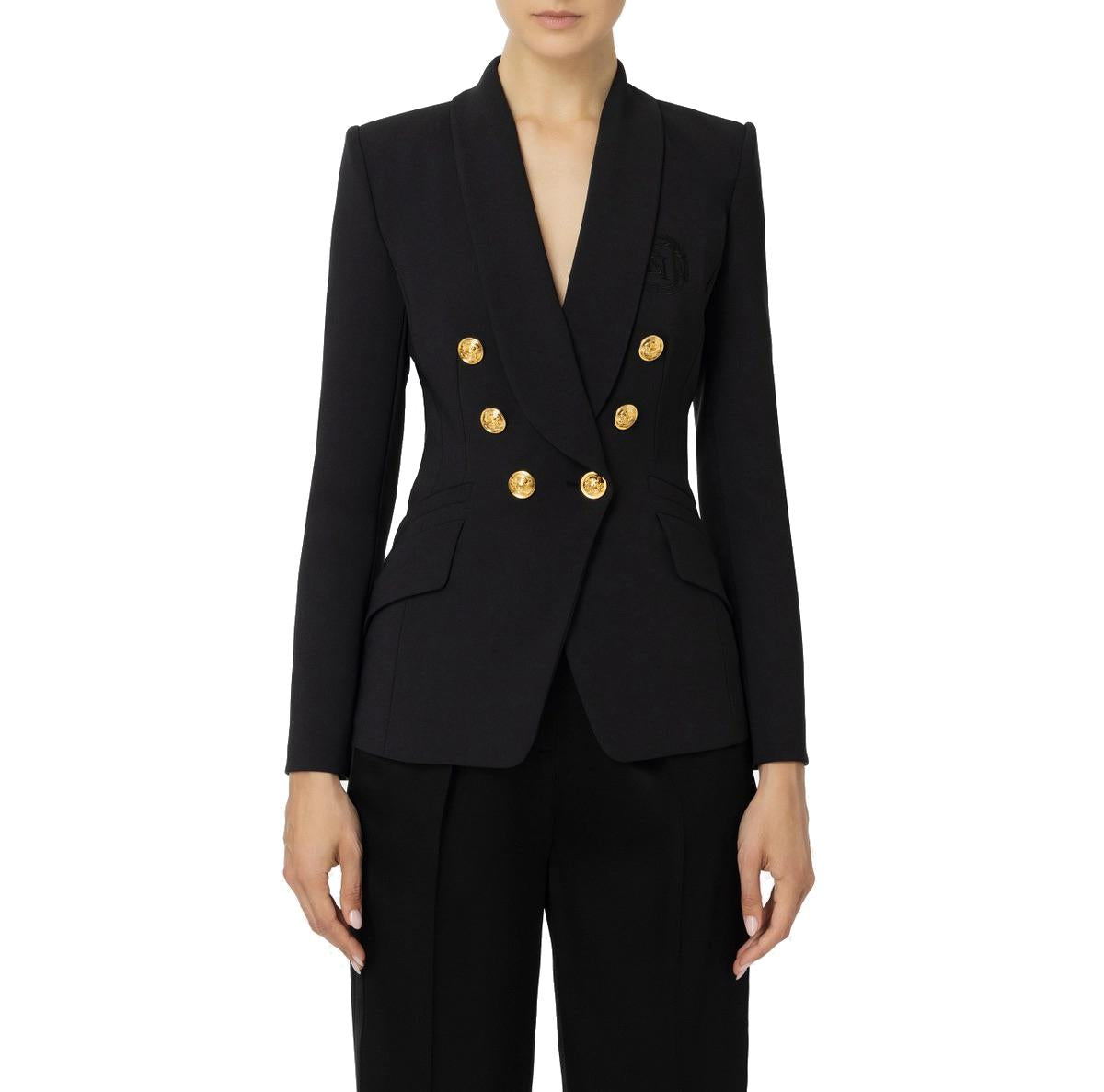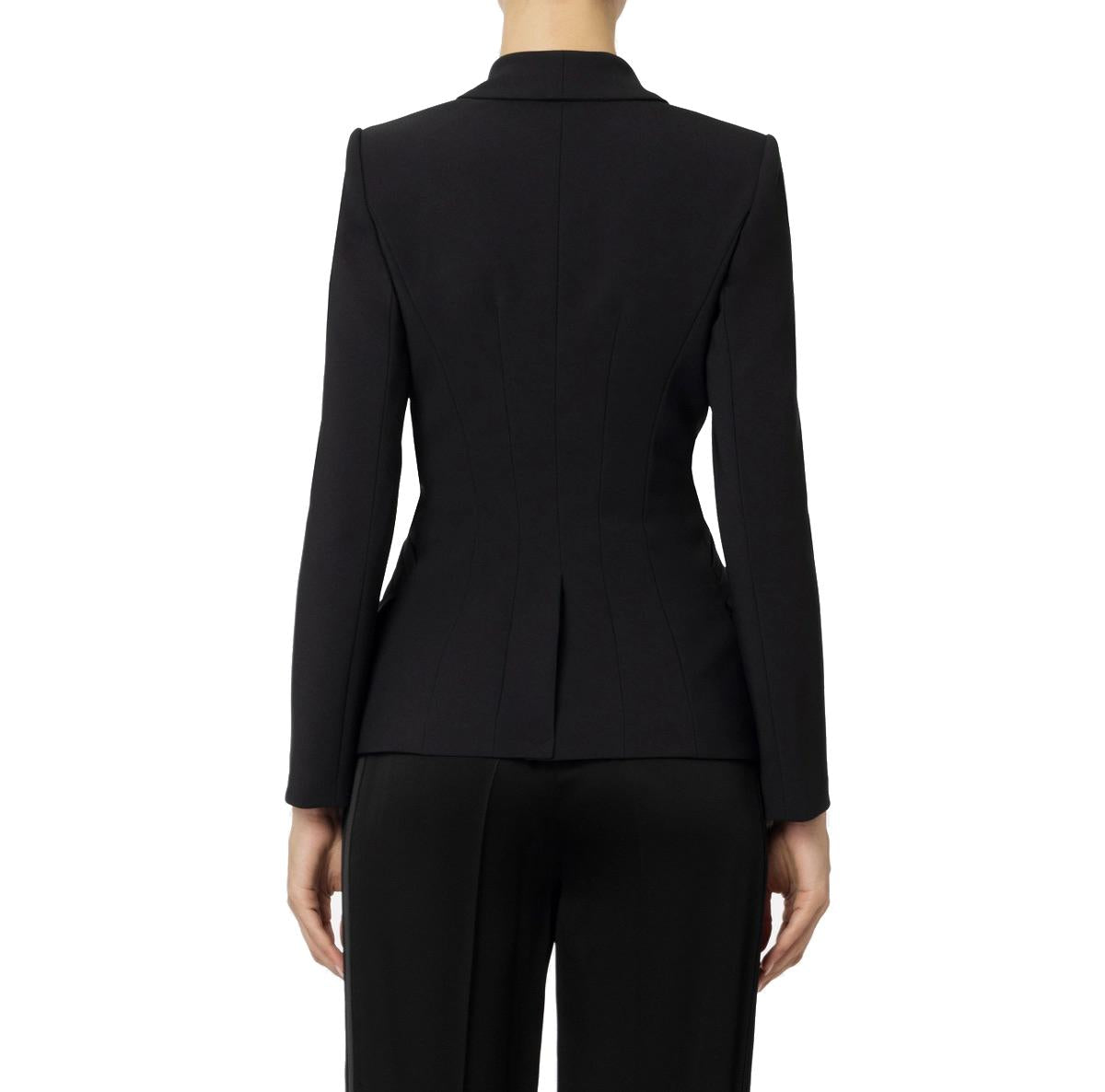 Giacca nera doppiopetto in crêpe stretch con ricamo