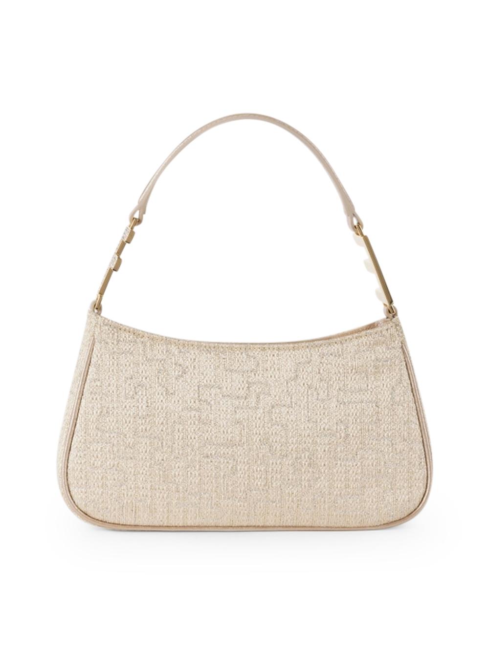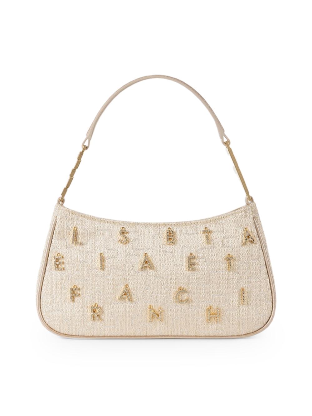 - Borsa a spalla in tweed lurex impreziosita sul davanti da charms lettering in strass.