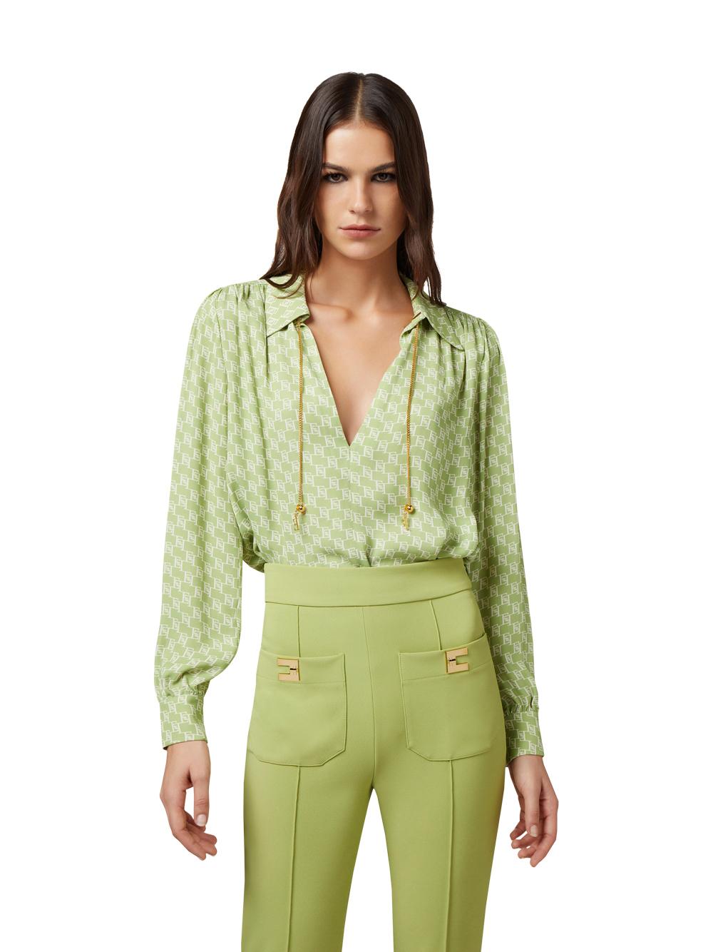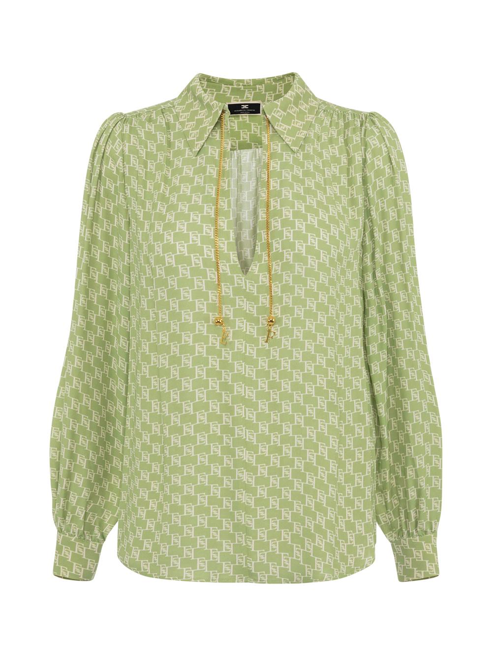 Camicia in georgette di viscosa stampa logo con accessorio sul collo