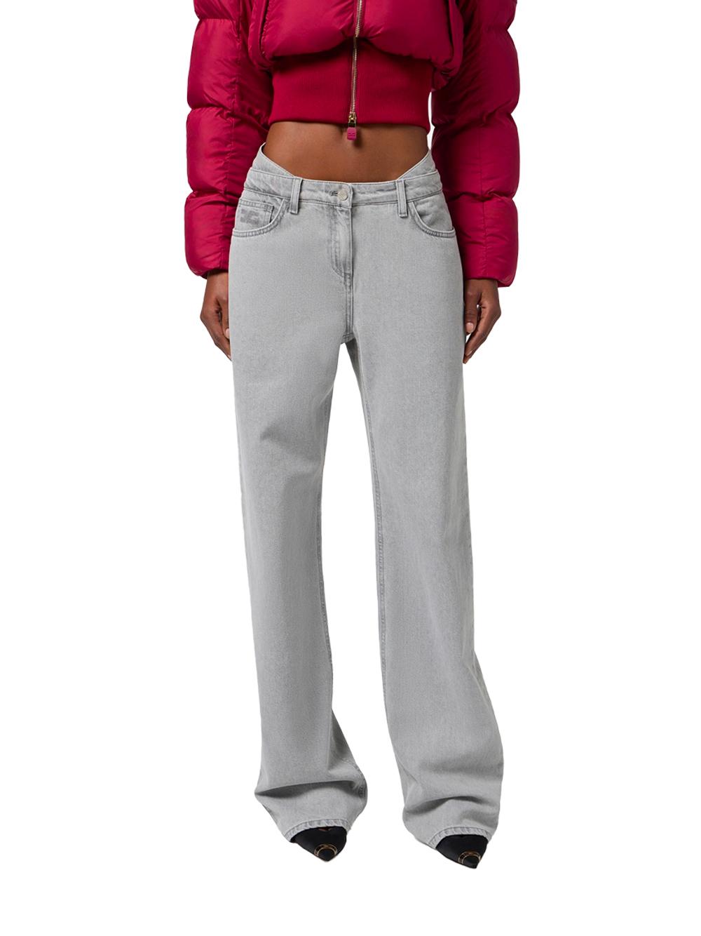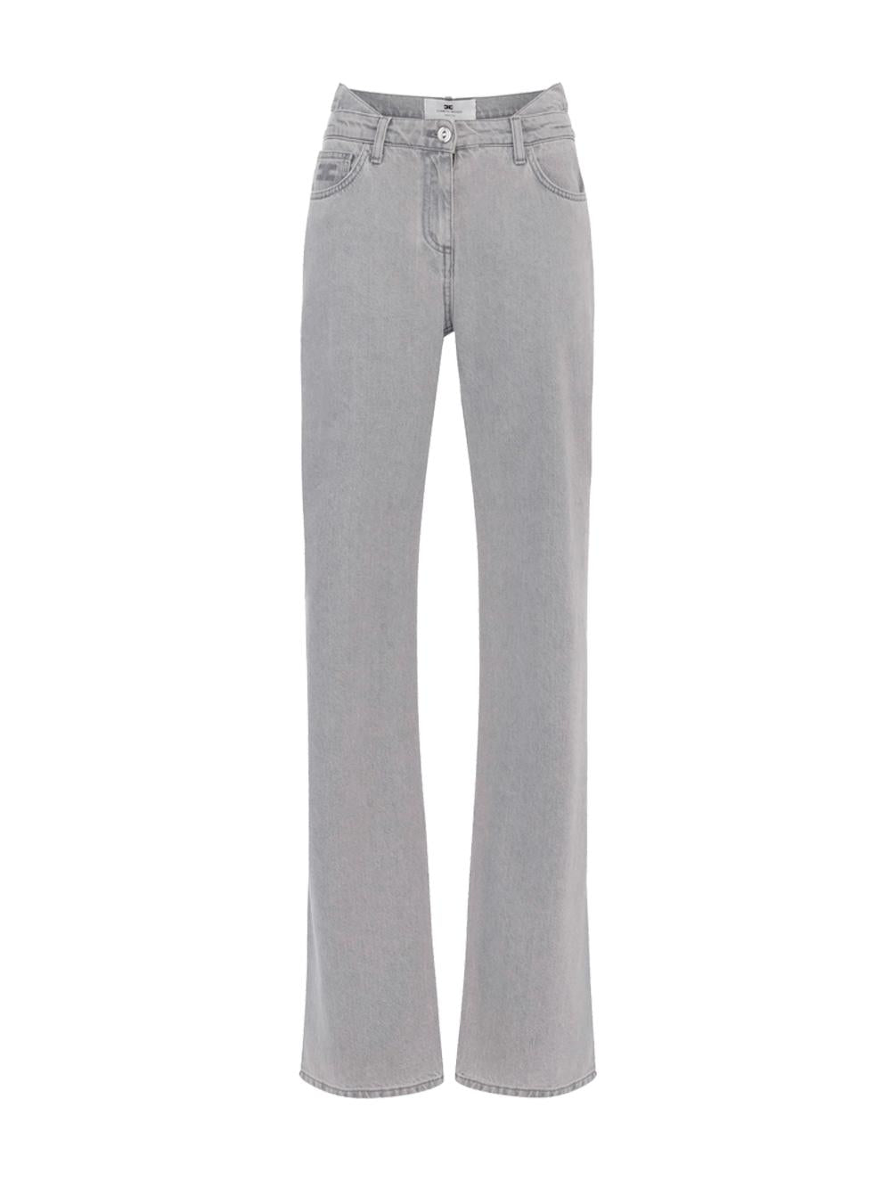 Jeans a vita doppia con logo ricamato grigio chiaro