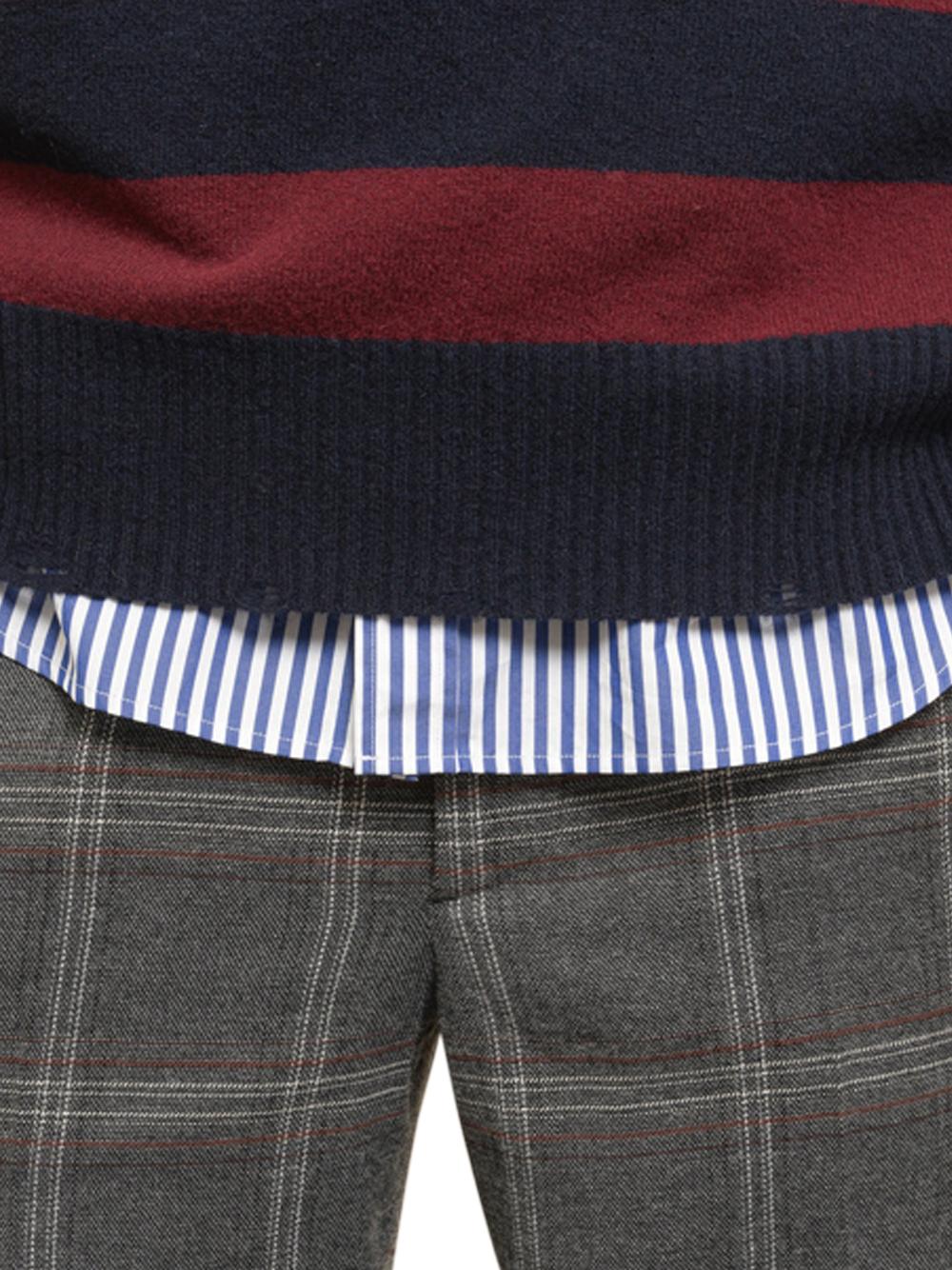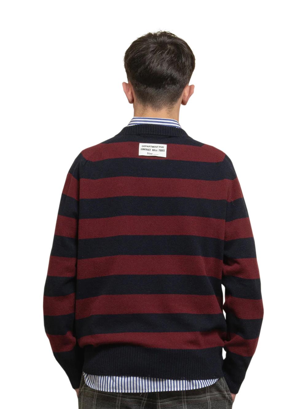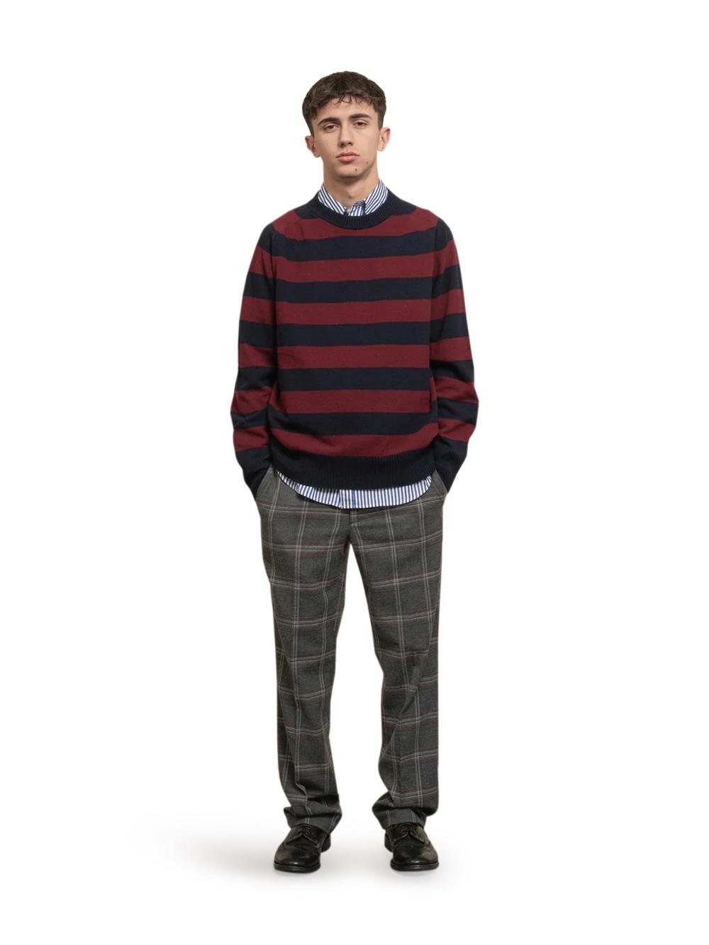 Maglione girocollo "Teer" in lana a righe bordeaux e blu