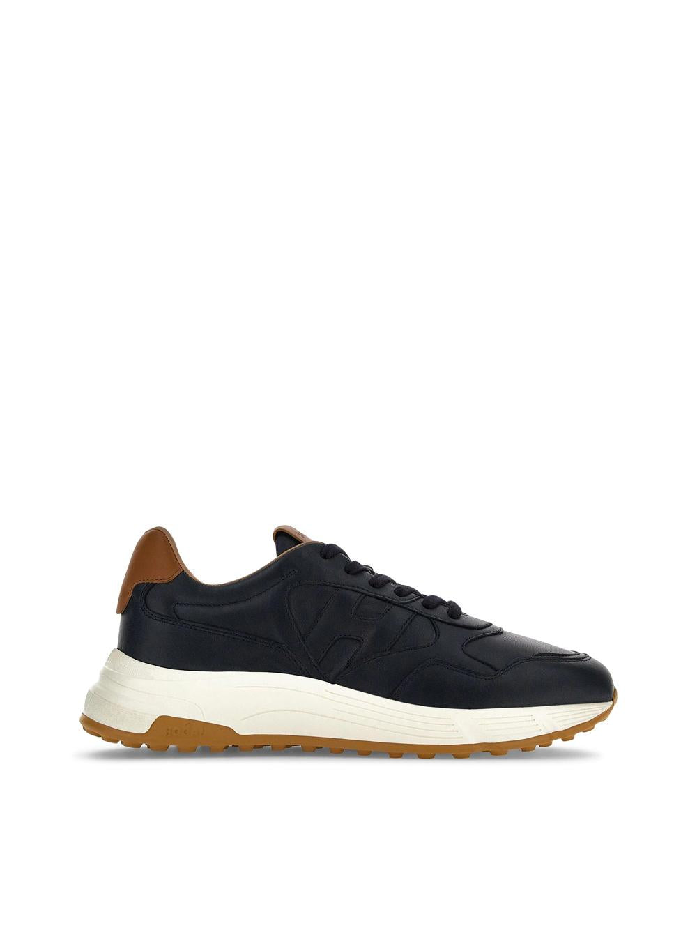 SNEAKERS HYPERLIGHT IN PELLE BLU CON INSERTI CUOIO