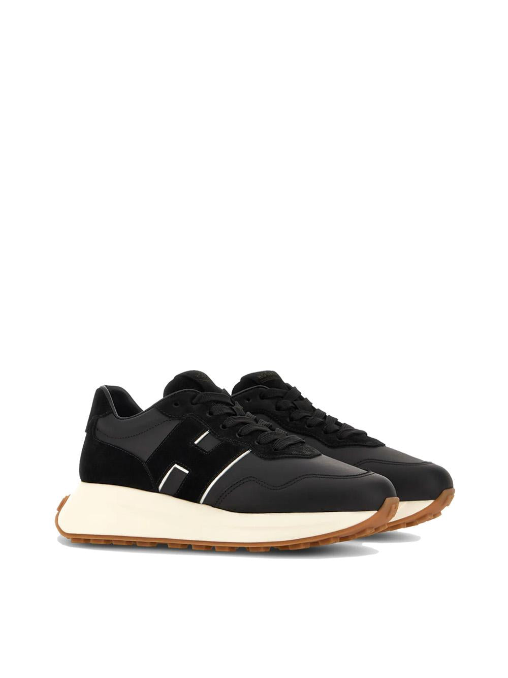 Sneackers Hoga H641 in pelle e camoscio nero