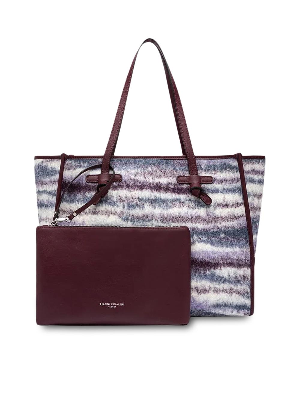 Borsa shopping grande in lana jaquard melange bordeaux