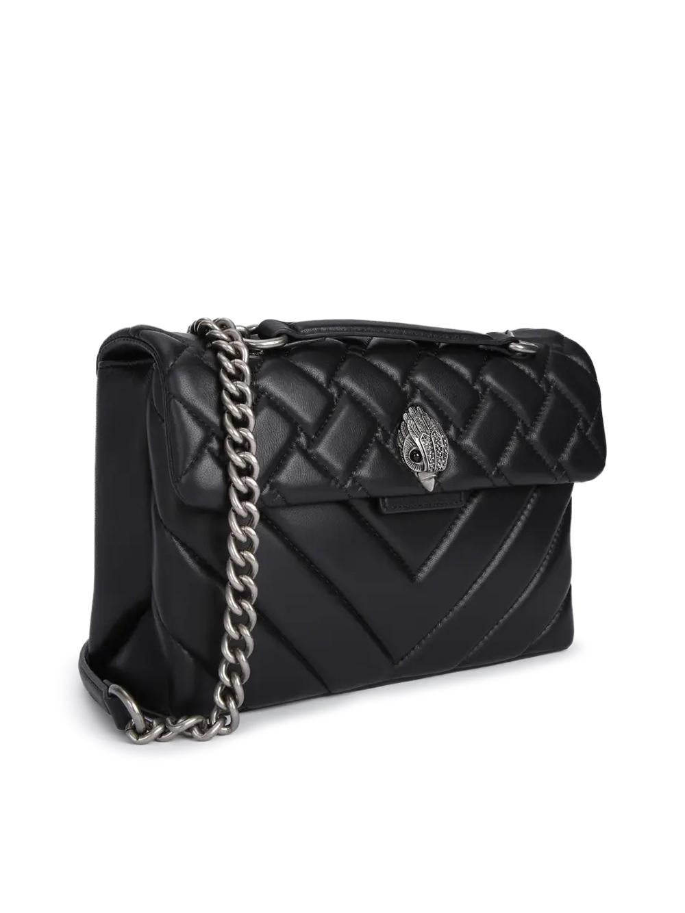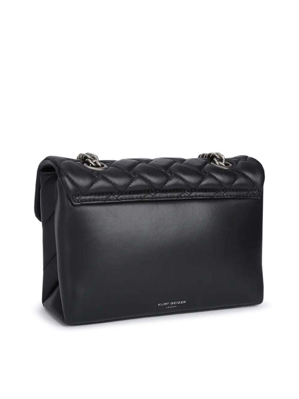 - Tracolla a catena in ottone anticato con due inserti in pelle imbottiti.
