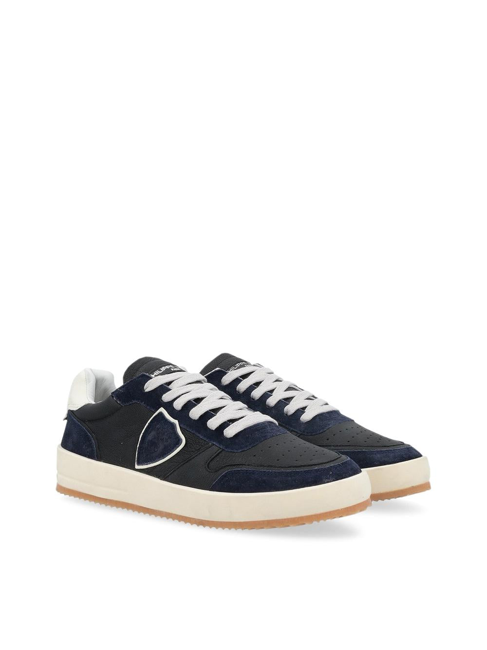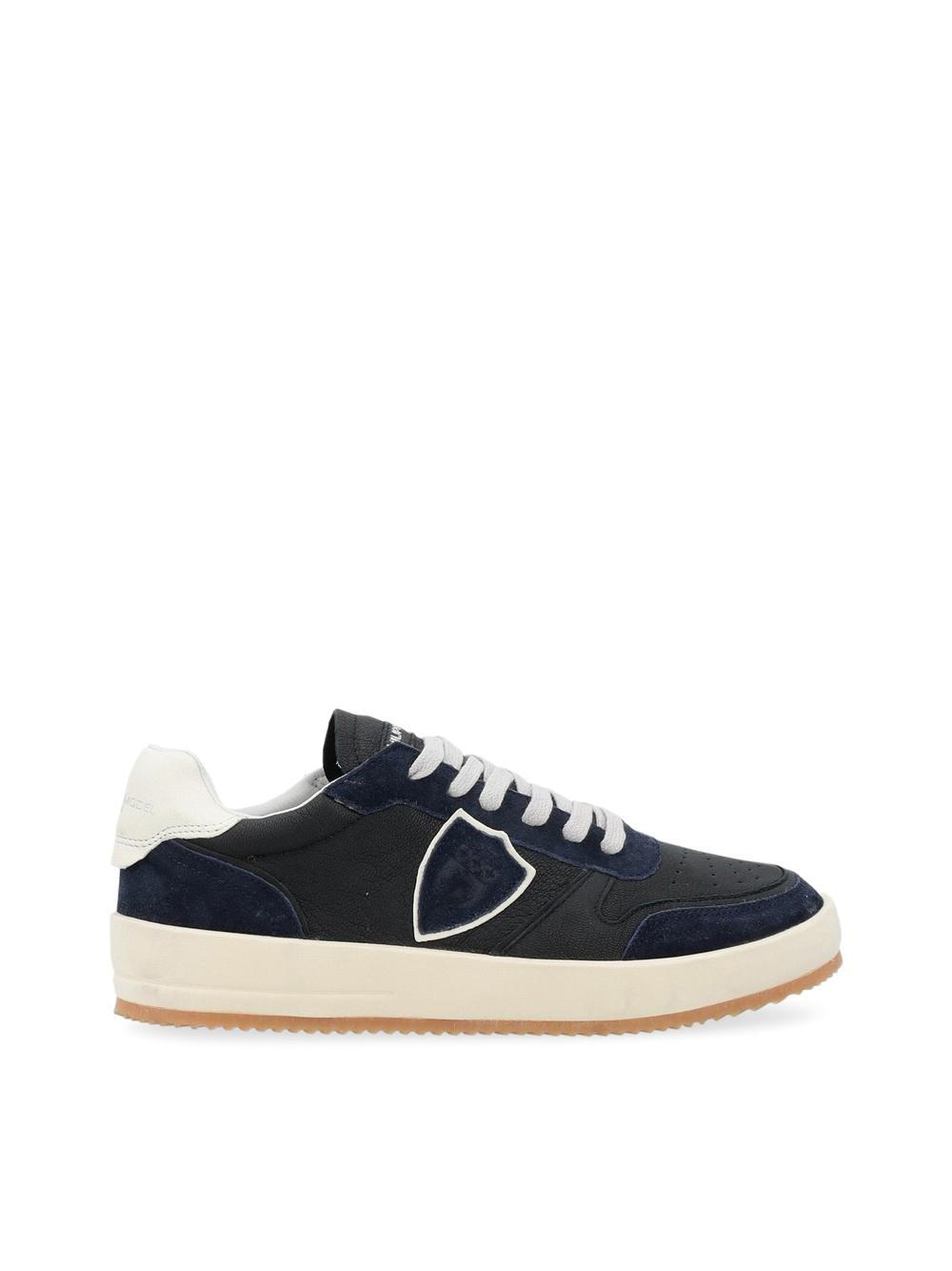Nuova sneaker Nice in morbido vitello e inserti in camoscio - Traforature sulla punta e topponcino bianco a contrasto con logo.