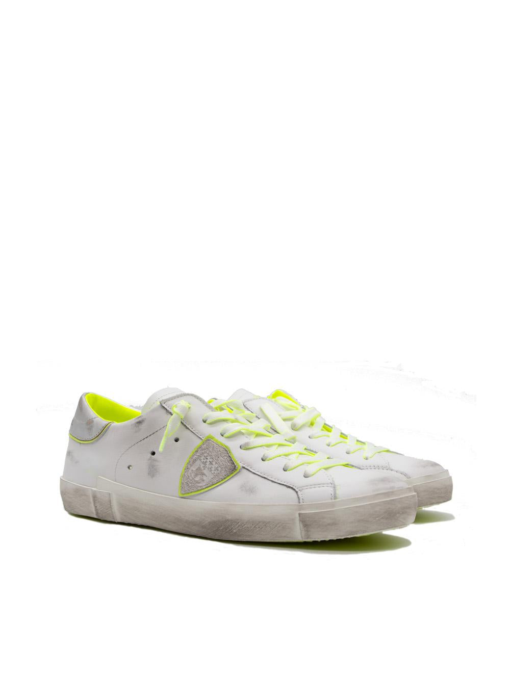 Sneakers Paris Uomo in pelle bianco e fluo