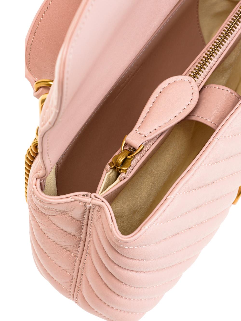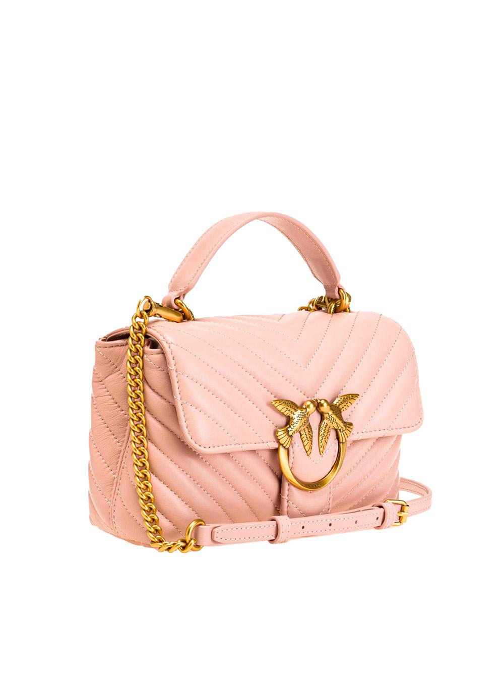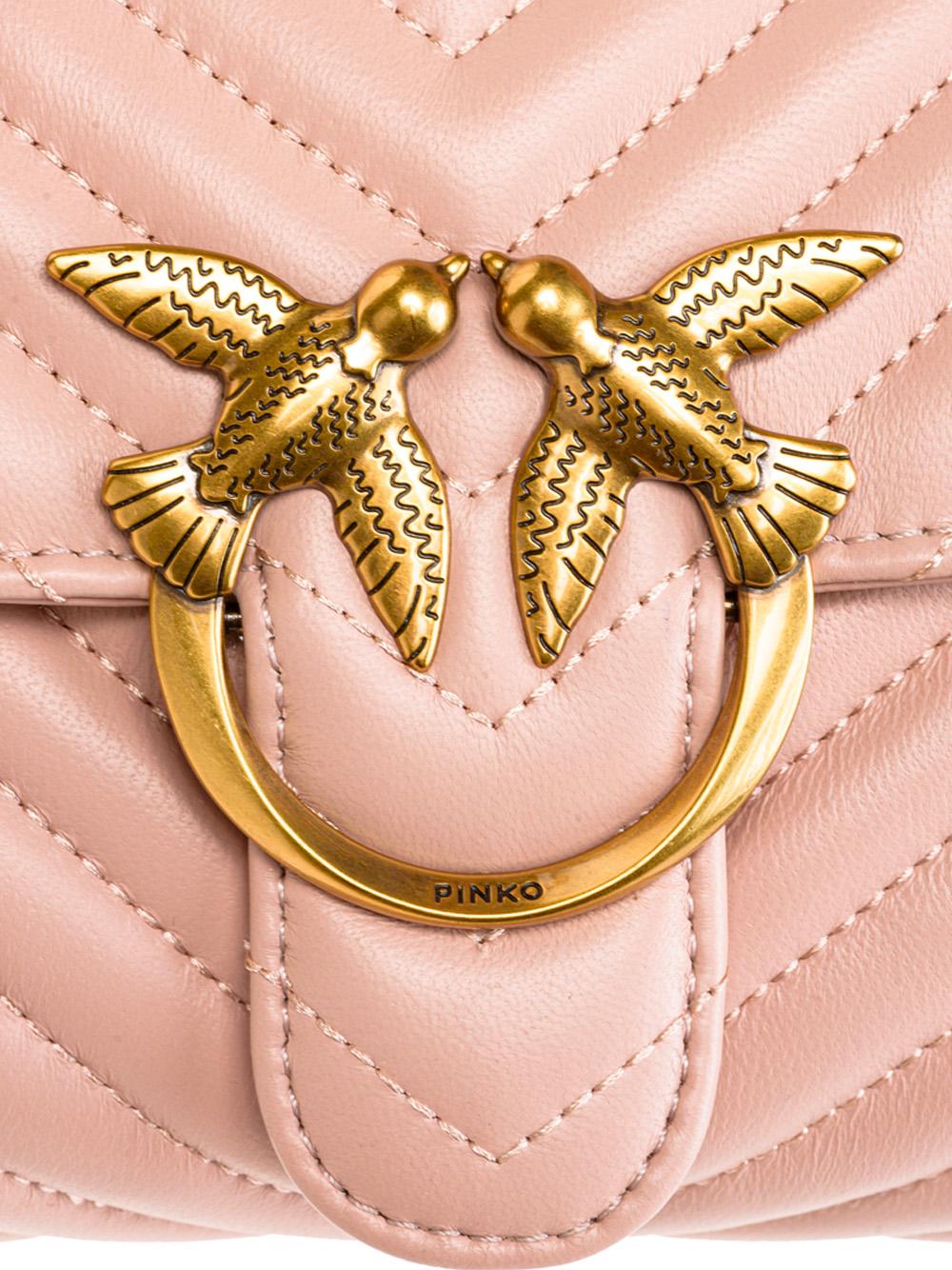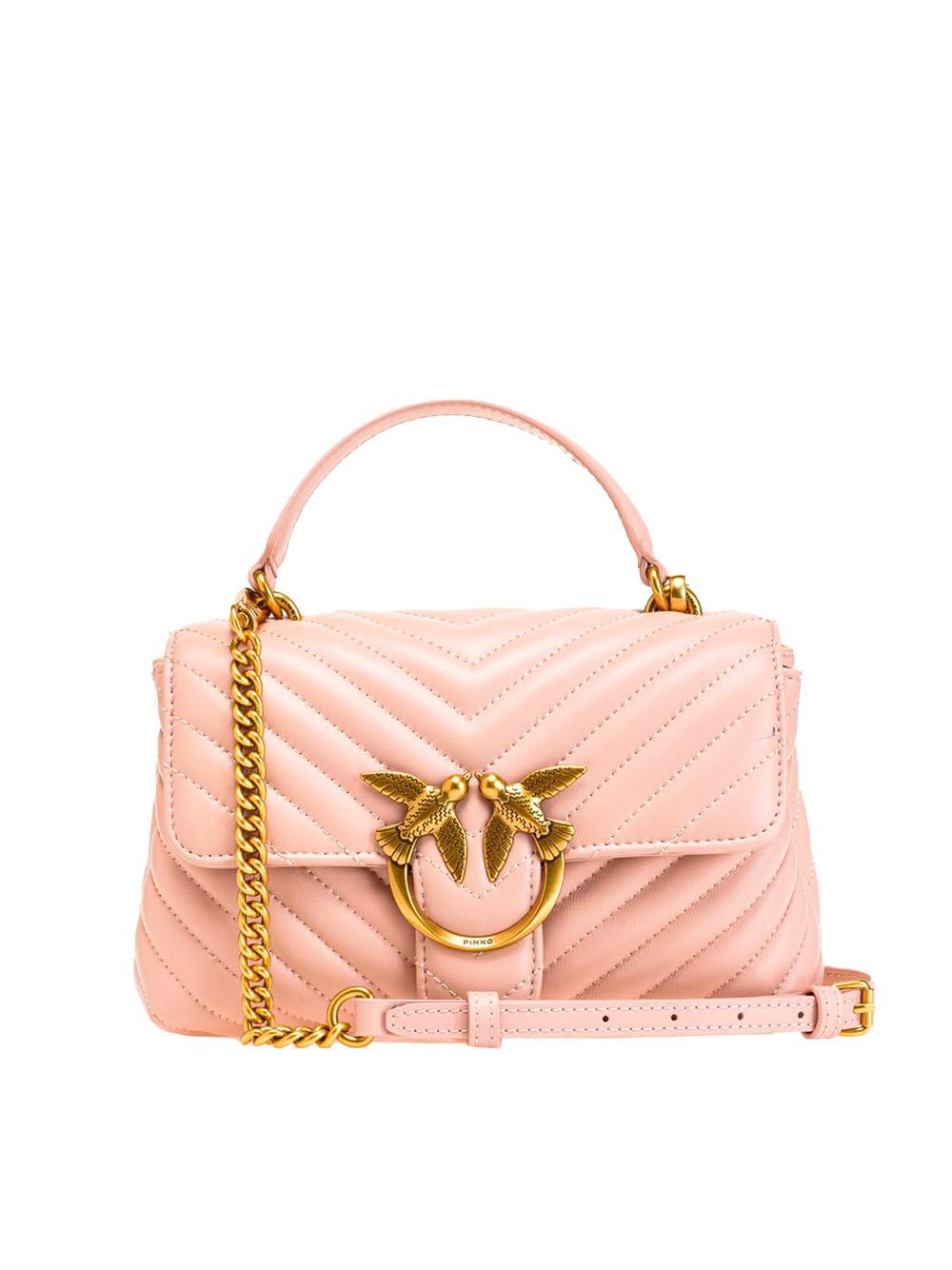 - Mini Lady Love Bag Puff in nappa trapuntata con motivo chevron. La chiusura è completata dall'iconica fibbia in metallo Love Birds Diamond Cut.