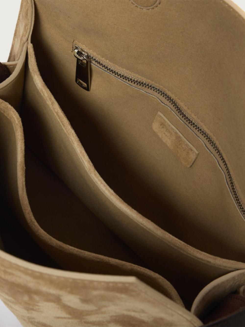 - Funzionalità: manico in cuoio con fibbia regolabile e removibile utilizzabile come cintura / tracolla in suede regolabile e removibile.
