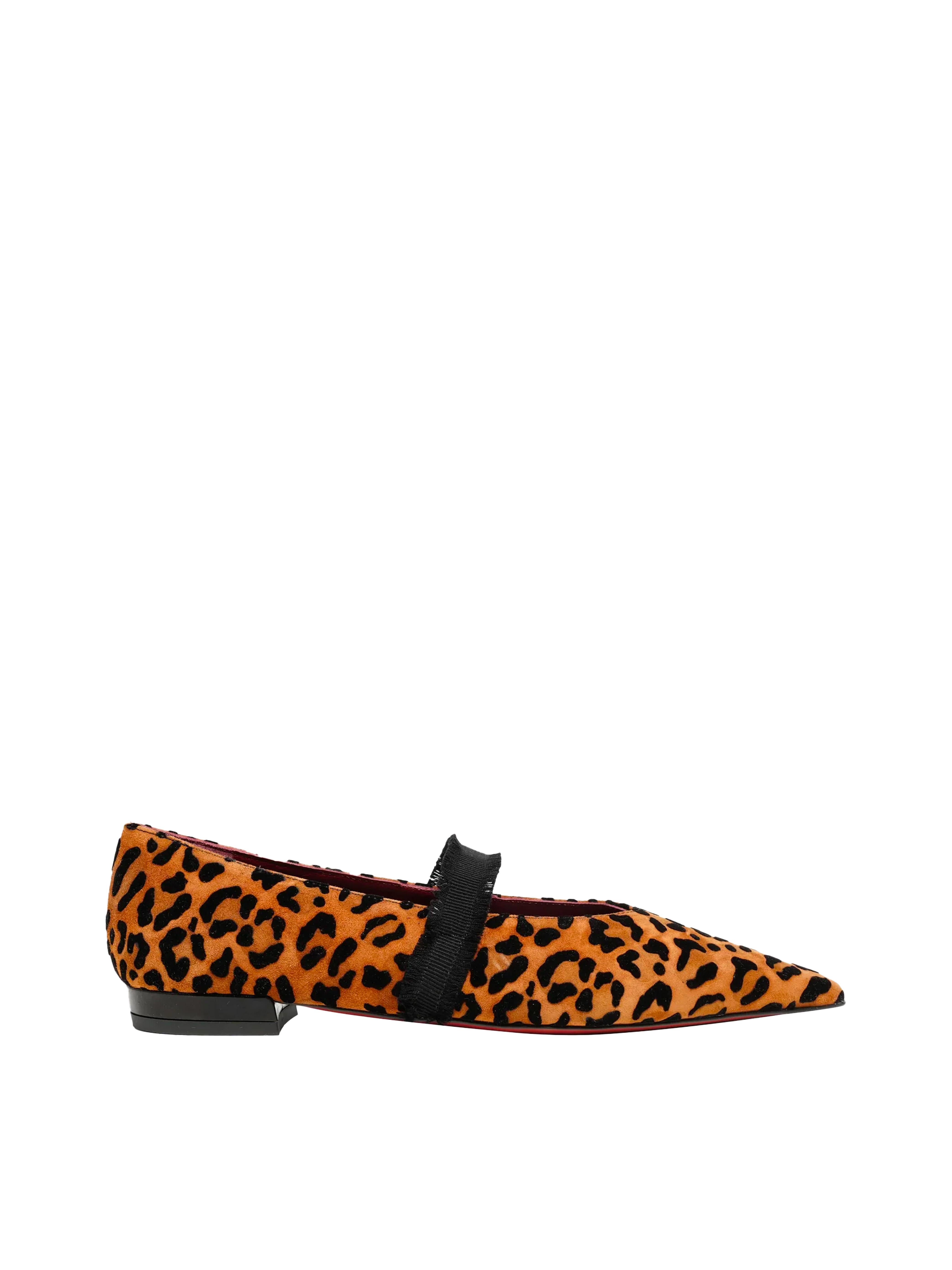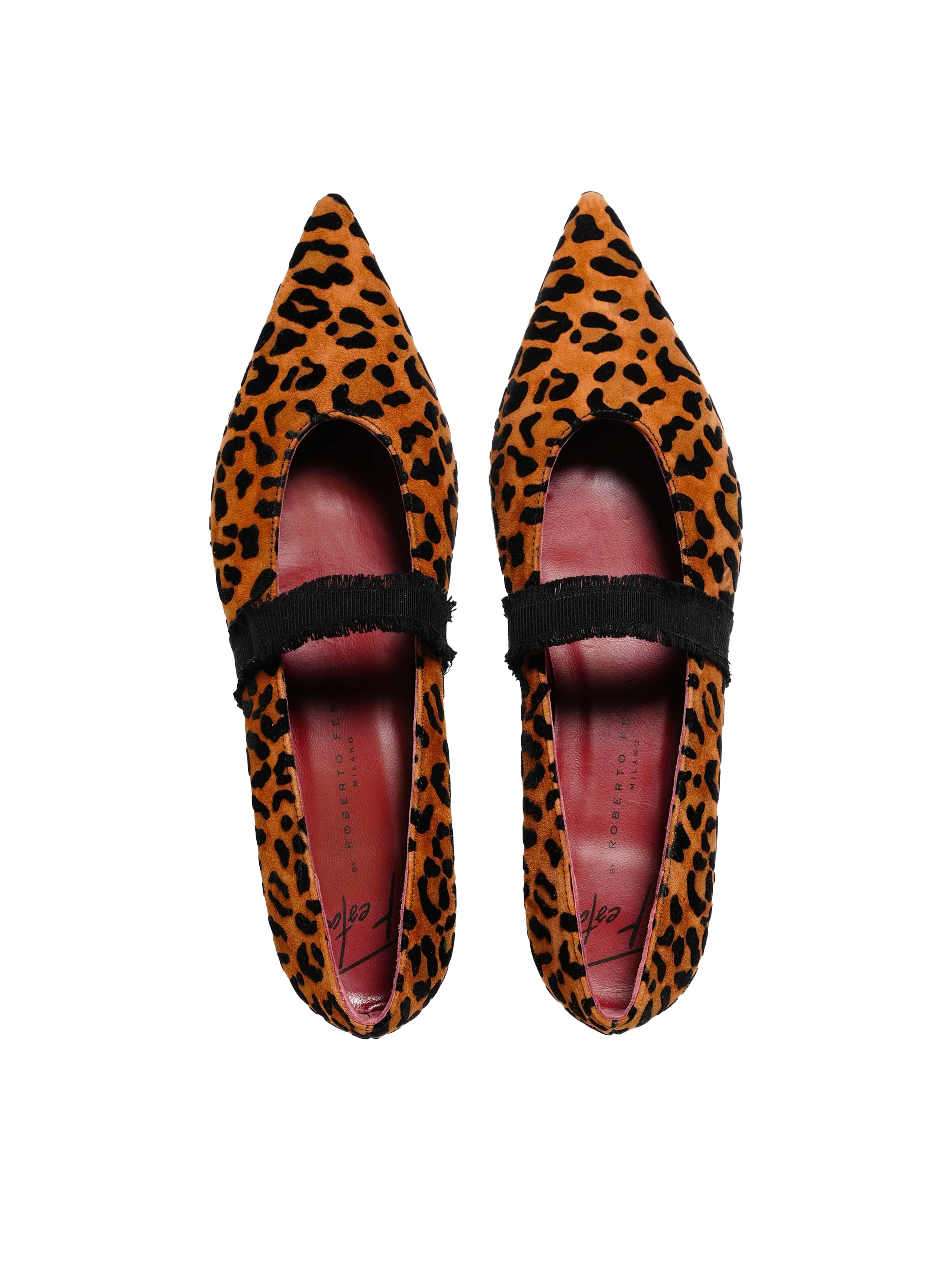 - La ballerina Elior,realizzata in camoscio floccato con stampa leopardata,unisce un design audace a dettagli sofisticati.