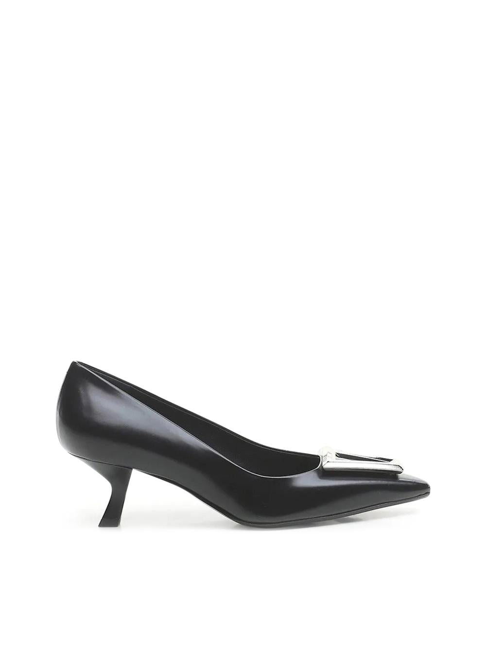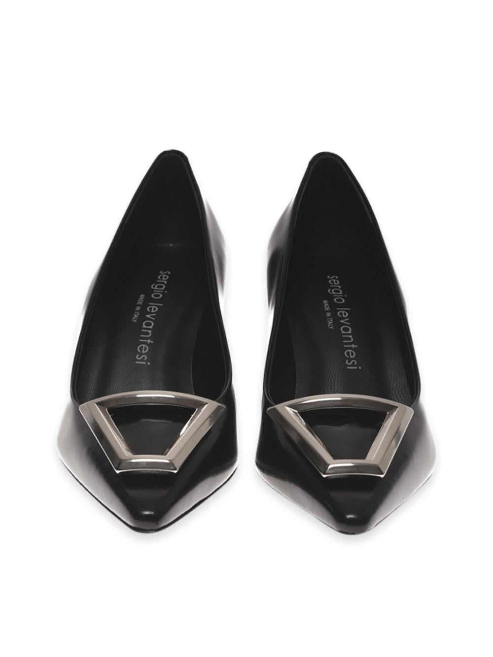 DECOLLETE' IN PELLE NERA CON FIBBIA ARGENTO T.50