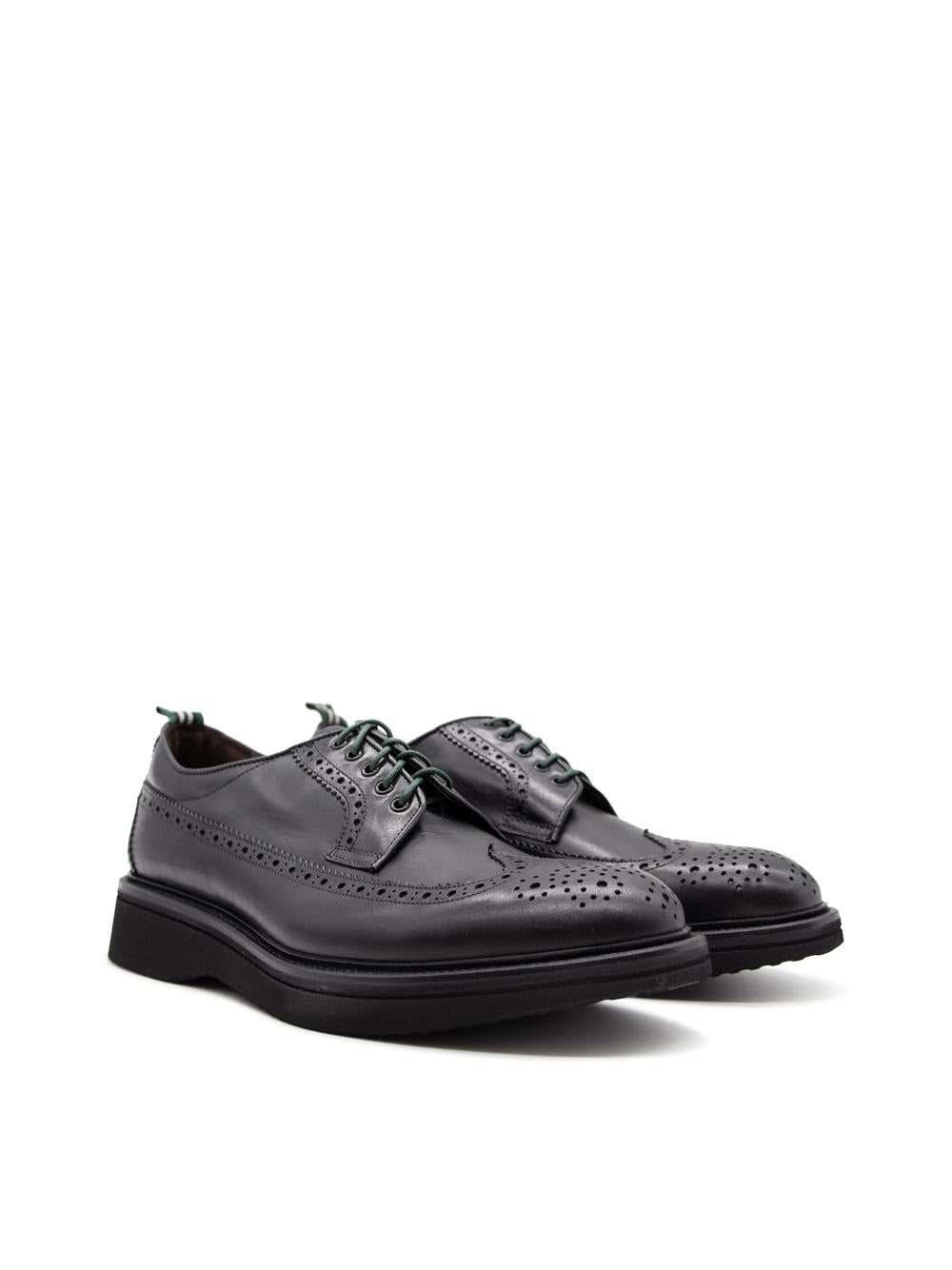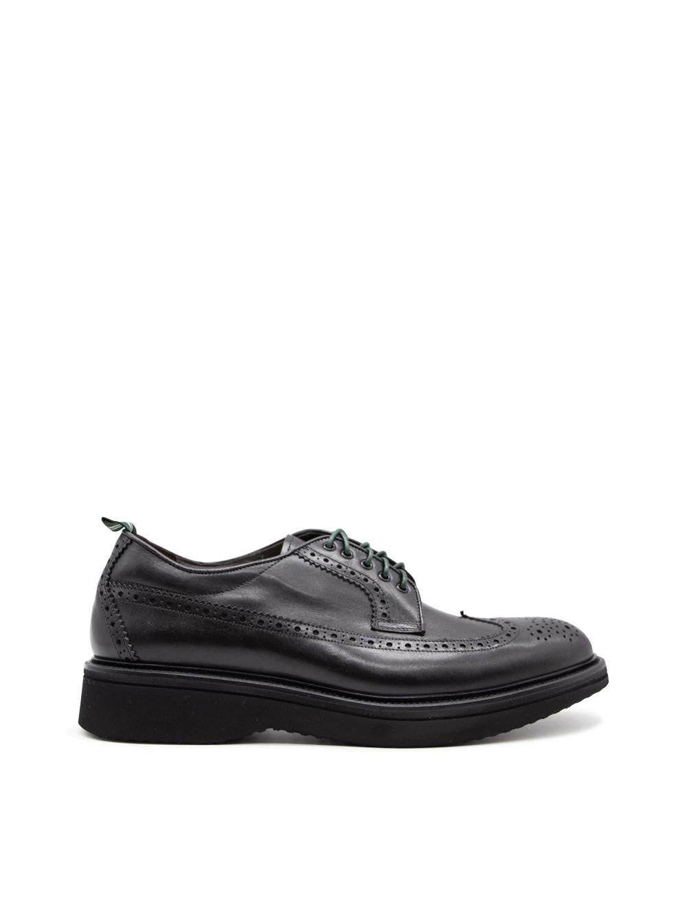 Scarpe derby in pelle nera con impunture e fondo light