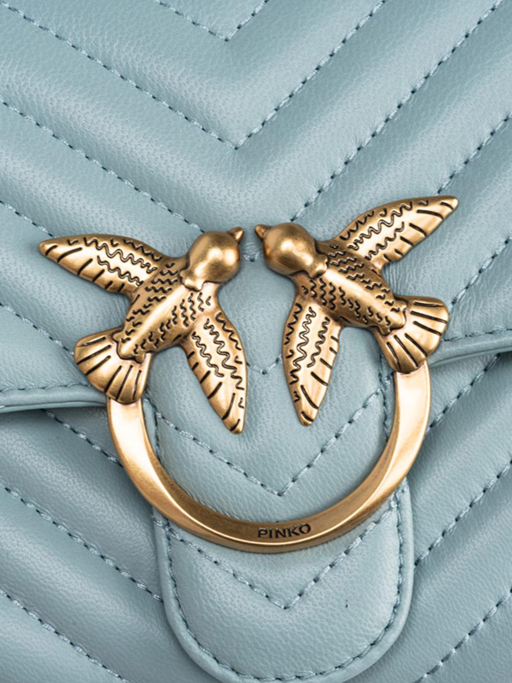 Borsa Mini Lady Love Bag Puff in pelle chevron azzurro