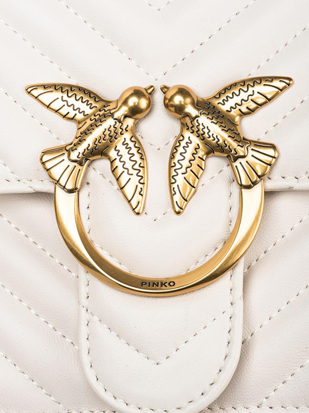 - Attiva la tua borsa PINKO: verifica l'autenticità del tuo prodotto e accedi all'esperienza personalizzata avvicinando il tuo smartphone al ricamo Love Birds che trovi sul retro della borsa!
