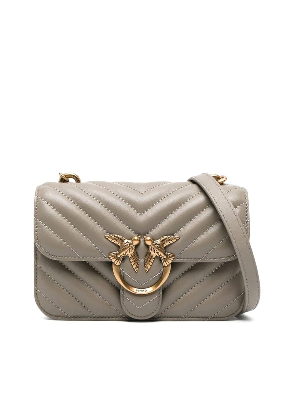 Mini Love Bag Bell in pelle chevron grigio