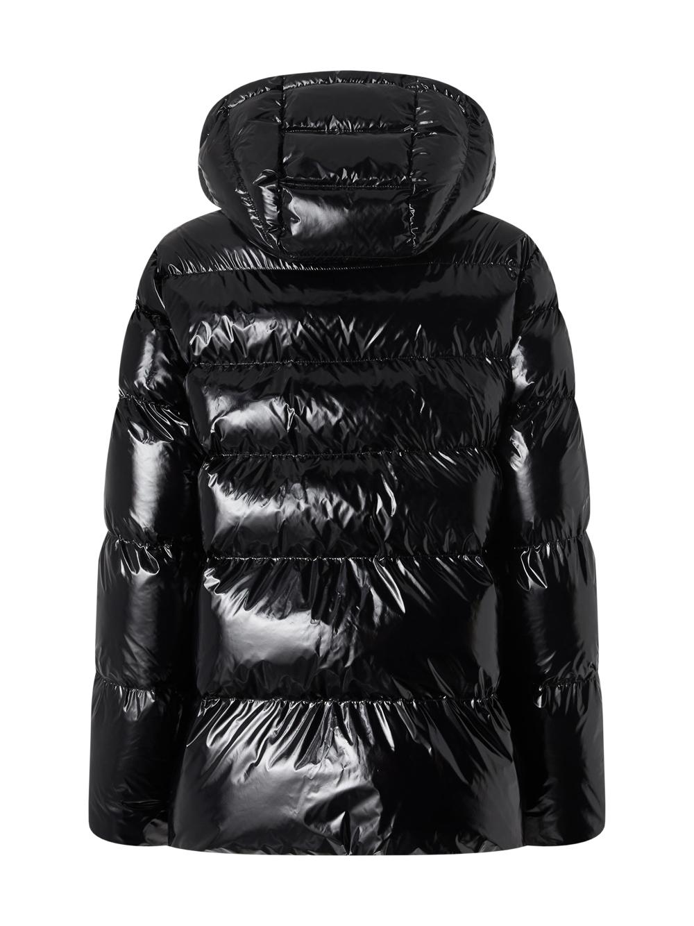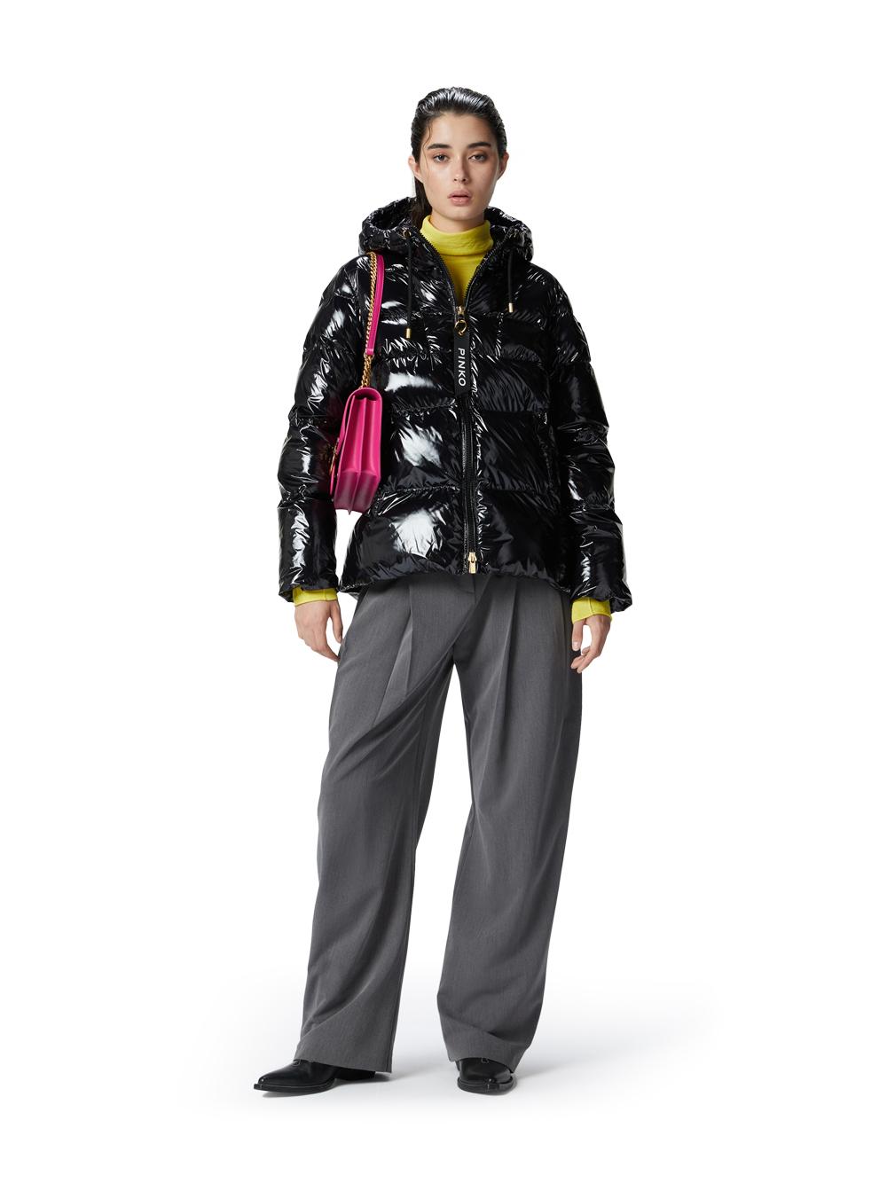 • Piumino imbottito dalla silhouette caban in tessuto crystal nylon, dal particolare finishing lucido