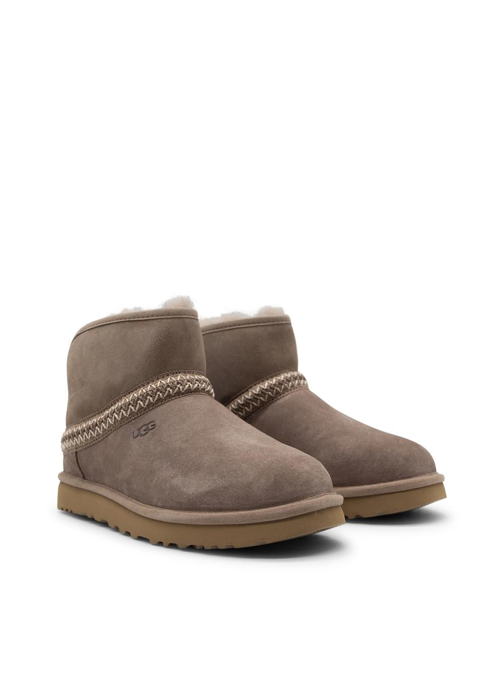 - Mascherina in pelle scamosciata, UGGbraid realizzato con fibre di poliestere riciclato (100%), contrafforte in pelle scamosciata, gambale in montone rovesciato (17 mm)