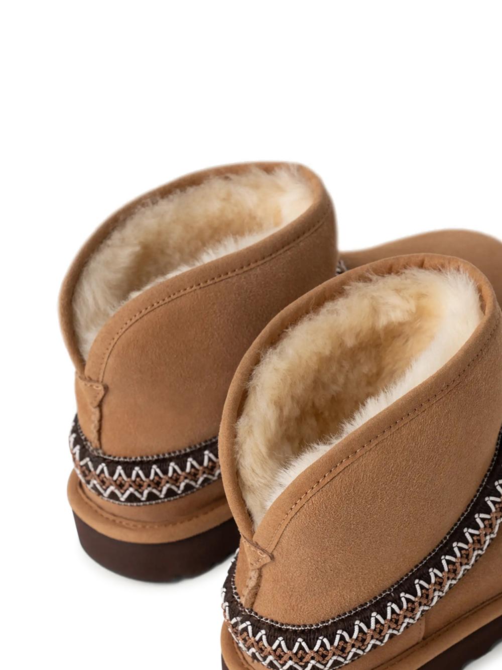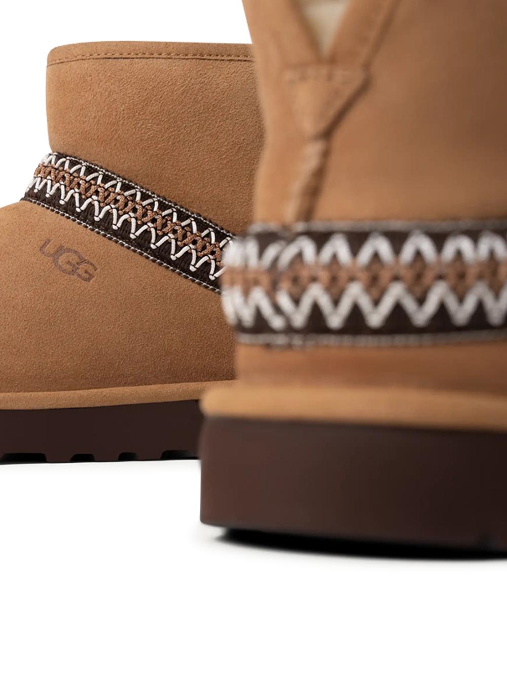 • Mascherina in pelle scamosciata, UGGbraid™ realizzato con fibre di poliestere riciclato (100%), contrafforte in pelle scamosciata, gambale in montone rovesciato (17 mm)