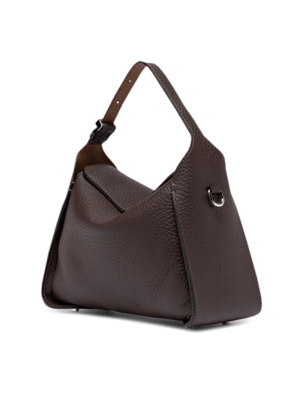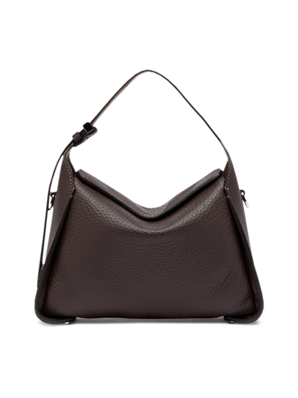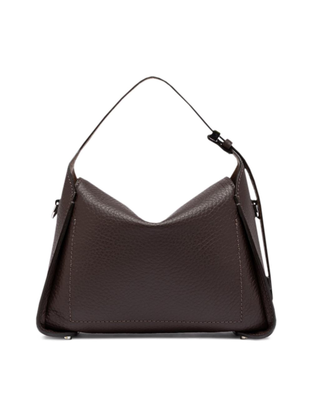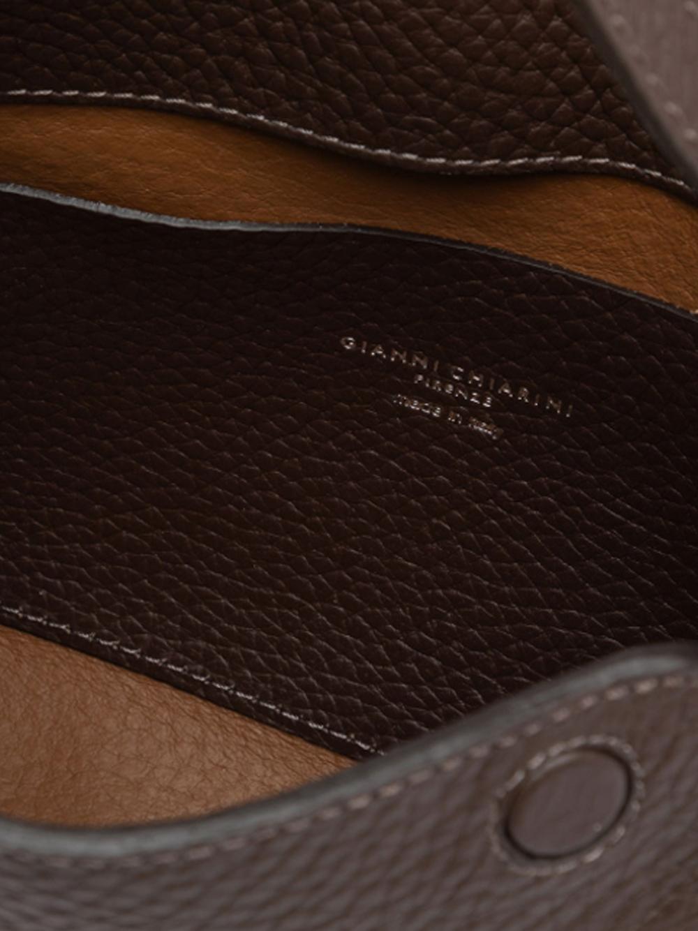 - Made of double grain maxi leather, it features a boxy structure and a practical flap closure with a magnet.