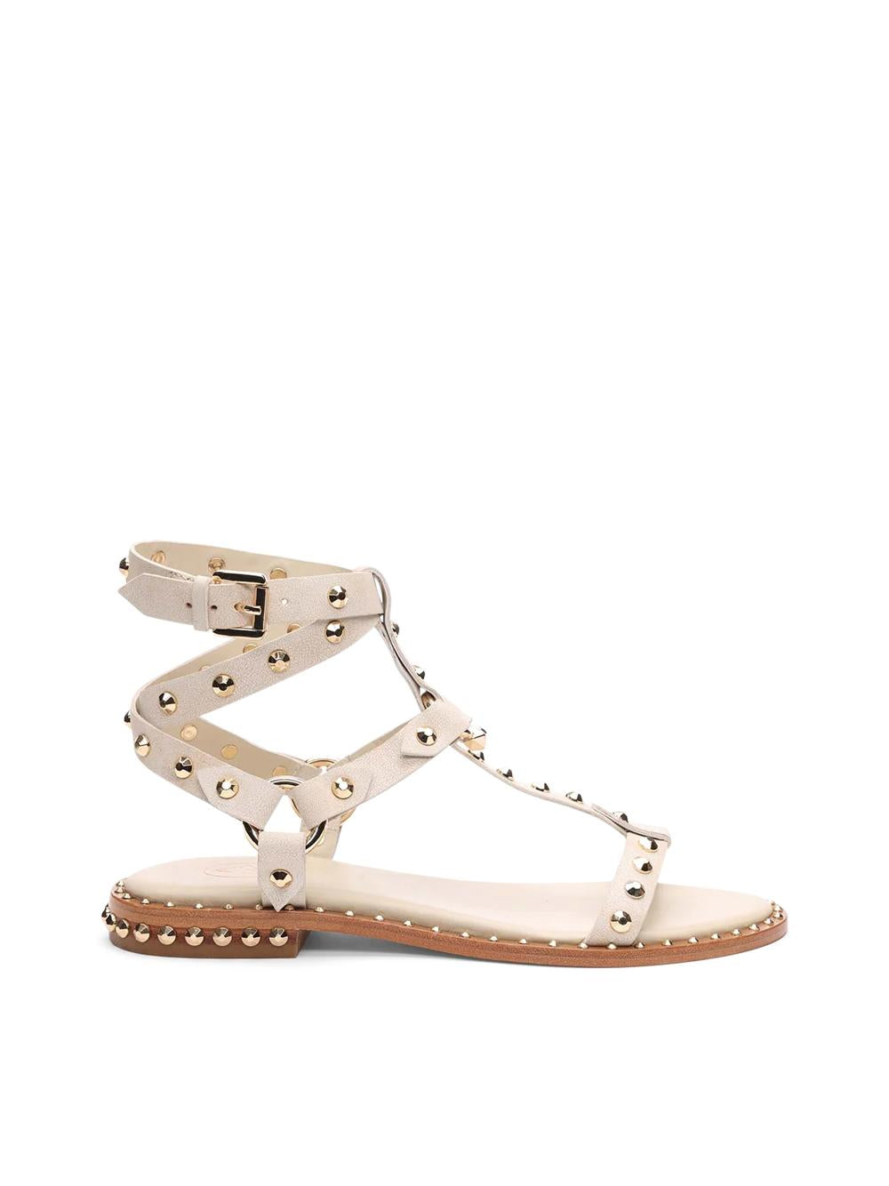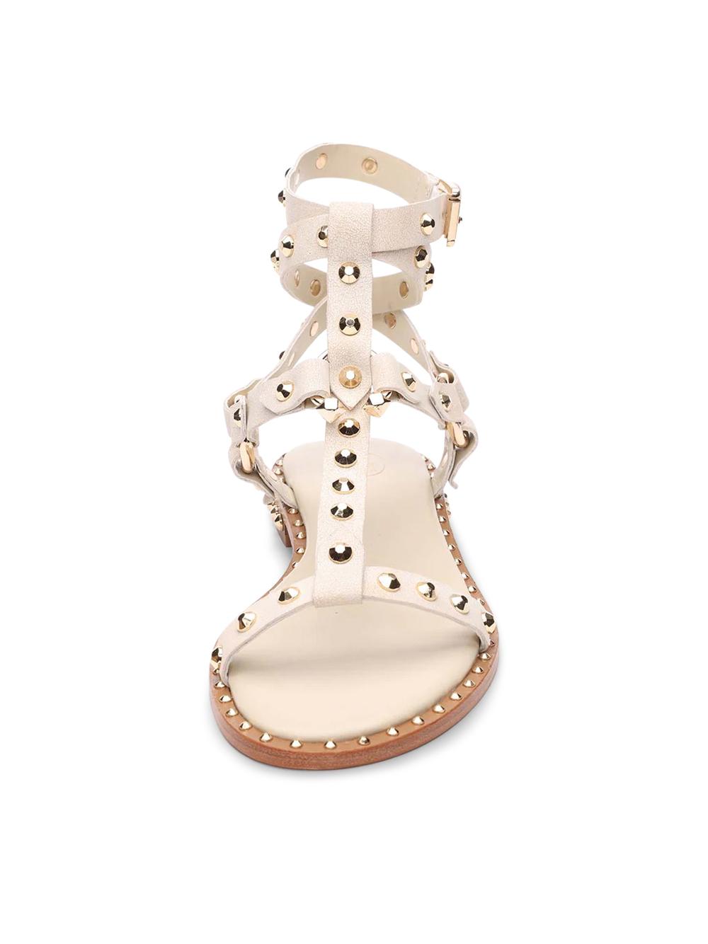 White leather sandal with studs