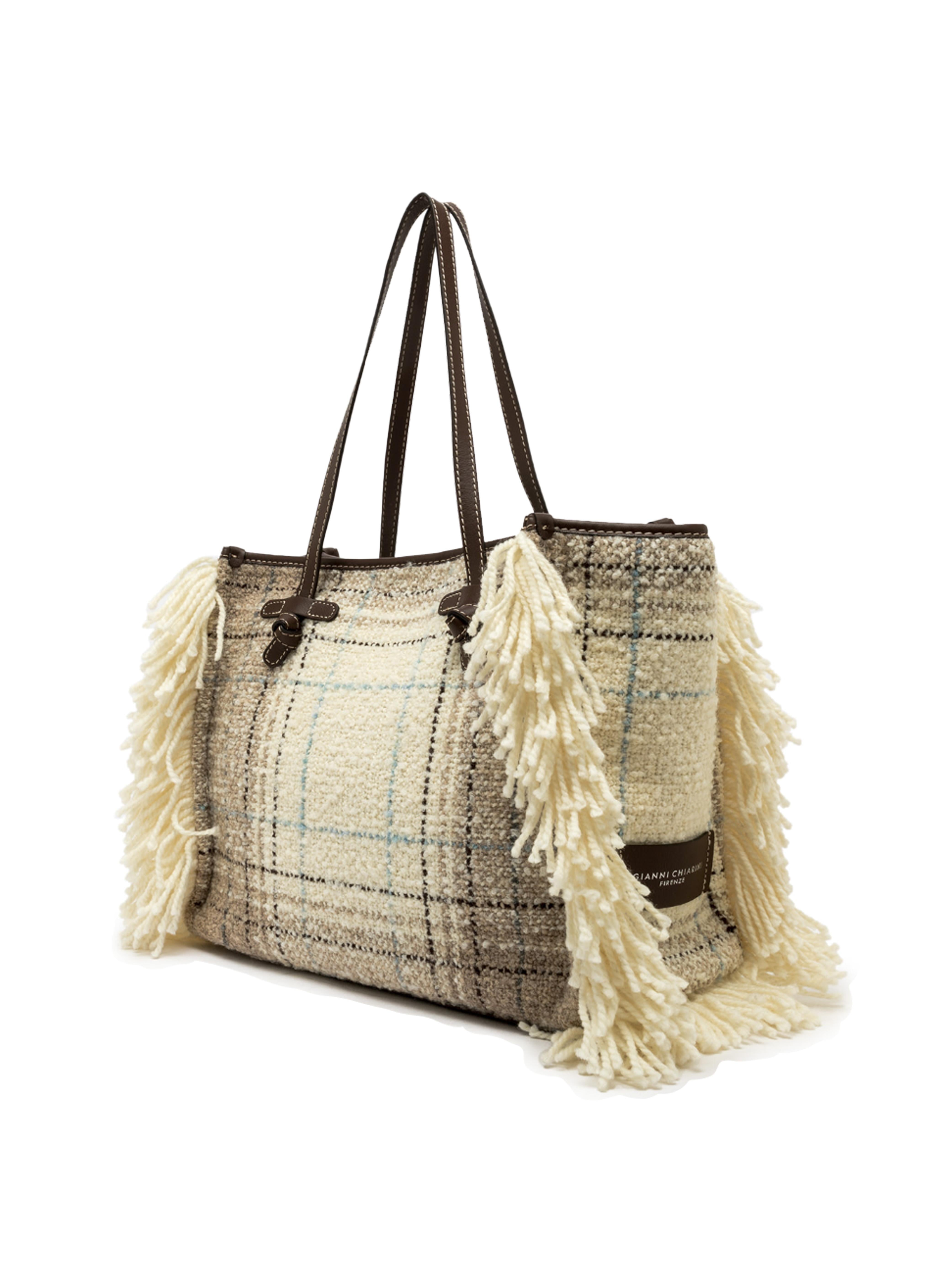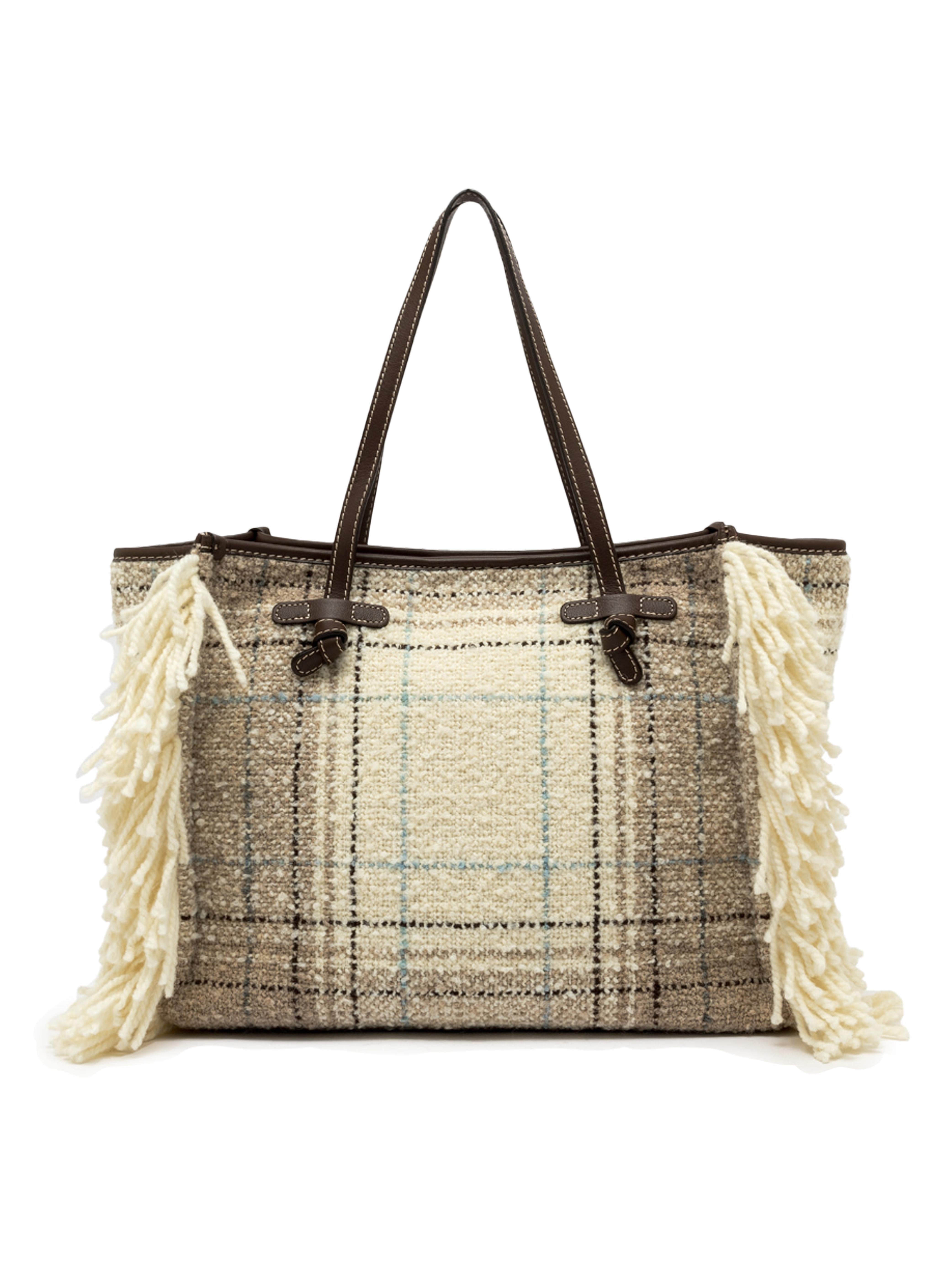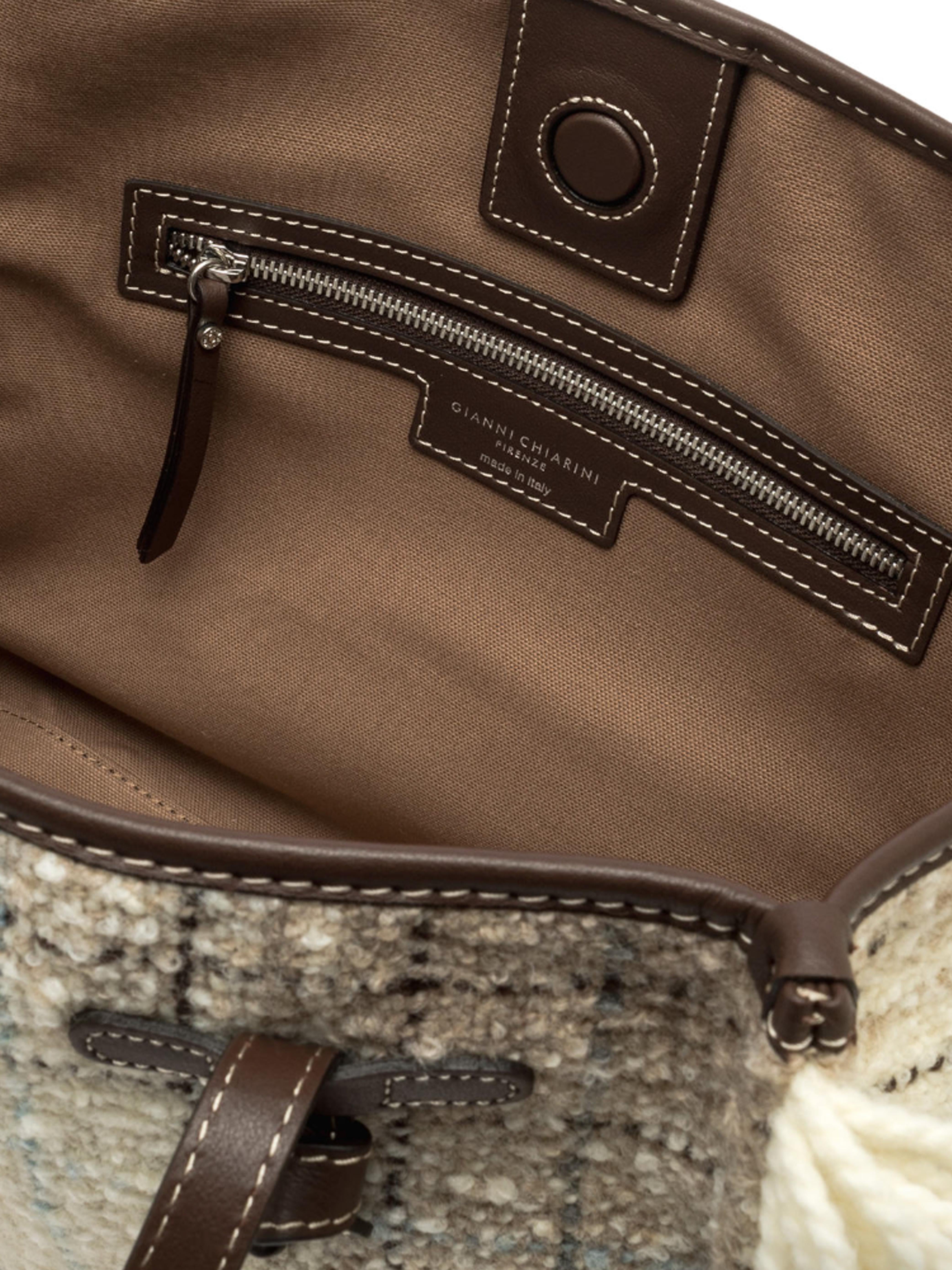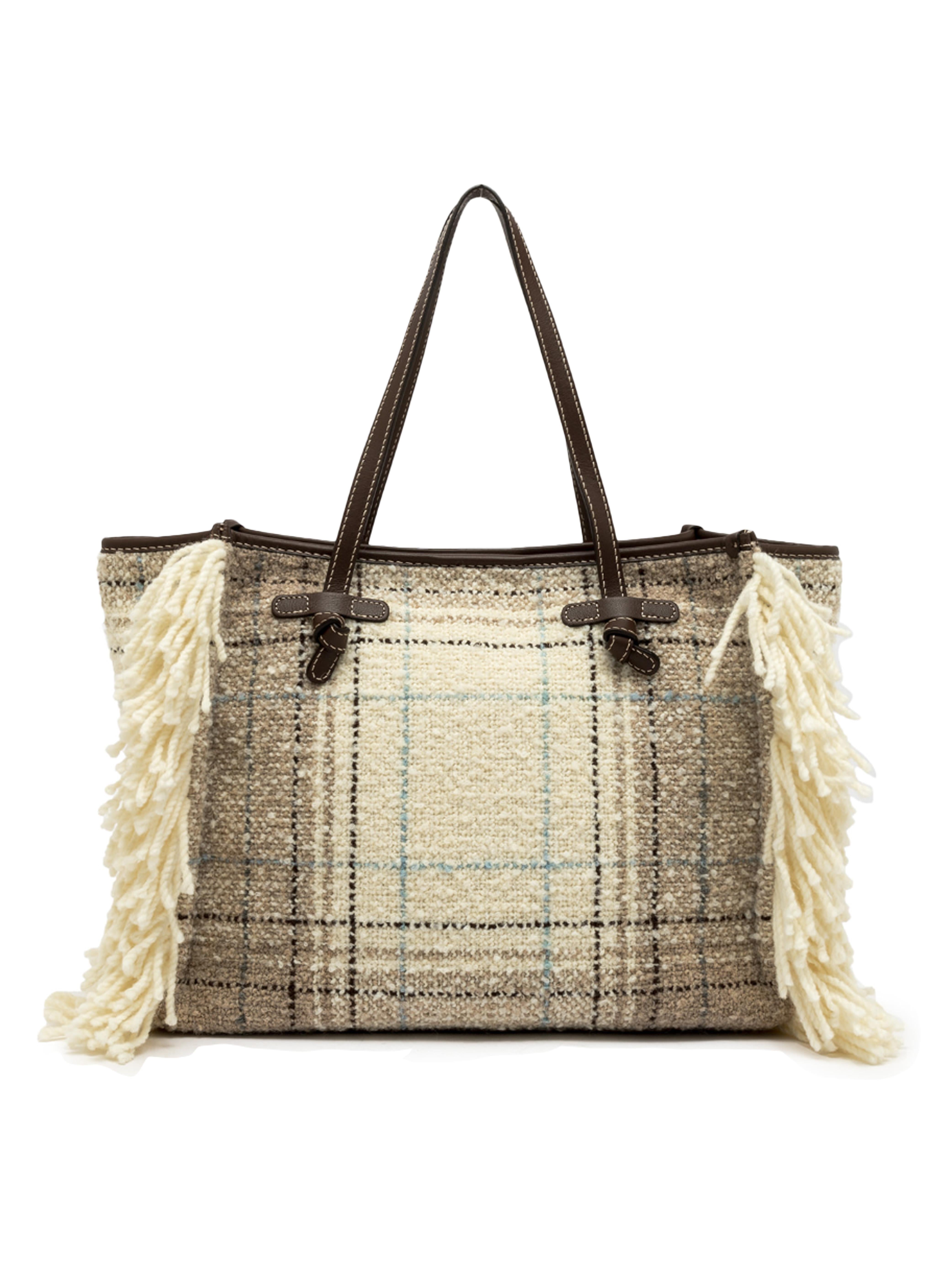 - The Marcella shopping bag by Gianni Chiarini Firenze is made of plaid-effect fabric.