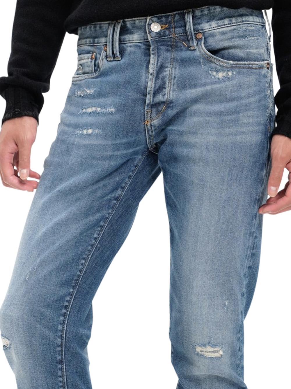 Bone comfort skinny jeans hand made repaired cloudy wash blue