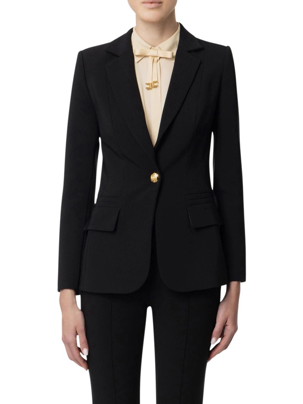 - Stretch crêpe jacket with single-breasted closure, front pockets with flap and welt.