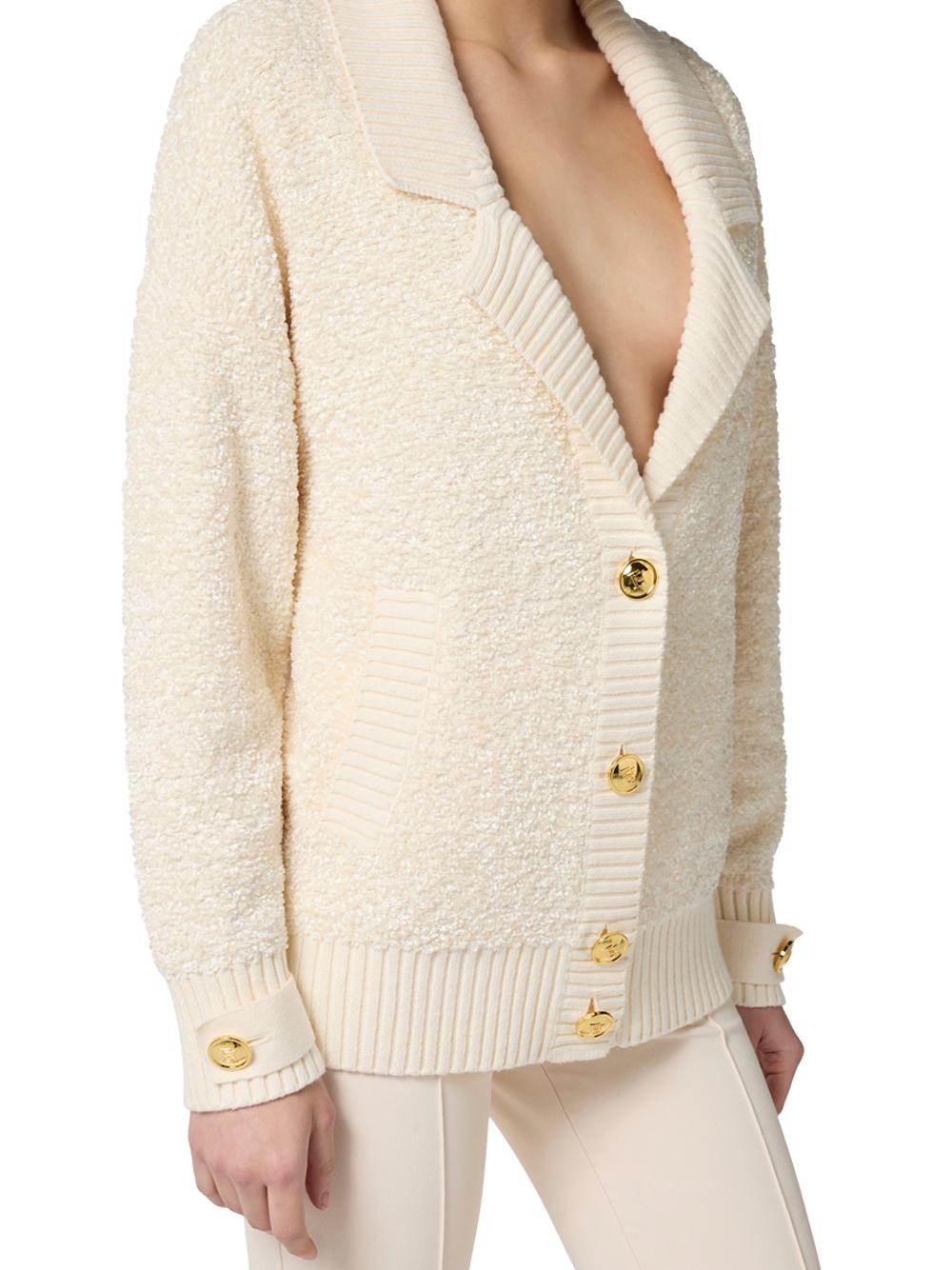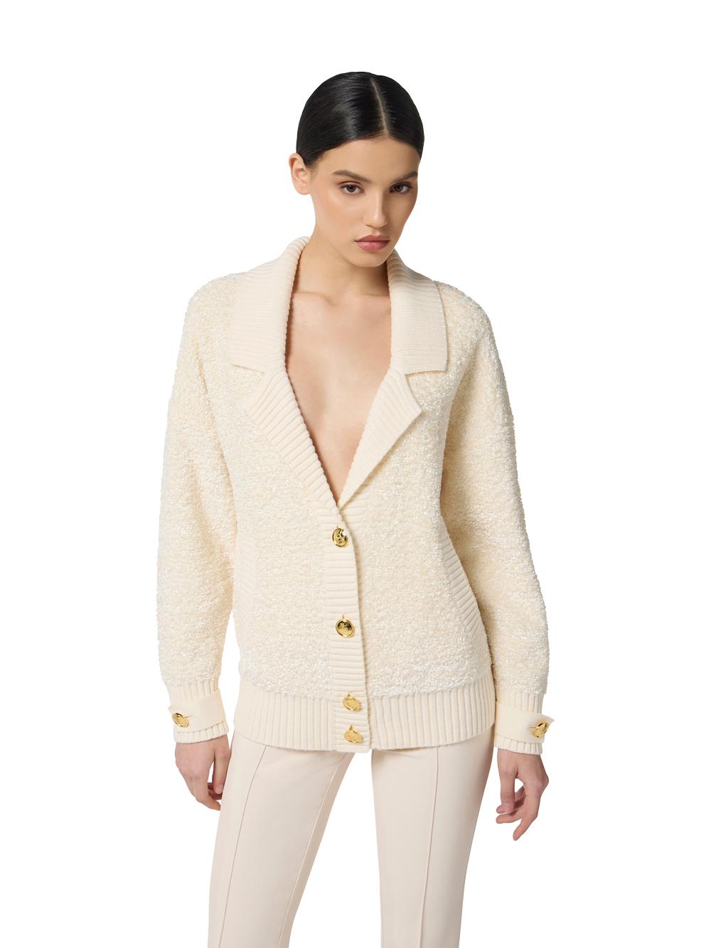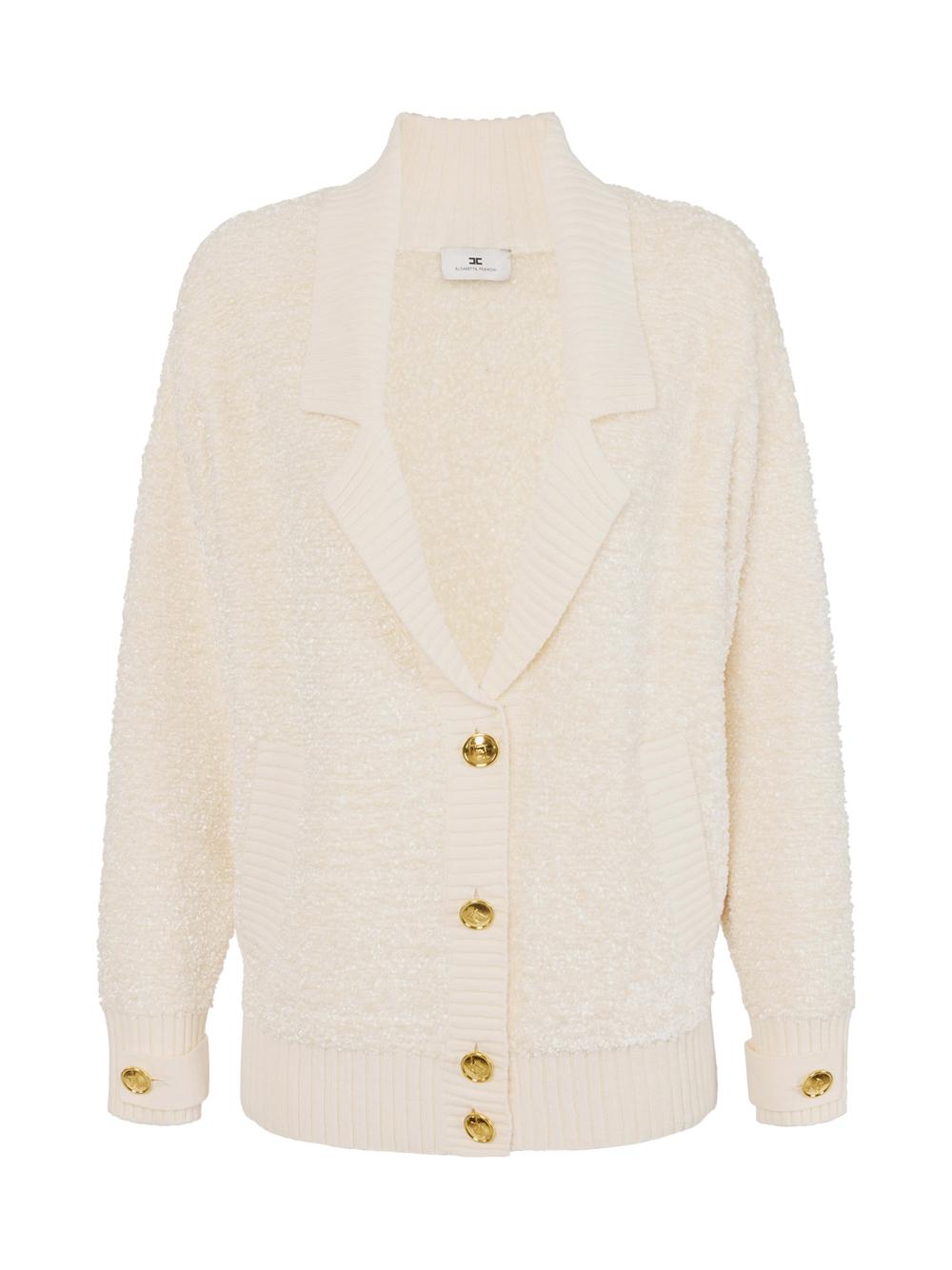 Cardigan in milk boucle chenille with jewel buttons