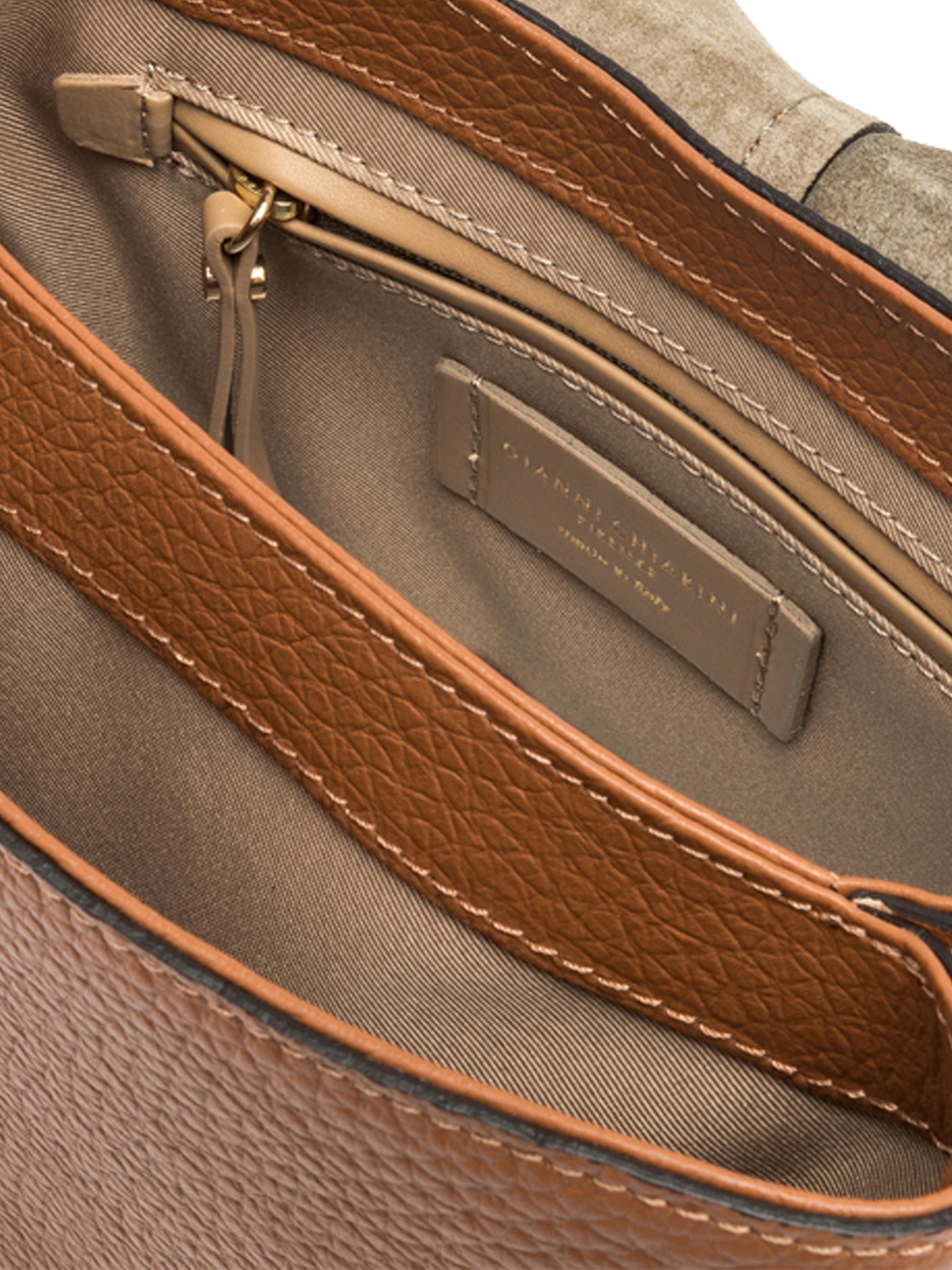 - The iconic Helena Round bag by Gianni Chiarini Firenze is made of maxi grained leather and features a structured design with a contemporary and chic appeal.