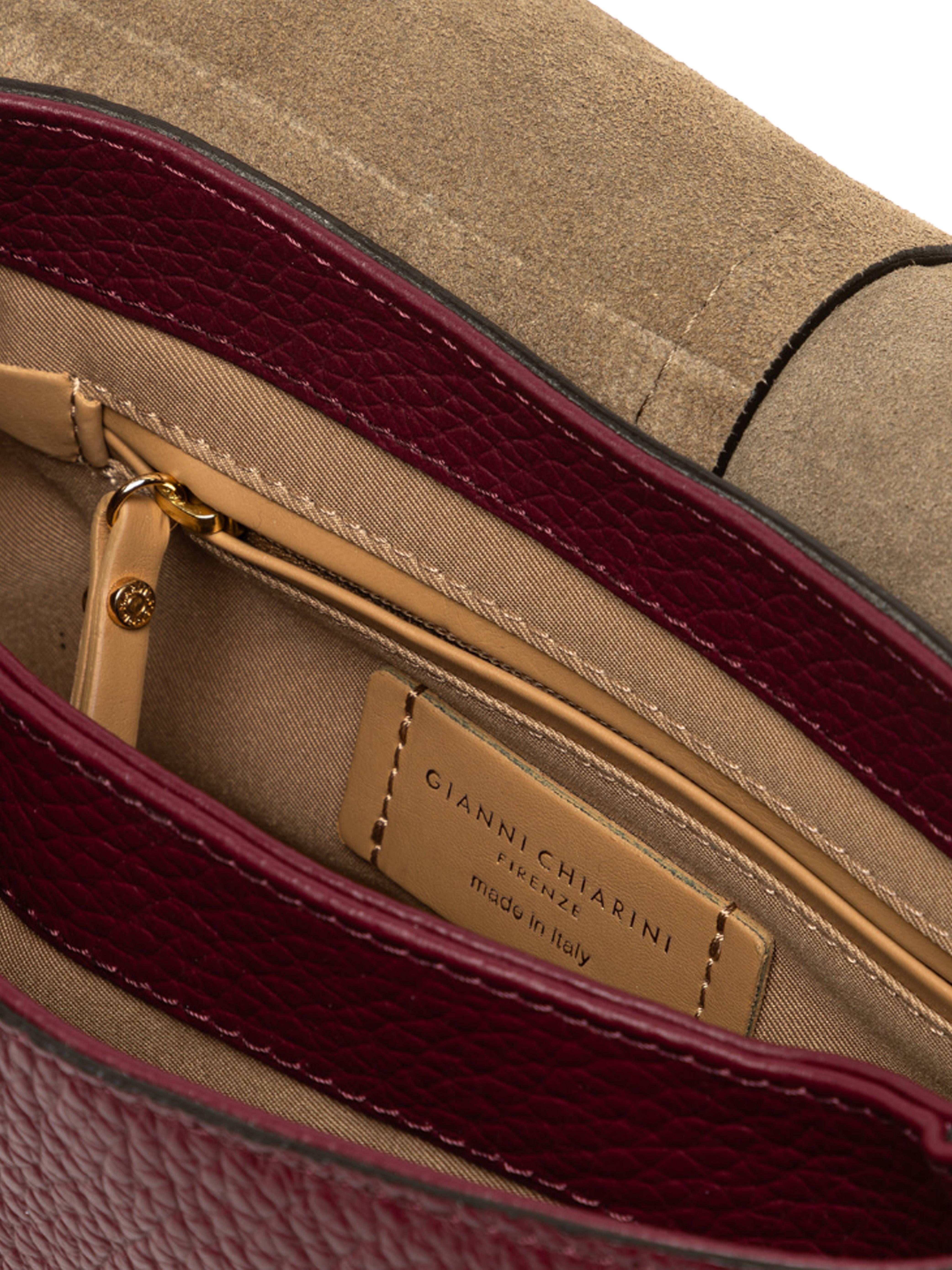 - The iconic Helena Round bag by Gianni Chiarini Firenze is made of maxi grained leather and features a structured design with a contemporary and chic appeal.