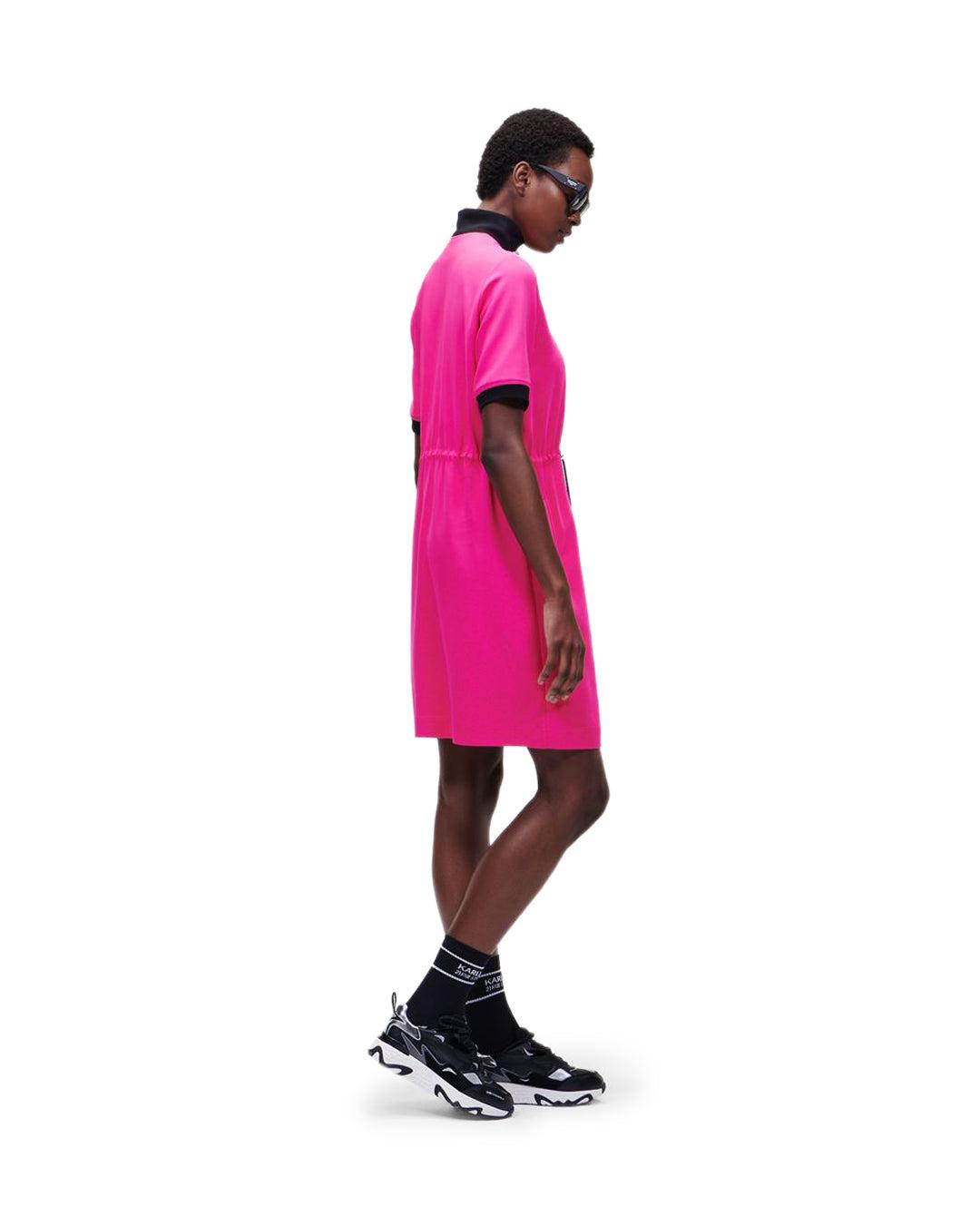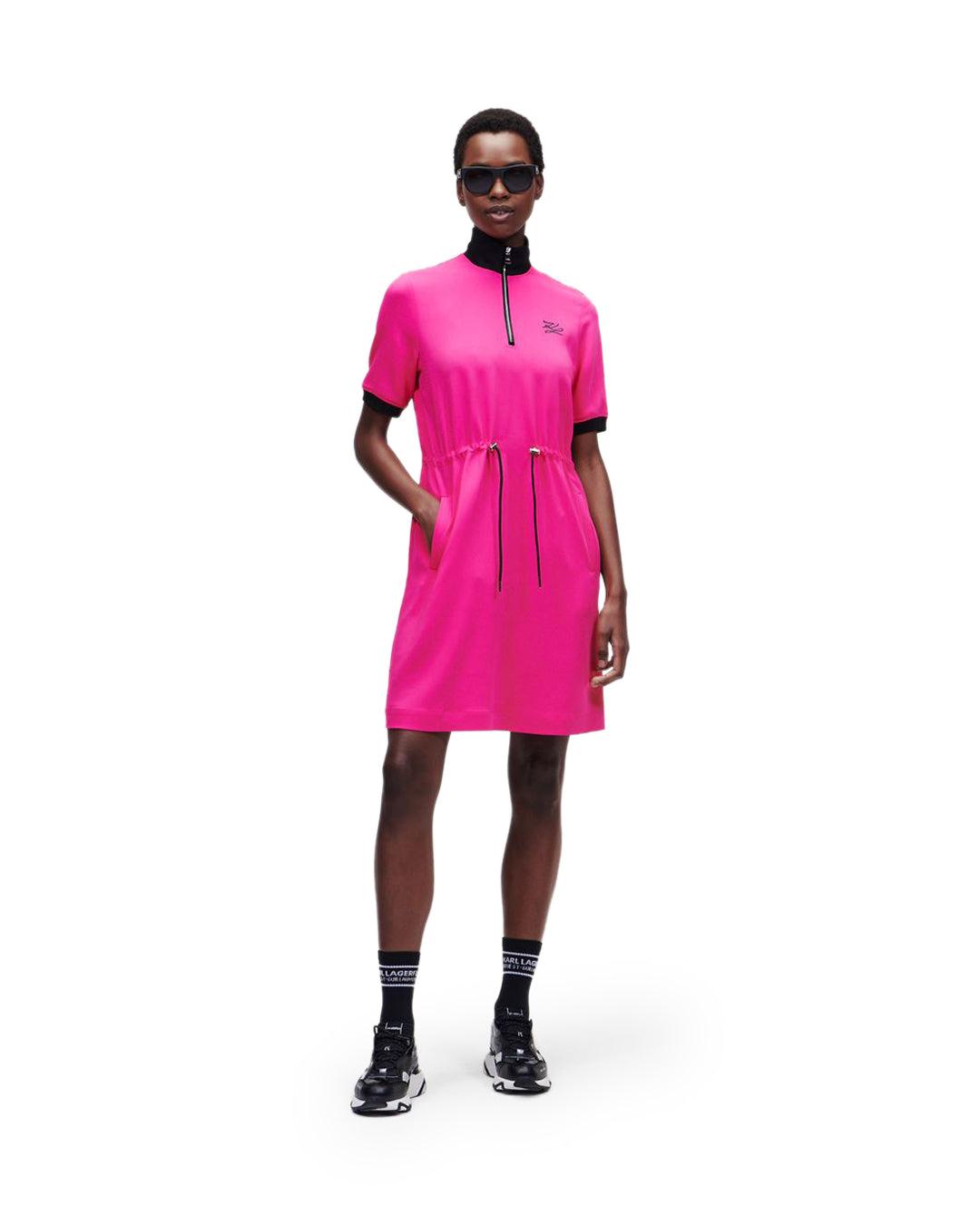 Fuchsia sport mini dress with drawstring waist and embroidery logo