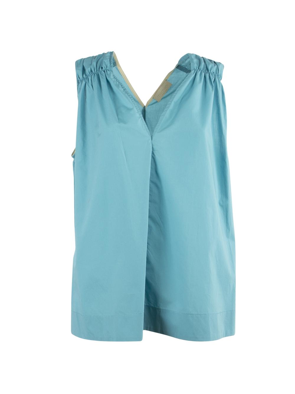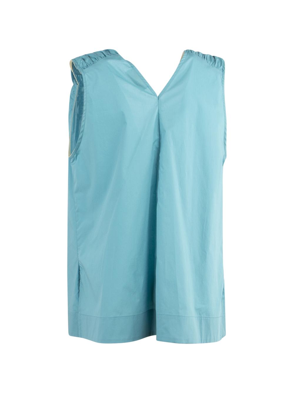 Christa top in light turquoise cotton poplin with slightly flared volume