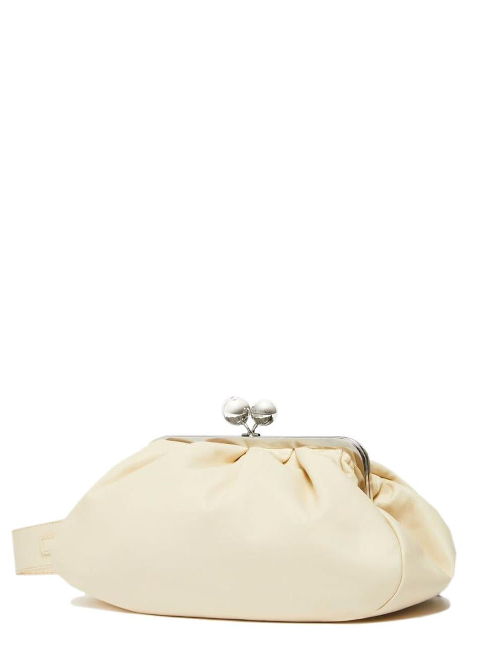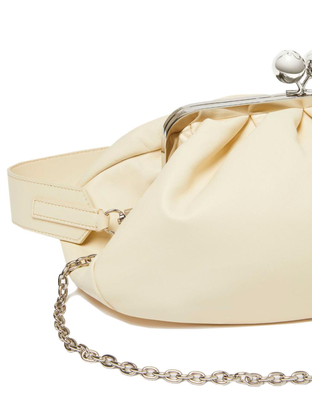 - Medium Bag Pastry with a deconstructed shape. Long chain shoulder strap with leather shoulder pad and short leather strap, both removable with hidden hooks, to be carried by hand or crossbody.