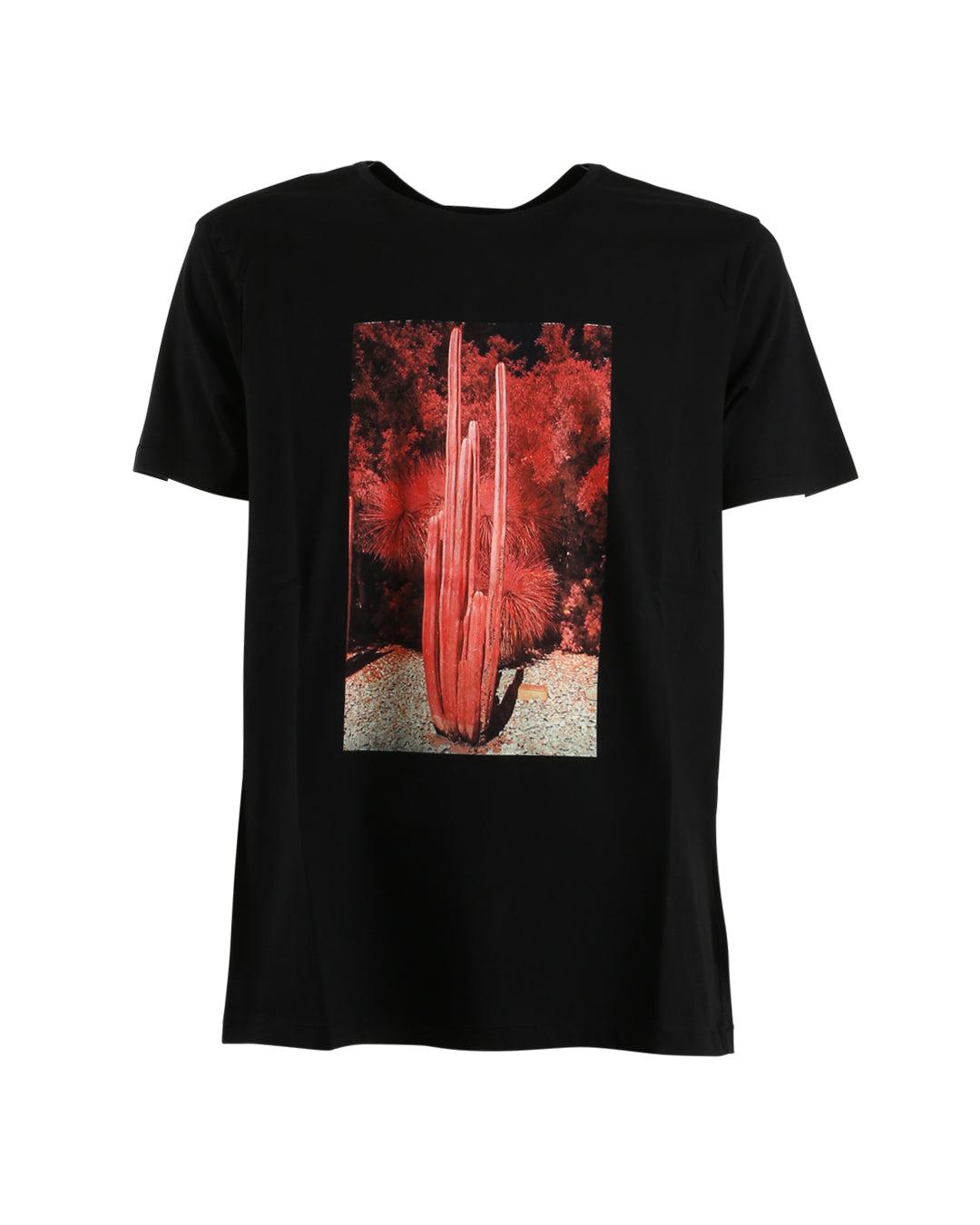 Black cotton t-shirt with red cactus print