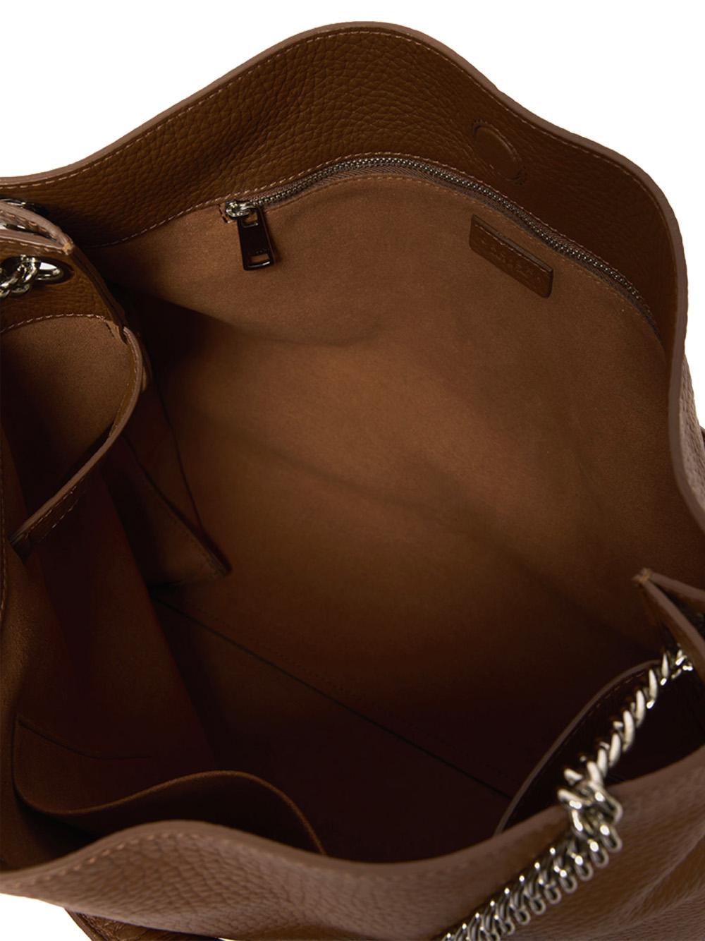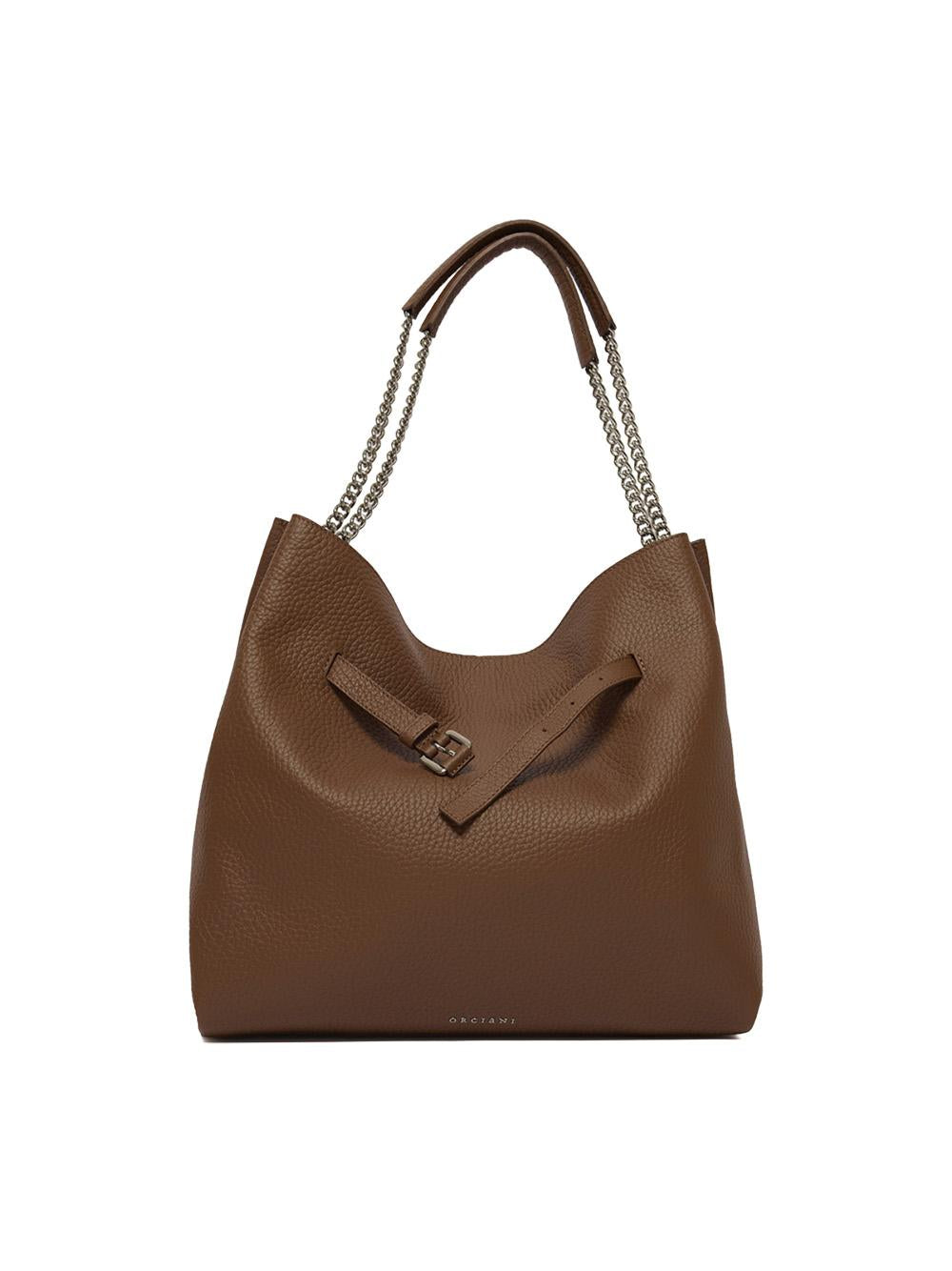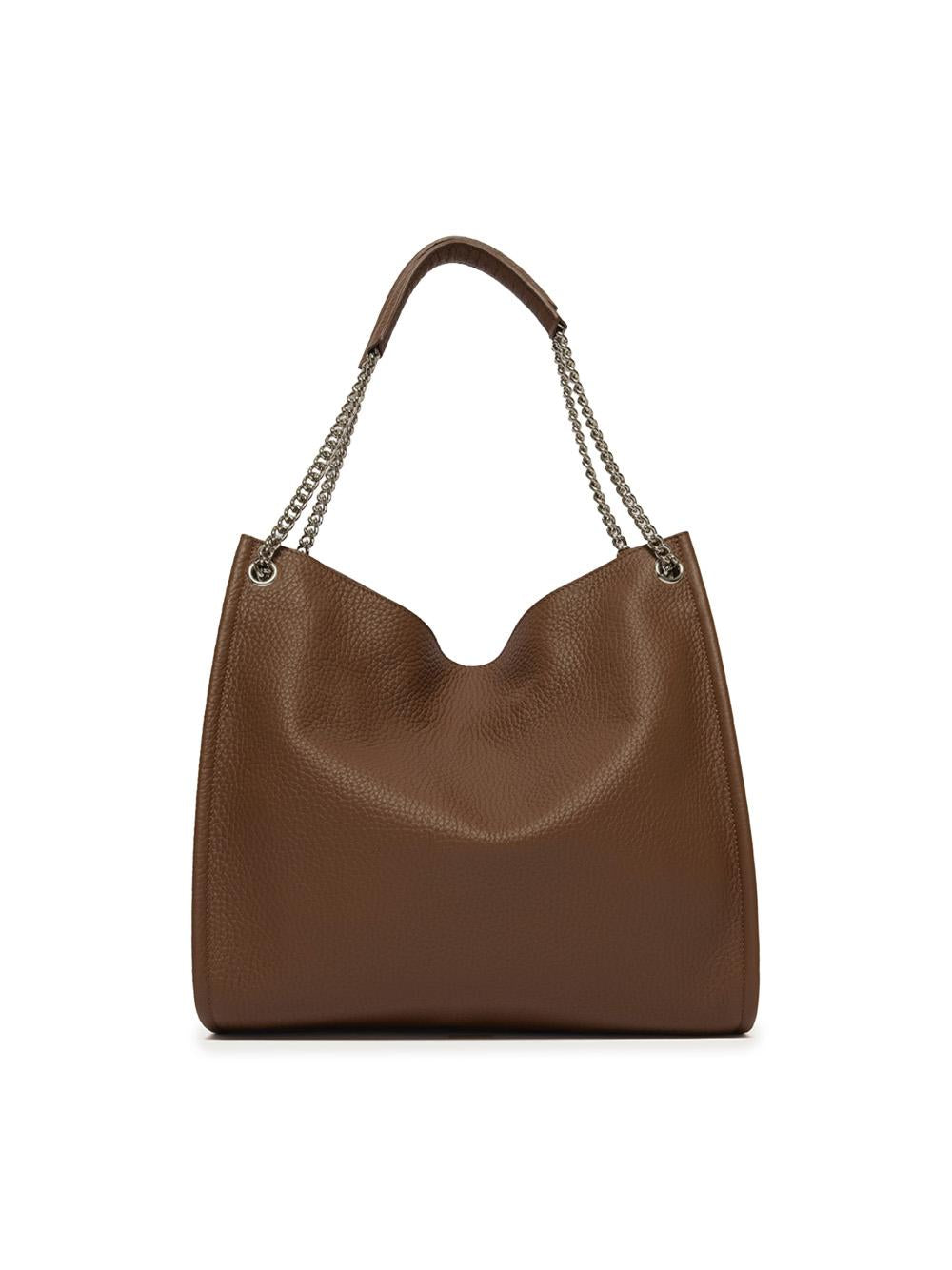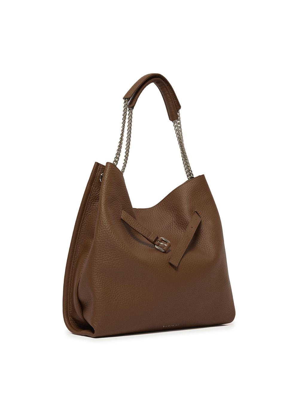 - Manici a spalla in catena e pelle.