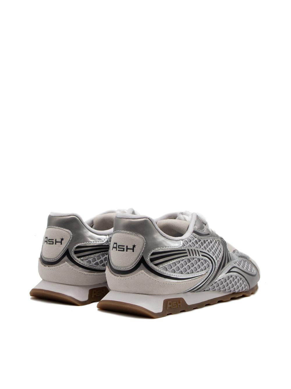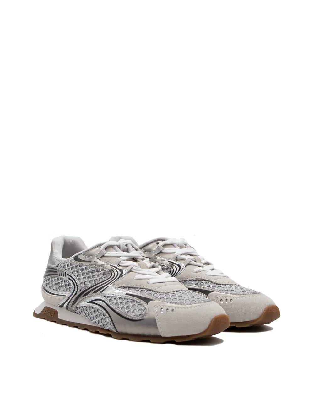- Ash Kabuki sneakers made of suede, mesh, and technical fabric in shades of white with silver and gold details.
