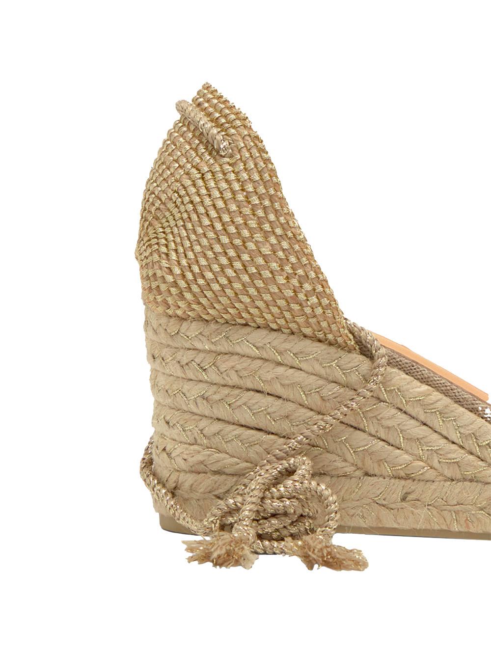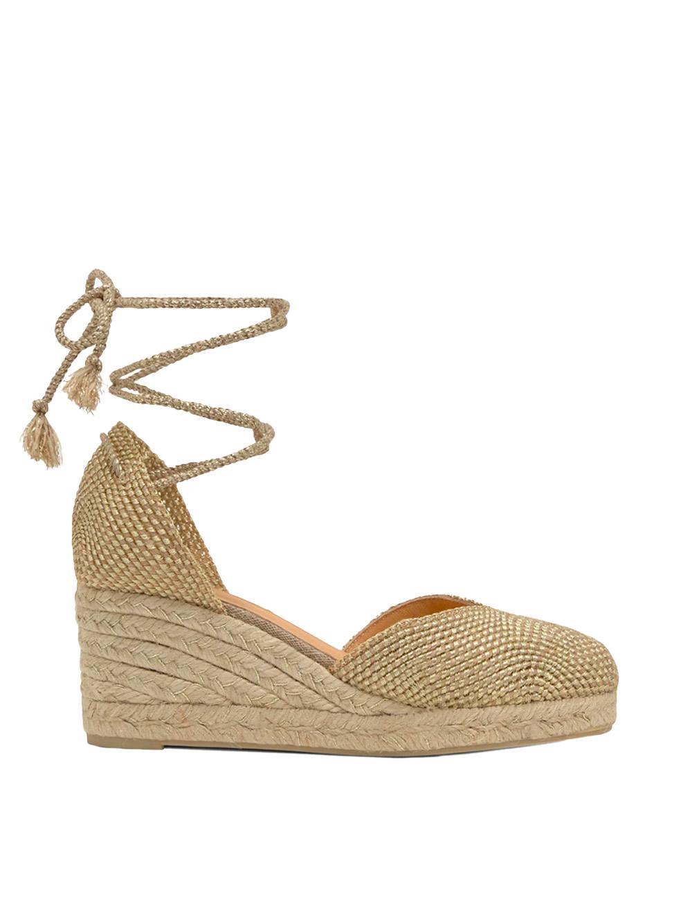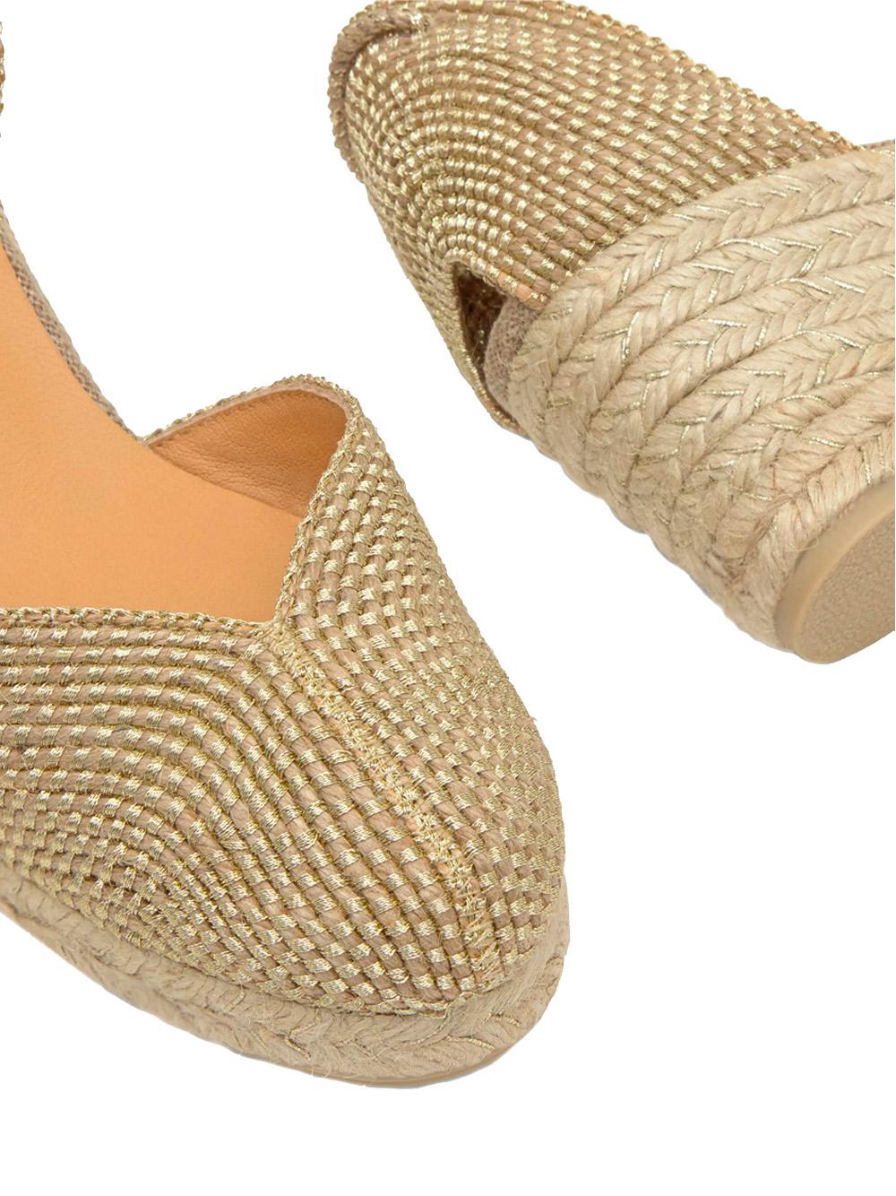 GOLD METALLIC COTTON WEDGE SANDAL WITH LACE